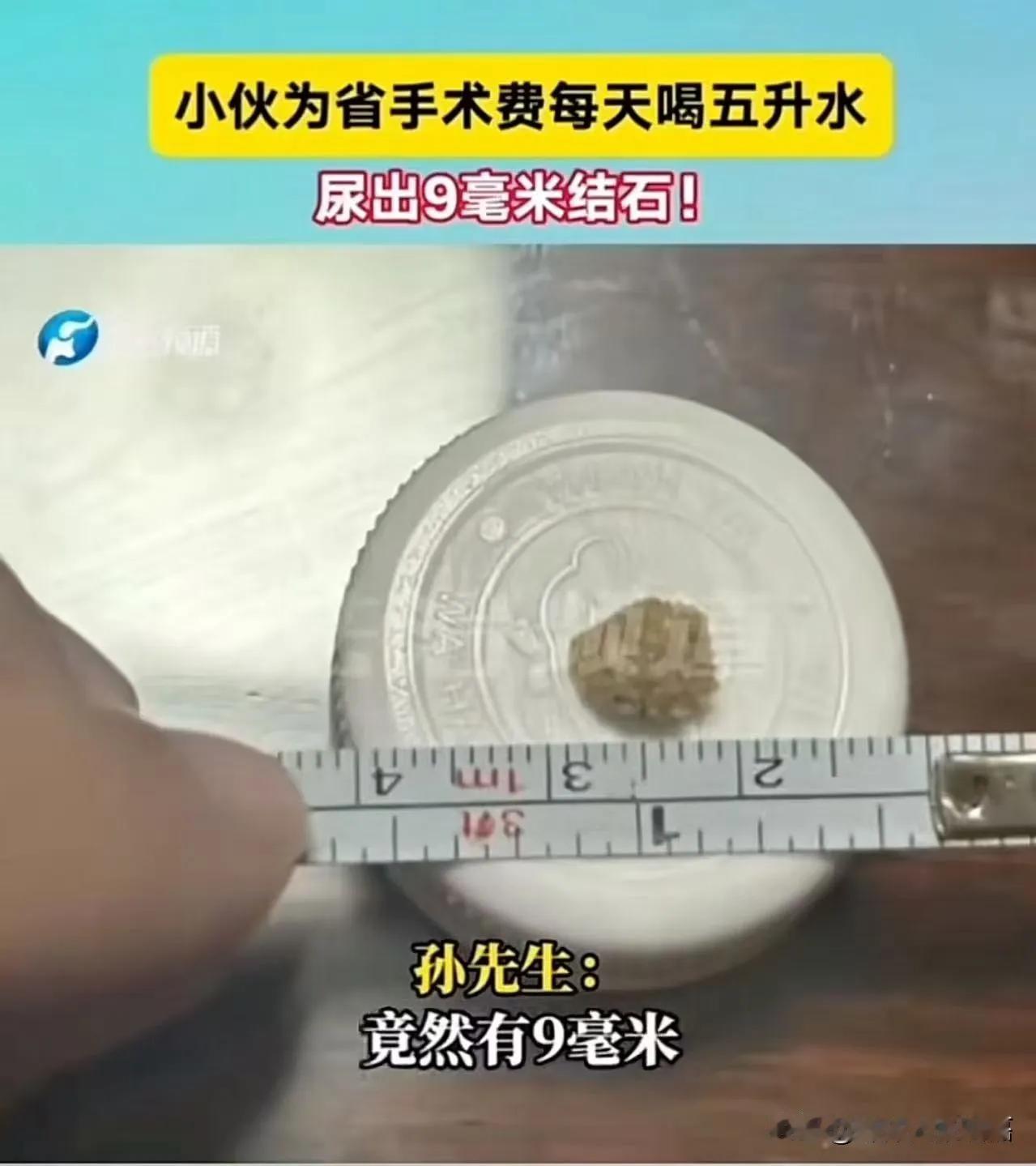 真狠人!为省12000手术费,小伙狂喝5升水硬排9毫米结石,网友:3毫米都疼到打滚! 真是一个狠人啊!小伙为了省12000手术费,每天喝五升水,结果尿出9毫米结石!小伙:“尿出来的那一刻,整个人轻松了!”网友:3mm差点没疼背过去,这个9mm居然能忍的住疼! 看到这一幕,无数网友瞬间破防,有人佩服他的毅力,有人心疼他的无奈,更多人直呼:这哪是排结石,这是在和生活硬碰硬! 9毫米的结石,是什么概念?医生都说,超过6毫米的结石,自然排出的概率微乎其微,过程更是堪比“断骨之痛”。多少人3毫米的结石发作时,都疼得满地打滚、冷汗直流,甚至直接送进急诊,可这位小伙,愣是靠着每天硬灌5升水,忍着钻心的疼痛,一点点把结石“逼”了出来。 他不是不怕疼,也不是不爱惜身体,只是面对一万二的手术费,这个普通的年轻人,选择了最笨、最疼,却最省钱的方式。没有豪言壮语,没有悲情卖惨,只一句“尿出来整个人轻松了”,道尽了普通人面对生活压力时的隐忍与坚强。 有人说他太傻,拿身体赌钱,可只有经历过生活苦的人才懂,对于很多底层打工人来说,钱有时候比疼更让人害怕。一场小病、一次手术,可能就是半个家当,能扛的疼,绝不花钱治,能省的钱,绝不乱花一分,这不是傻,是成年人的无奈,是普通人的生存本能。 这件事爆火后,评论区彻底炸了锅,有人分享自己排结石的痛苦经历,有人心疼小伙的遭遇,也有人感慨:我们拼尽全力,不过是为了平安度日。 其实生活从没有容易二字,那些看似“狠”的选择背后,都是藏着不为人知的心酸。但好在,小伙扛住了疼痛,保住了钱财,用最朴素的方式,打赢了这场和生活的小战役。 这世间最动人的从不是惊天动地的壮举,而是普通人在困境里,不低头、不放弃,咬牙扛下一切的模样。愿每一个努力生活的人,都无病无灾,愿每一份隐忍,都能被生活温柔以待。