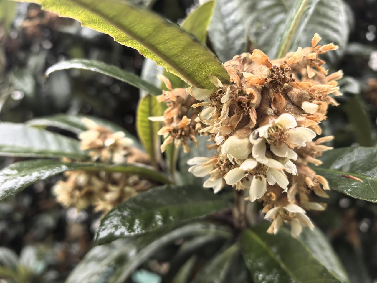 三月枇杷花 雨后的枇杷枝上,水珠还凝在花瓣边缘,把细碎的白花衬得愈发清润。它不与春阳里的桃李争艳,只藏在浓绿的革质叶间,开得沉静又安然。 那些攒成穗的小花,有的还带着绒绒的嫩白,有的已褪成浅褐,像时光在枝桠间留下的细碎脚印。风过时,淡香漫过湿润的空气,不浓烈,却清润得像刚沏的新茶。 它把春日的温柔都攒在这细碎的花穗里,待秋风起时,便酿成满树金黄的甜。这三月的枇杷花,是藏在寻常烟火里的诗意,朴素却动人,清浅亦芬芳。