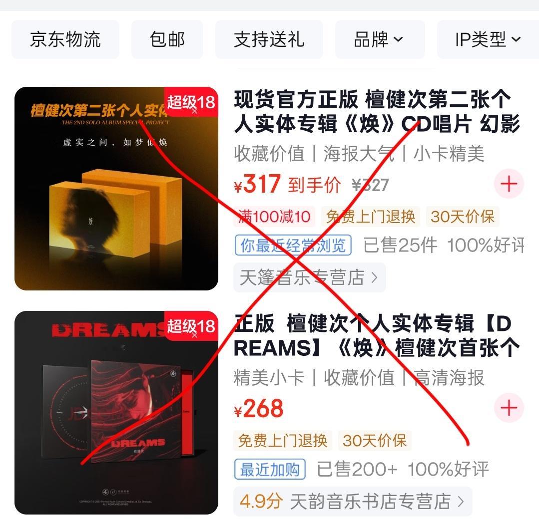 我觉得有个事儿得提醒一下很多新粉买专辑会跑错地方这种情况是不算销量的,且可能买的还更贵请大家一定要认准1️⃣专:J东,价格198,销量20w+,图12️⃣专:QQ音乐,价格258,金钻唱片图2请一定不要买错,图3这种都是错的逐本全球品牌代言人檀健次 ‖檀健次