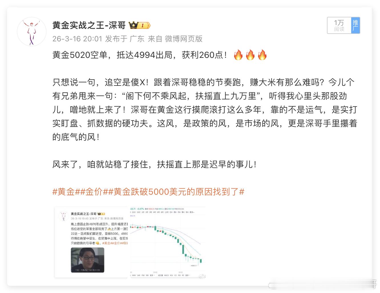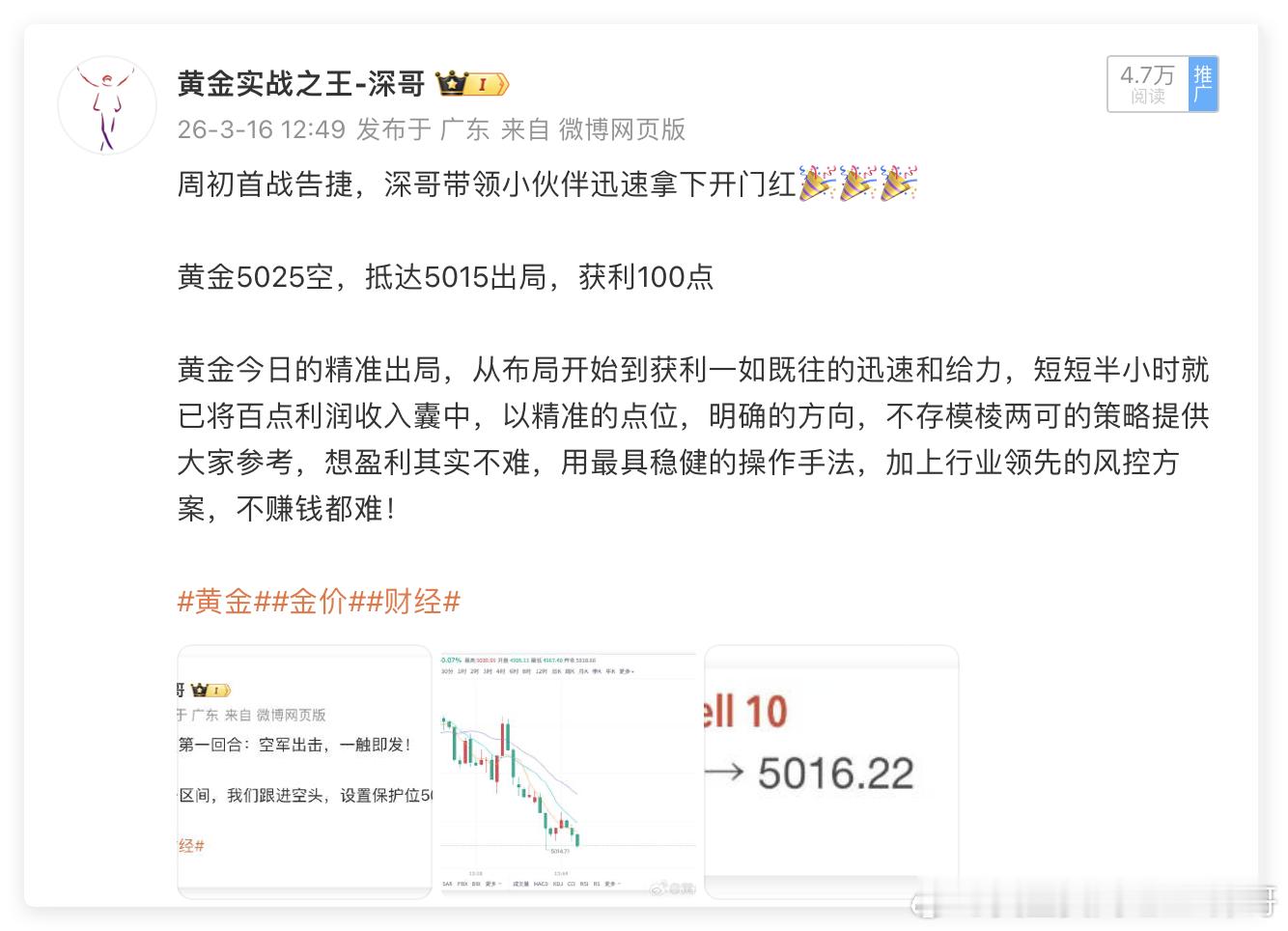 周初短线了结三单,可以看到策略是十分准确的,牢牢掌握了每次多空转换的节奏,思路策略公布给到大家,剩下的就是执行收获。给点耐心,胜利就是属于你的!实实在在抓在手里的盈利才是硬实力,坚定的跟随给你收获也是最直观的。只有让大家知道深哥的真心以及实力,你才会知道幸运其实就在你的身边!