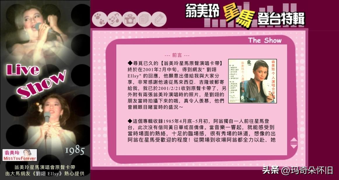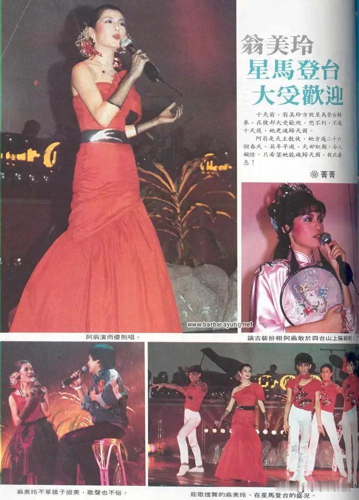 🎆1985年4月,翁美玲独自踏上星马舞台。 没有搭档,只有满场欢呼与滚烫的目光。 • 粉衣古装,是黄蓉再临人间,眉眼间还是那个娇俏的蓉儿。 • 红裙黑纱,是舞台上的阿翁,歌声里藏着她最后的温柔与热烈。 • 台下千万只手伸向她,像在挽留这束即将熄灭的光。 谁能想到,十天后,她便永远离开了我们。 这是她留给世界的最后一场盛大演出,也是80年代港星最动人的绝唱。 那些泛黄的照片里,她笑着挥手,眼里有星光,也有藏不住的疲惫。 原来美人的花期,真的短到让人心疼。 翁美玲 80年代港星 怀旧经典