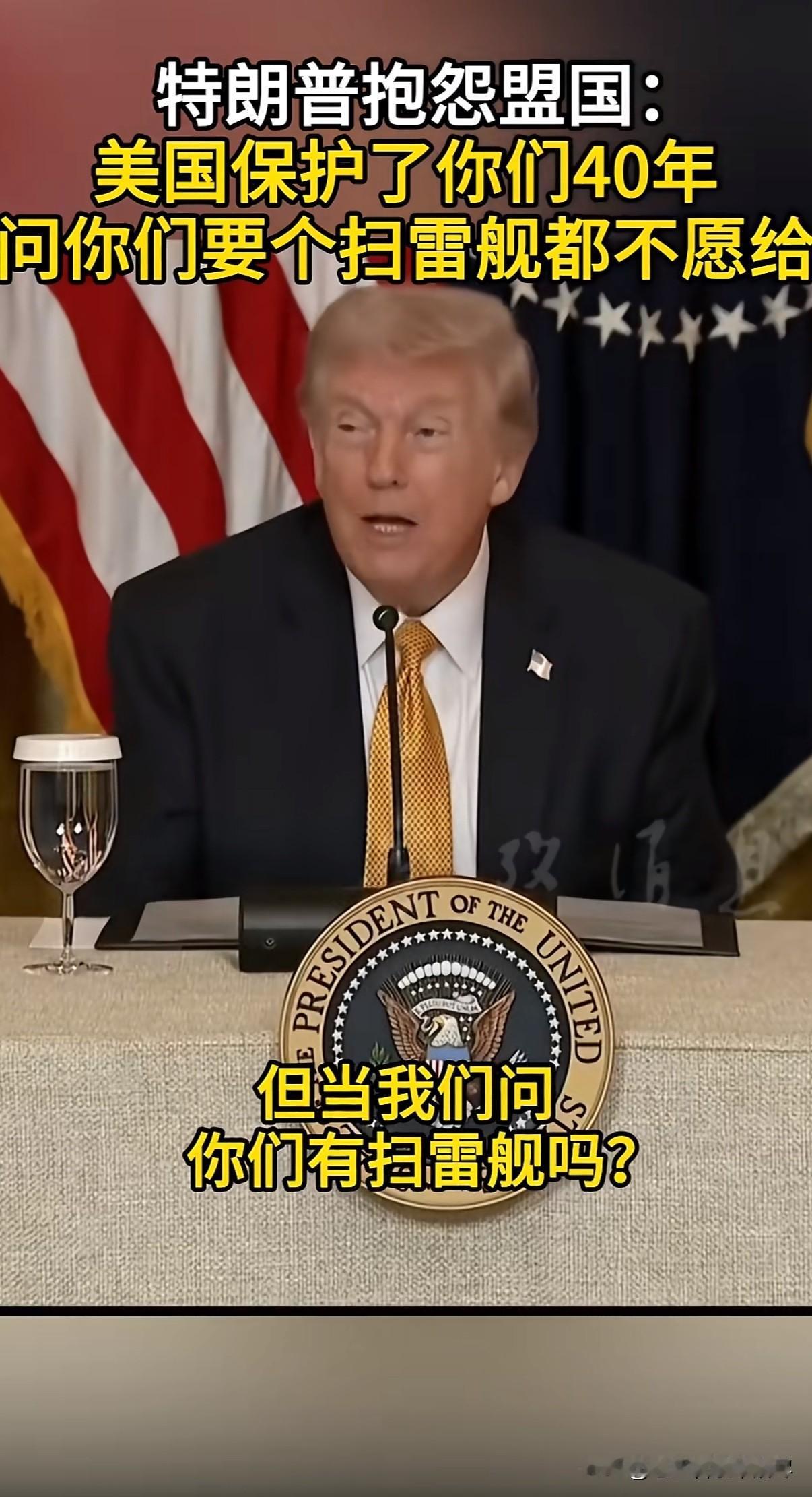 自从有了特朗普,我都不看郭德纲了!特朗普抱怨盟国说:美国保护了你们40年,问你们要个扫雷艇都不愿意给! 不知道这是特朗普说的气话呢,还是说现在的美国是真穷的,连艘扫雷艇都拿不出来了呢?这也难怪有网友说,突然发现特朗普真是要比郭德纲还要搞笑啊!