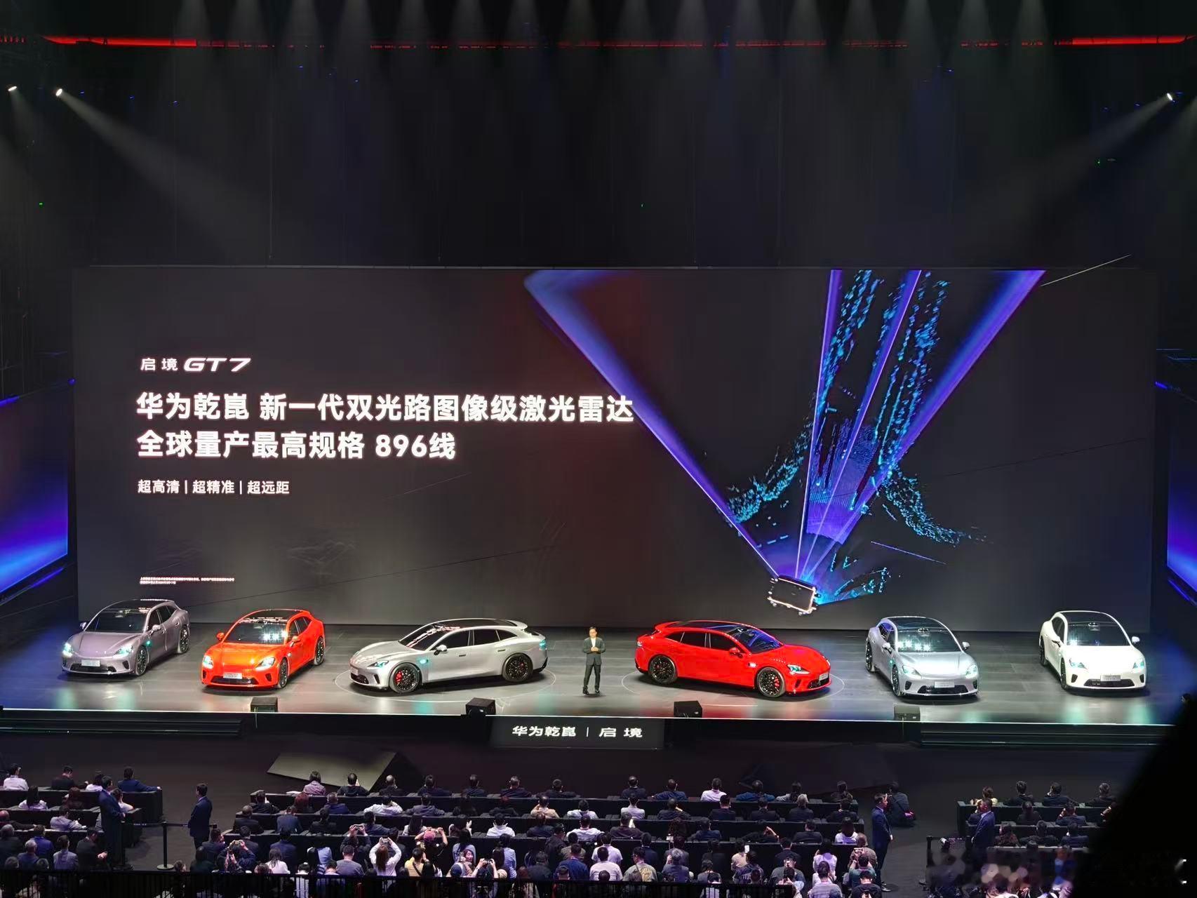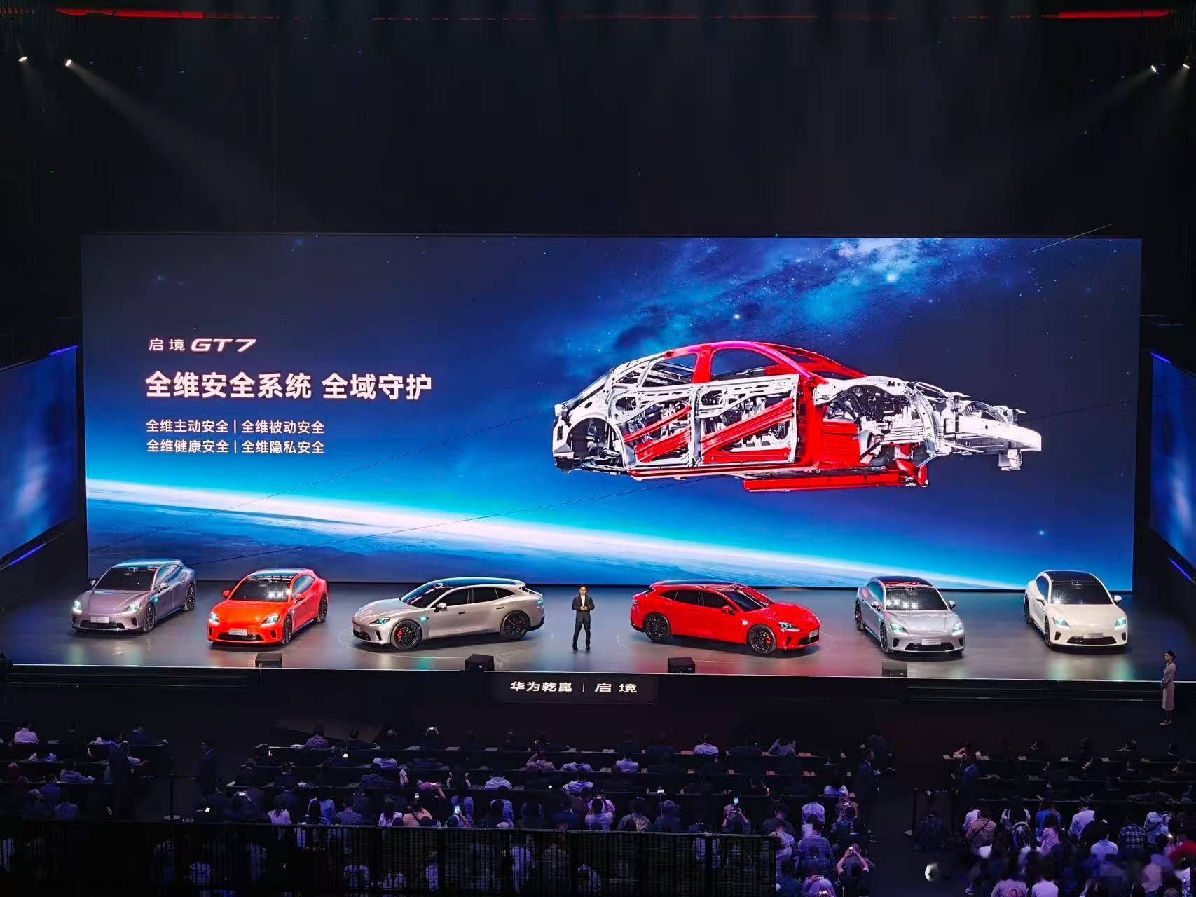 动力性能方面,车辆采用三电机系统+宁德定制新一代麒麟电池,支持800V架构、6C超充,实现1秒1公里的快速充电。同时,首发华为乾崑赤兔平台,搭载华为XMC乾崑数字底盘引擎,目的为提升操控稳定性。启境汽车新一代智能猎装启境汽车品牌发布会暨GT7首秀