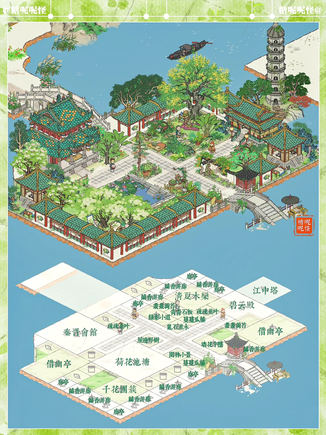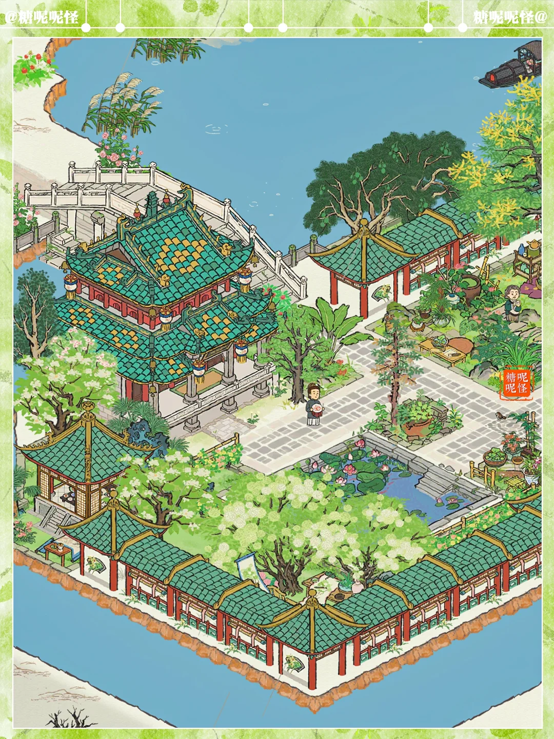 绍兴府·颠倒桥布局 建筑:秦晋会馆|碧云殿|借幽亭|荷花池塘|廊亭|兰香游廊|清夏木栾|千花团簇|墙花半隐|丛丛篱苔|疏疏蕉叶|屋边野树|乱石灌木|青青石板|蔓蔓瓜藤 ID:mhjh3embxr2 从羽翼仙访问我的『糖糖绍兴府』:CQ4F5J2Q4