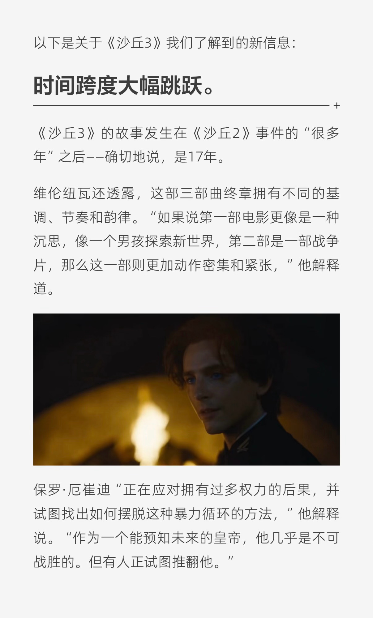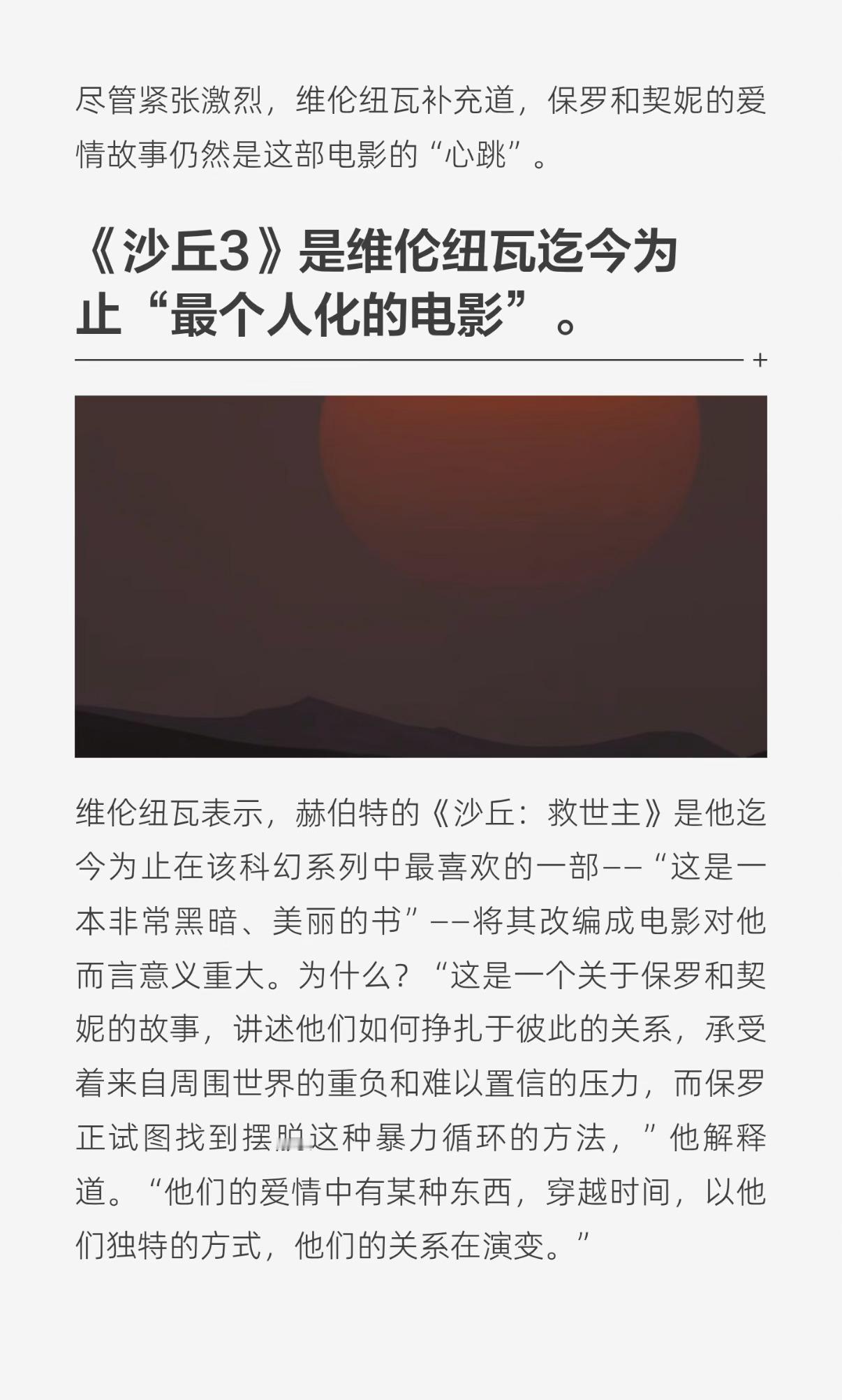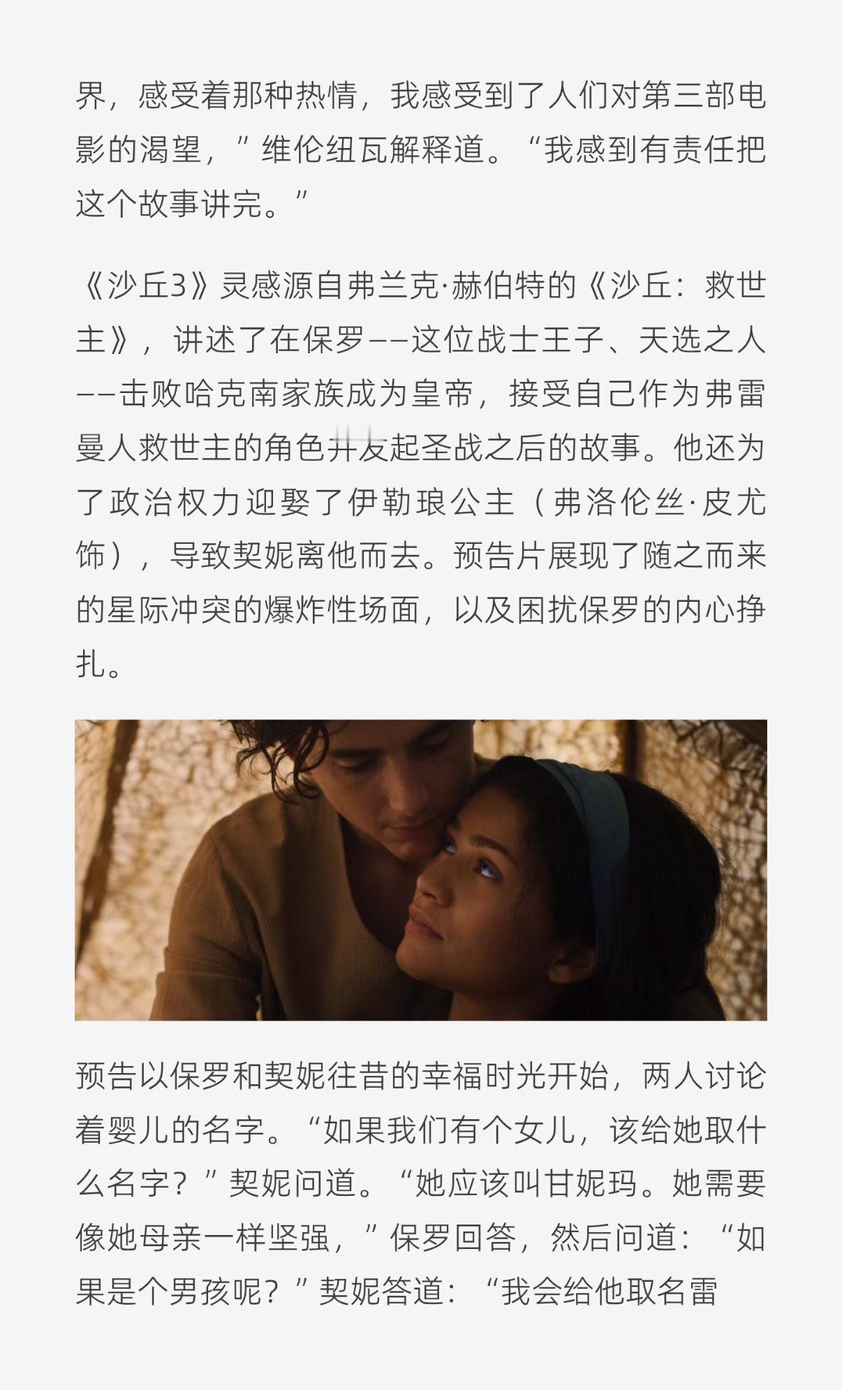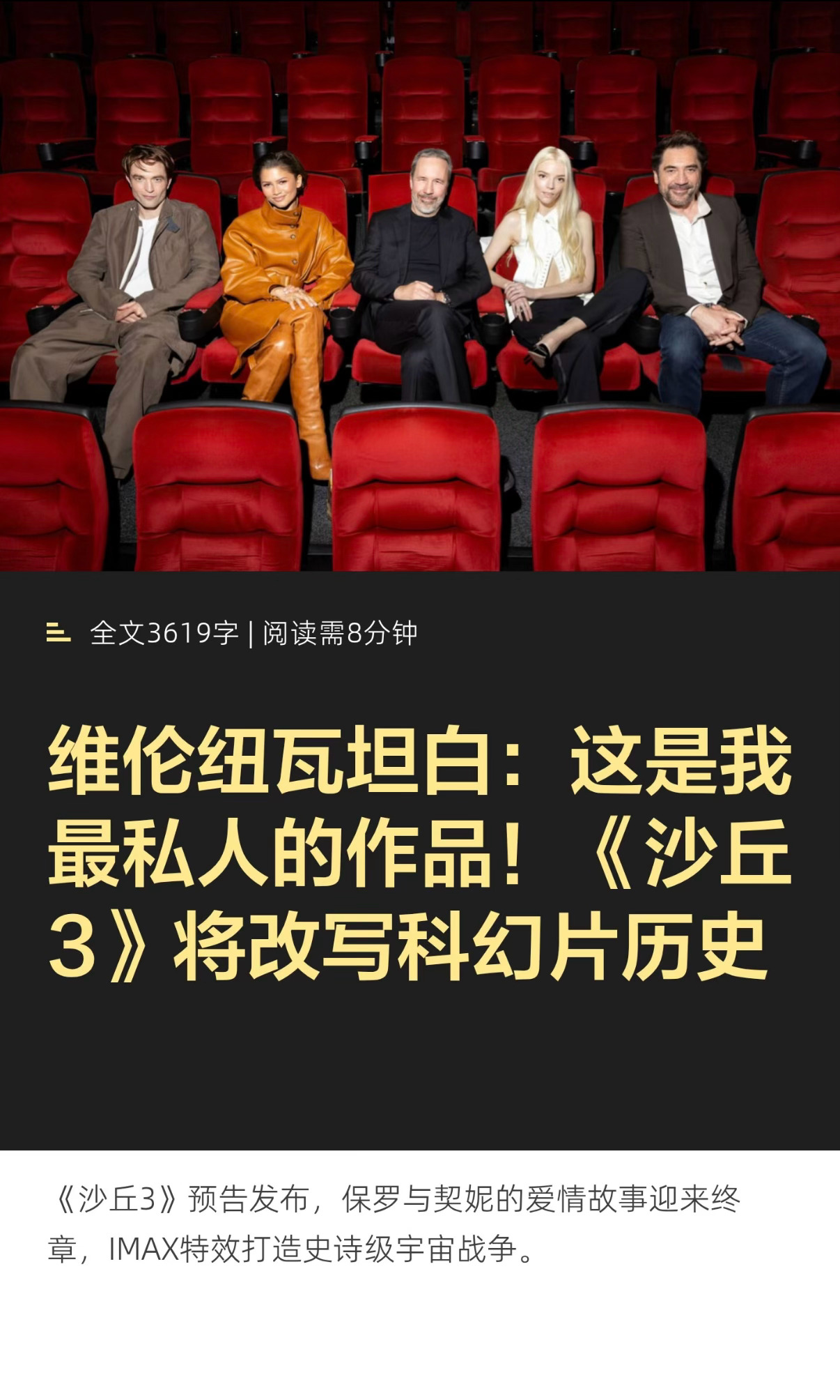 沙丘3预告维伦纽瓦坦白:这是我最私人的作品!《沙丘3》将改写科幻片历史。