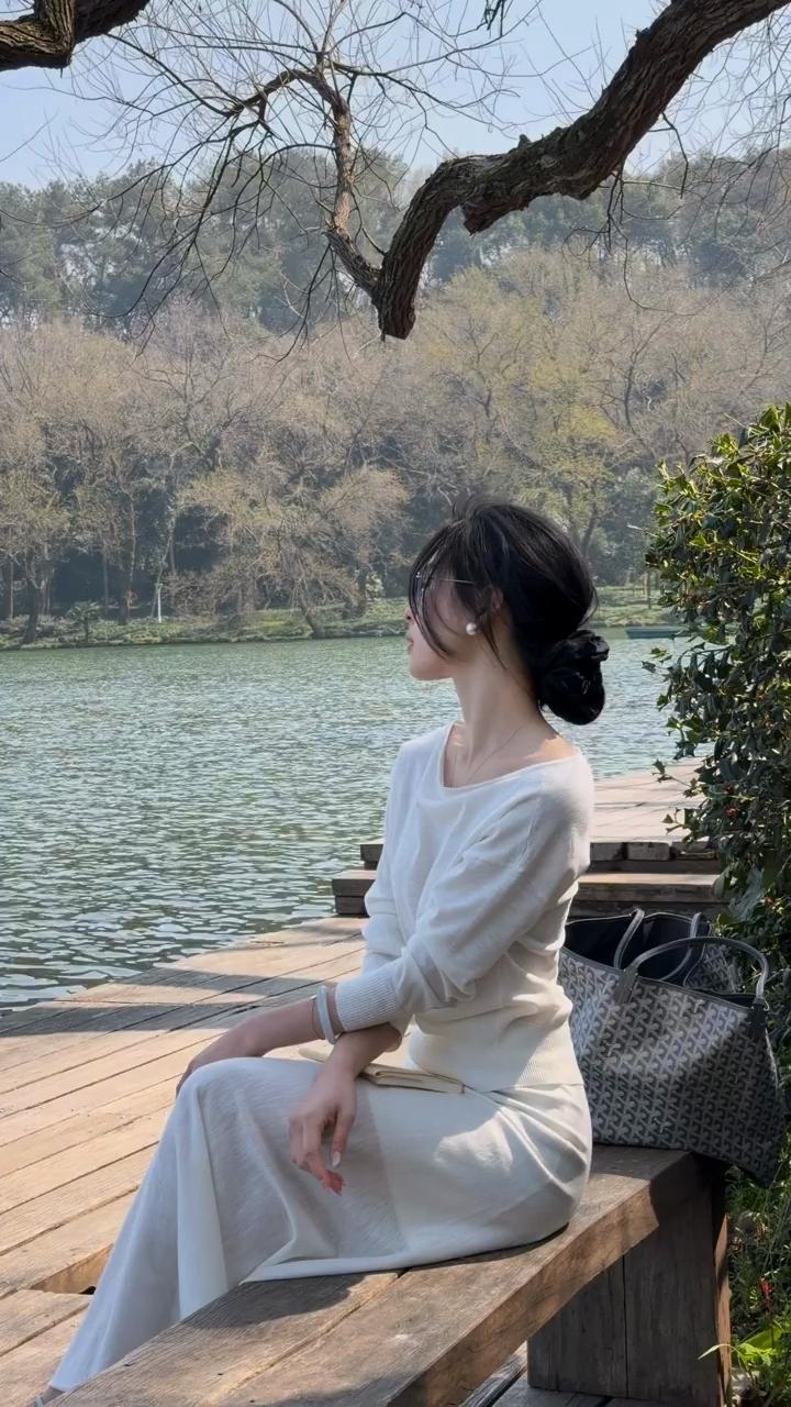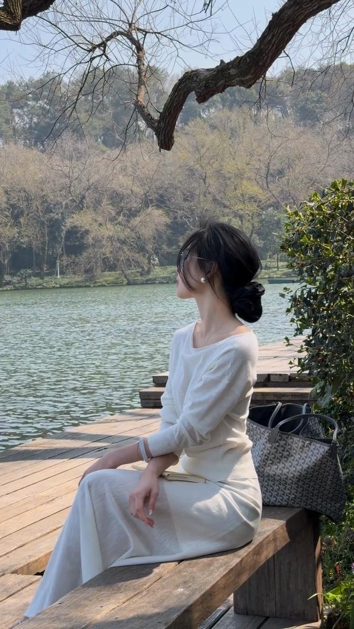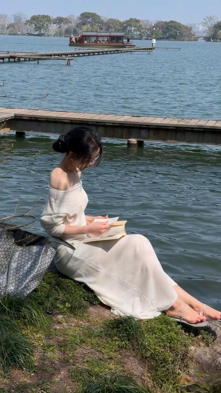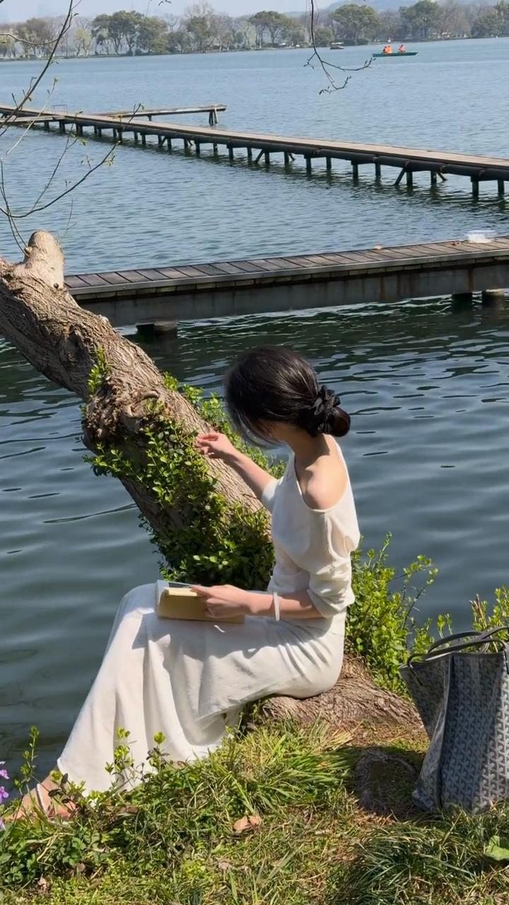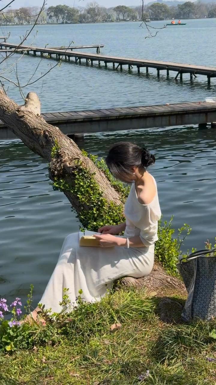 静坐湖畔,悠然自得,享受宁静时光。