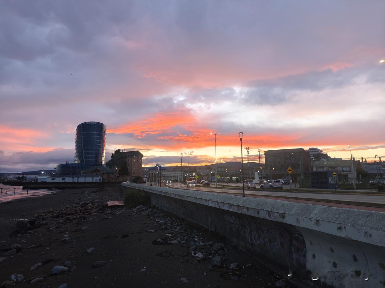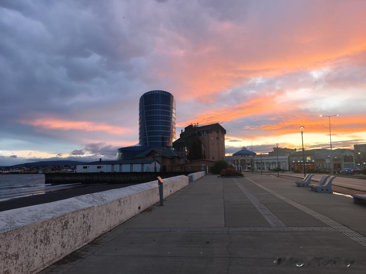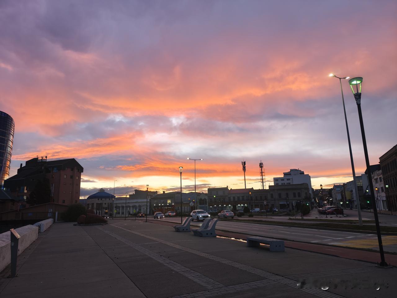 智利南部蓬塔阿雷纳斯,是一个镇,三面环海,一眼望到头。徬晚拍了几张落日照,发出来共赏。