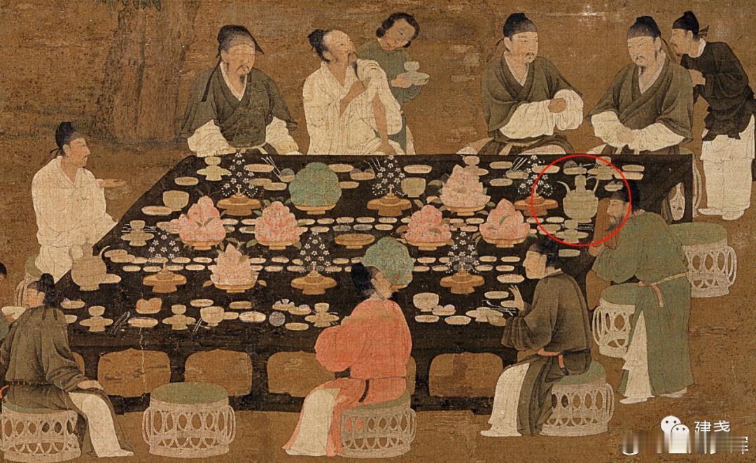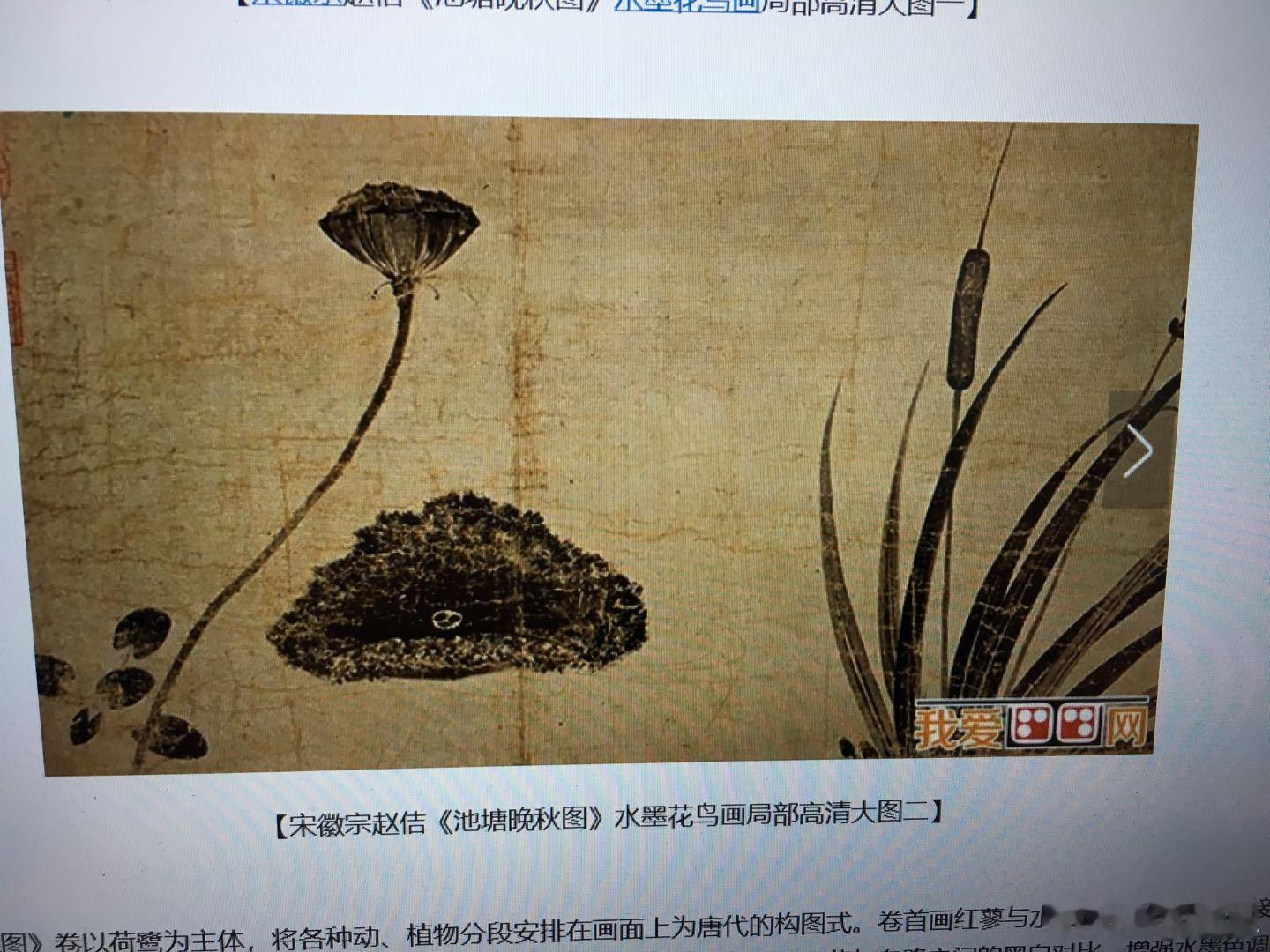 每周鉴赏收藏精品之北宋月白釉盏托 盏托在北宋宫廷生活中的作用,我们从宋徽宗的《文会图》中就可以看出来了,大盏托、小盏托,捧着的盏托,放在桌上的盏托,可谓是无盏不成宴。 本件北宋月白釉盏托,属于大盏托。从鉴赏的角度看,绘画与器型是最大的亮点。 特别是绘画,直接体现出宋徽宗的艺术气息。图一和图二是宋徽宗所绘的荷莲,顶峰之作。再看看本件盏托中两组荷莲的轮廓,虽然细节不同,但型似、神似、魂似。体现出宋徽宗这个顶级画家的,每一个荷莲的细节都不相同,但一眼就能看出来出自同一个作者的高超的绘画技巧和功夫。 在北宋青瓷中,铁锈花绘画,真正体现功力的,一是要色浓但无锈,二是色浅处要飘逸且无断笔。这两点在本件北宋月白釉盏托上都展现的淋漓尽致。所以,本件盏托上的铁锈花绘画,至少是有本且是高手画家临摹;也不排除是宋徽宗亲手绘制。相传当年金军攻击汴京城时,宋徽宗亲自做的唯一一件事,就是到北宋官窑毁掉所有瓷器和坯胎。试想,如果没有他自己的痕迹留在瓷器或坯胎上,他有必要去毁掉吗? 再看本件盏托的器型,在两组绘画的衬托下,宛如一个莲蓬。因为口沿一圈也施了铁锈花,与两组绘画产生了对应效果。因此,从整体上看,艺术设计表现的非常巅峰。不是一般窑工能够独自做到的。 所以,本件北宋月白釉盏托,看着是一个盏托,欣赏的是高超的艺术作品。