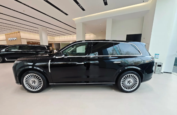 展车是黑武士版,5230mm车长+3120mm轴距,全车黑化套件配22英寸天地星芒轮毂+红色卡钳,站在车前确实被震住了。