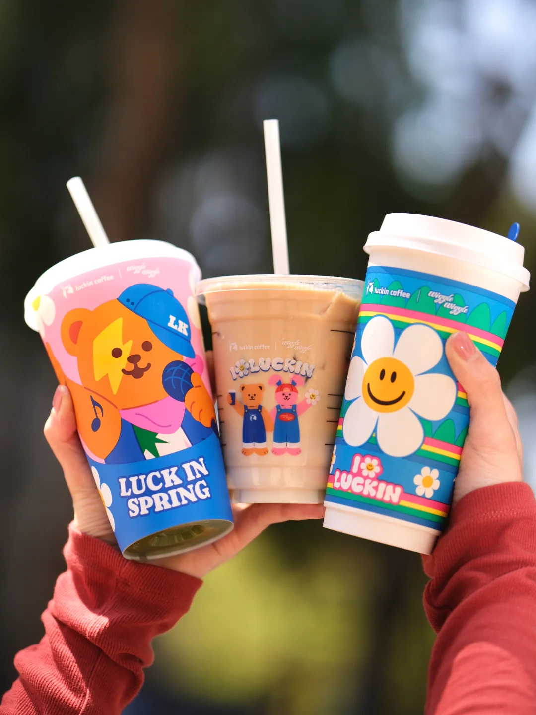 阳光正好,咖啡管饱~ 瑞幸✖️wiggle wiggle联名也太好拍了! 拿在手里阳光下随手一拍,春日氛围满满~ - 钱塘龙井拿铁入口茶香超治愈 苦瓜轻体果蔬茶清爽不苦的液体沙拉! 鲜萃轻轻龙井一口喝到春天🍃 - 现在原产地鲜活季多款饮品自提享 9.9,姐妹们放心冲! 联名杯跟各种周边实在是太可爱了 当然是要all in!!!