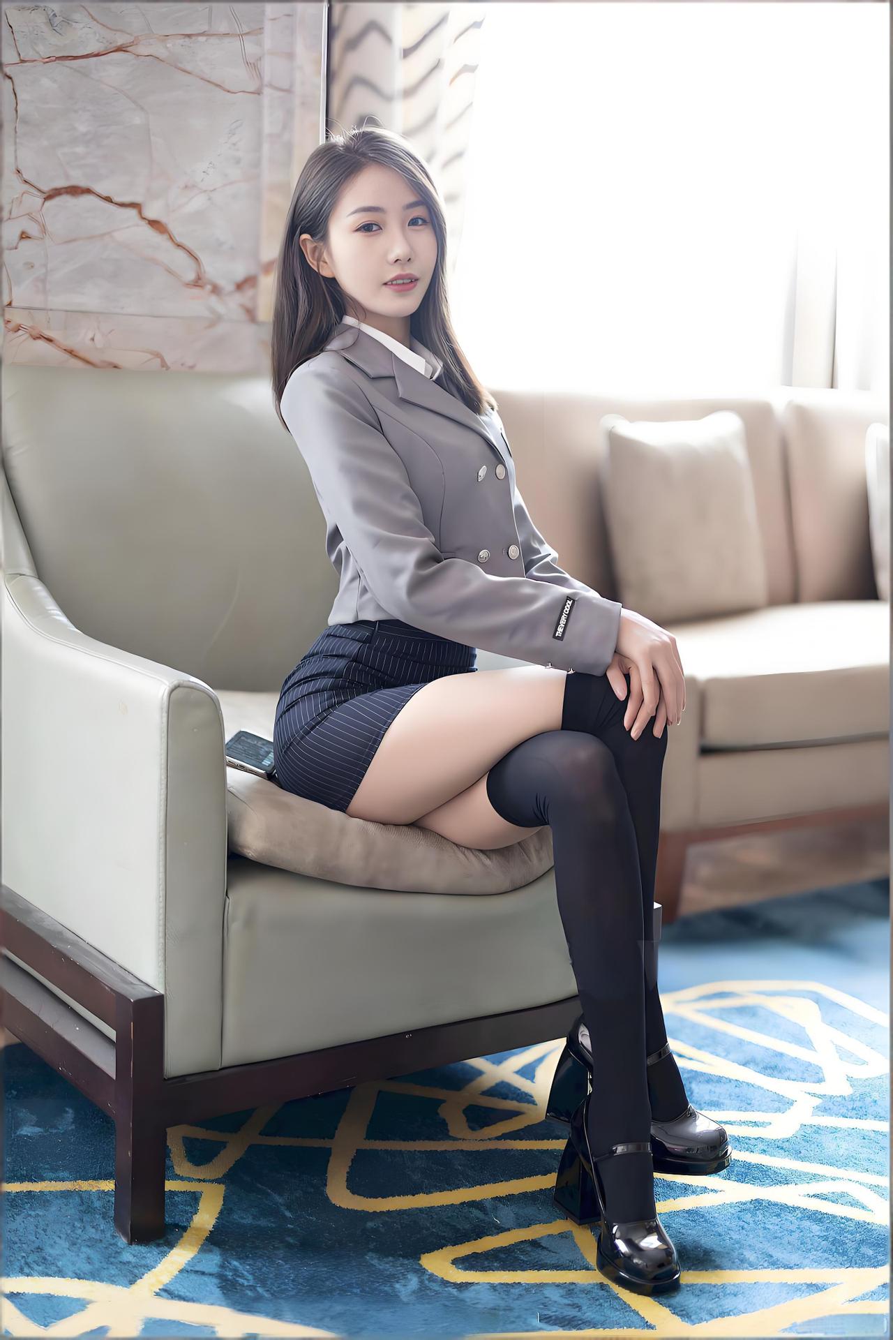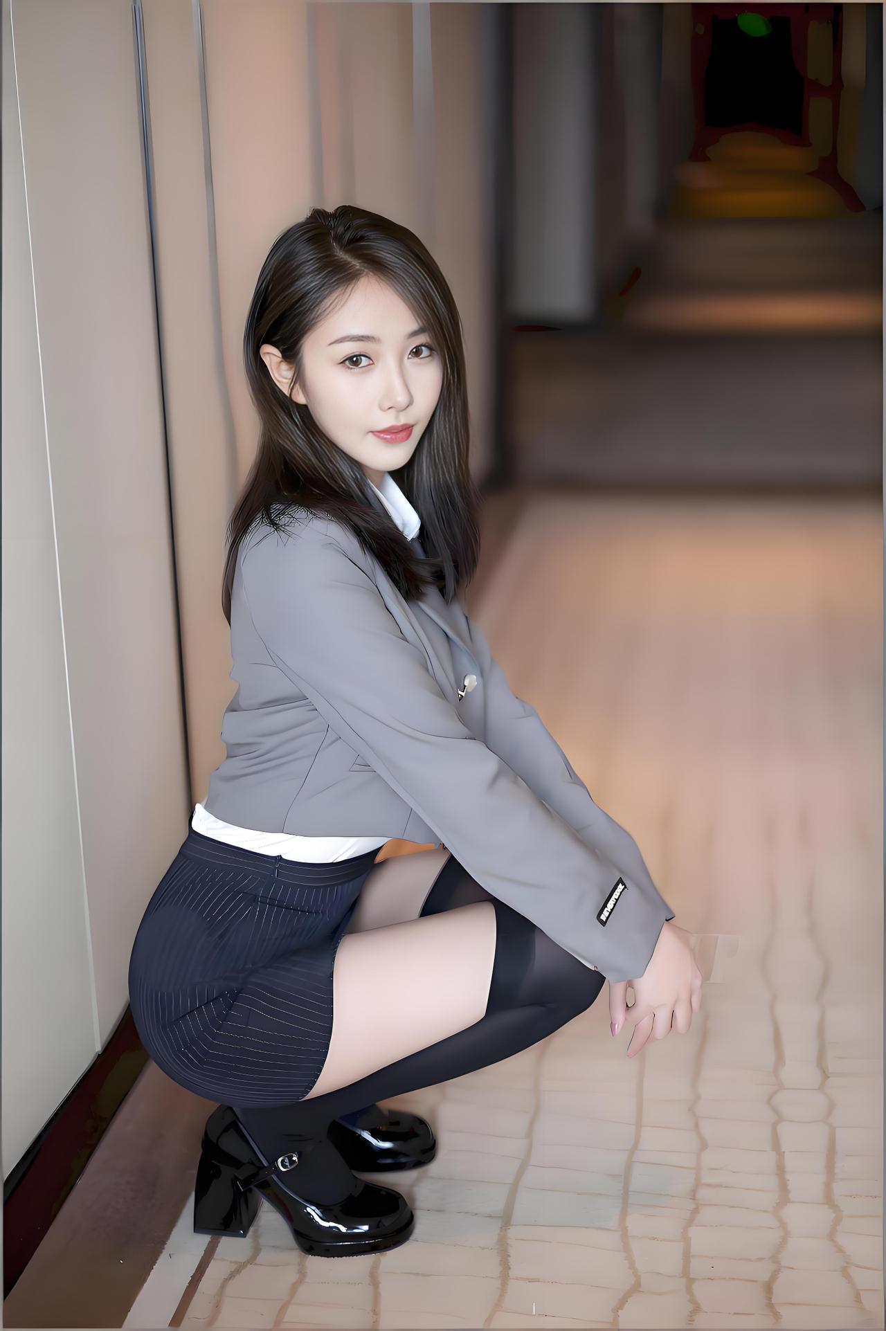 午后的暖光透过落地窗,在浅米色的客厅里织出一层温柔的光网,深色圆桌成了这方空间的视觉中心。她斜倚在桌沿,长发如瀑般垂落,指尖轻提着灰色西装的衣摆,姿态慵懒又带着几分不经意的娇俏,眉眼间漫着的柔意,瞬间让整个空间都鲜活起来。 短款灰色西装利落挺括,勾勒出利落的肩线,内搭的白衬衫领口微敞,酒红色条纹领带随意系着,打破了正式感的刻板,添了几分灵动俏皮。下身的深色针织短裙紧贴腰臀,流畅的线条尽显青春活力,搭配黑色过膝袜,将甜酷感拉满,每一处细节都在诉说着风格的碰撞与融合。 这套穿搭堪称风格平衡的典范,正式感与少女感完美契合,既有着职场通勤的干练气场,又不失青春的鲜活朝气,完美契合当下流行的甜酷风格。它用简约的单品搭配出丰富的层次感,让人忍不住想要复刻这份精致与灵动,将日常穿搭也变得充满仪式感。