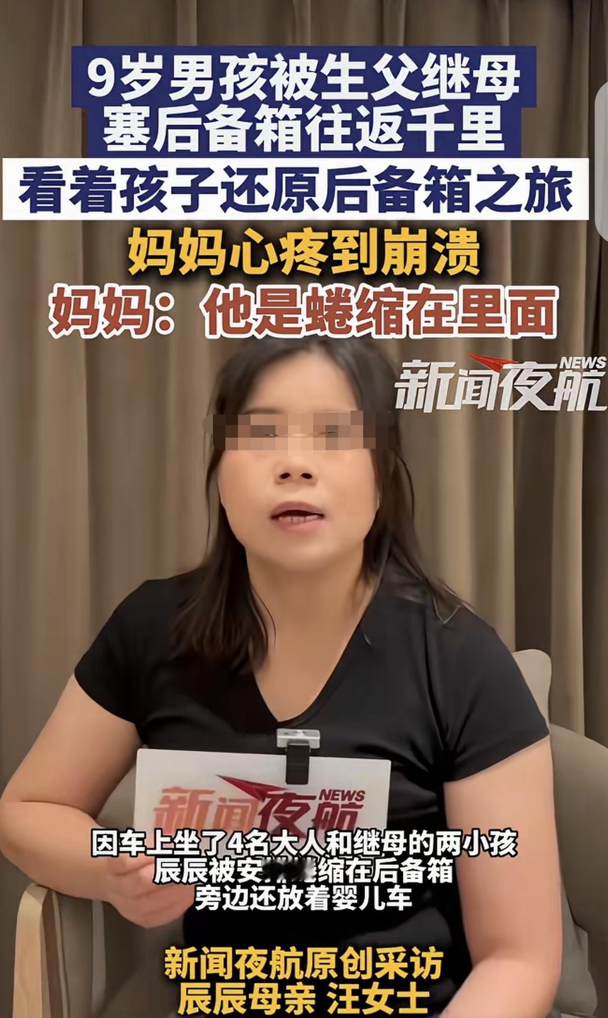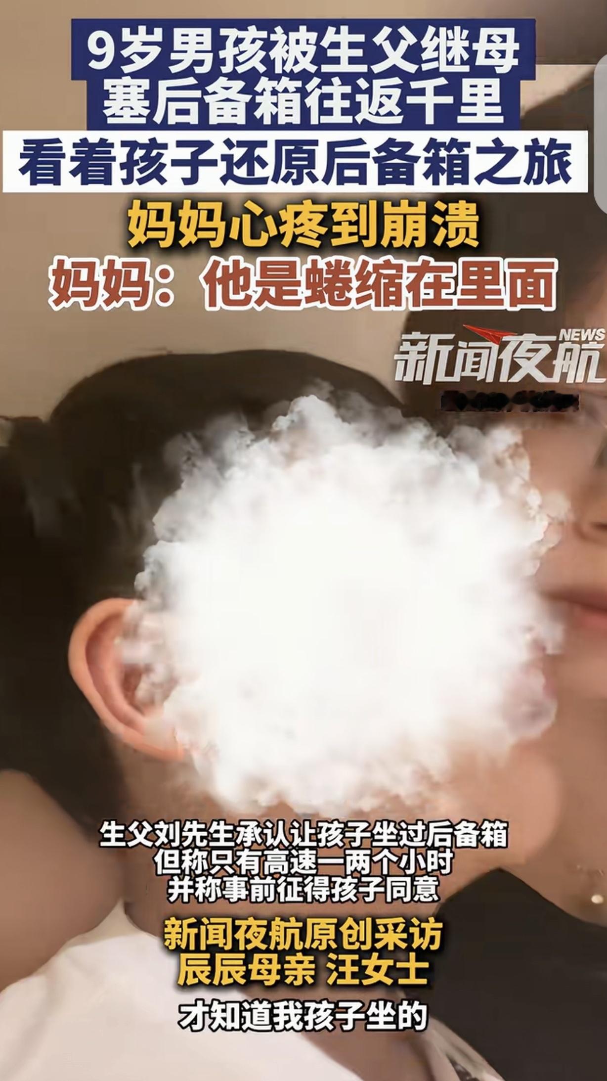 “有后妈就有后爹!”广东佛山,一9岁男孩被生父和继母,塞在车子的后备箱,蜷缩在里面,往返佛山-桂林1000公里,生母知道后,心疼到崩溃,她把儿子抚养权变更到自己名下,又愤怒的以儿子名义,把生父继母告上法庭,告他们侵犯生命权,身体权,健康权,要求赔礼道歉,但生父一口咬定,儿子愿意进后备箱,他不属于虐待,没什么大不了的,拒绝道歉,法院判决出乎意料。网友:你知道追尾的后果吗? 汪女士和丈夫离婚后,儿子辰辰的抚养权判给了前夫刘先生。 很快,刘先生再婚,婚后又生了2个孩子,汪女士很担心儿子在前夫的再婚家庭受气。 俗话说:有后妈就有后爹,而且前夫又生了两个孩子,汪女士对儿子真是牵肠挂肚。 汪女士真是怕啥来啥,2023年暑假,9岁的辰辰跟爸爸和继母,爷爷奶奶,还有自己同父异母的两个手足,自驾去桂林玩。 因为车子是5座,而他们一行7人,辰辰竟然被爸爸和继母塞在了后备箱,而且,狭小的后备箱不光辰辰,还有婴儿车,其他杂七杂八的东西。 辰辰在后备箱里,腿都伸不开,完全是蜷缩在里面的,而且,从佛山到桂林,往返1000公里。 汪女士得知后,心疼到崩溃,尤其儿子给她演示,怎么蜷缩在后备箱的情形,看的汪女士泪如雨下。 2024年11月,愤怒的汪女士通过诉讼,成功的把儿子的抚养权变更到自己名下,既然前夫不爱儿子,那就由她来看。 即便如此,汪女士还是余怒未消,2025年4月,她又以儿子名义,把生父继母告上法庭,诉他们侵犯了辰辰的生命权,健康权,身体权,要求生父继母道歉。 但生父一是不承认是他和再婚妻子把儿子塞后备箱的,一口咬定征得辰辰同意,他愿意进后备箱的。 而且,刘先生还不承认辰辰在后备箱往返1000公里,只承认在高速路进去一两个小时。 所以,刘先生认为这没什么大不了的,而且也没给儿子造成伤害,他又没虐待儿子,有什么好道歉的,认为汪女士小题大做。 一审法院判决刘先生和妻子,侵犯了辰辰的健康权,判决赔偿辰辰3000元,但不支持公开道歉。 刘先生不但拒绝道歉,也不愿意支付3000精神损害抚慰金,提起上诉。 汪女士也不服判决,钱不钱的无所谓,她坚持让刘先生夫妻道歉,还提交了辰辰心理评估报告等新证据。 二审还没开庭,静待结果。 有人说,生父说不是虐待,让他在后备箱里面呆两个小时试试。支持妈妈把抚养权要回来!可怜的娃! 车核载5人,实载7人,超载行驶高速上已经违反道路交通安全管理规定,应该报警让交警给予罚款扣分扣车处理啊! 孩子难受的是后尾箱吗,不是,他难受的是这个破碎的家庭,如果是完整的家庭,睡车底他都是开心的。 有人觉得汪女士矫情,真可笑,车里面挤不下,男孩子挤后备箱很正常啊!有必要这么矫情?要是带不下,让他留在家里,你们又该怎么喷?而且很多男孩子也会很喜欢稀奇古怪的经历!搞清楚!幸好我是我妈亲生的,有一次放学我妈赶集自行车带了很多东西,坐不下,就让我跟着自行车一路跑回去的,3年级,4里路!要是后妈不得被你们骂死? 《民法典》第1004条规定,自然人享有健康权。自然人的身心健康受法律保护,任何组织或者个人不得侵害他人的健康权。 本案中,生父与继母将9岁的辰辰塞在狭窄后备箱往返上千公里,无论是否征得同意,该行为均严重威胁孩子的身体健康,侵害其健康权。 一审法院判决二人赔偿3000元精神损害抚慰金,正是基于此条对辰辰健康权的保护。 对此,你怎么看? 关注@运良说法 学法律知识不迷路