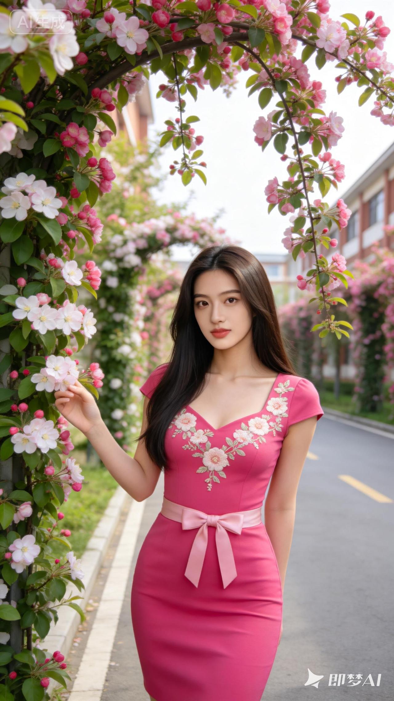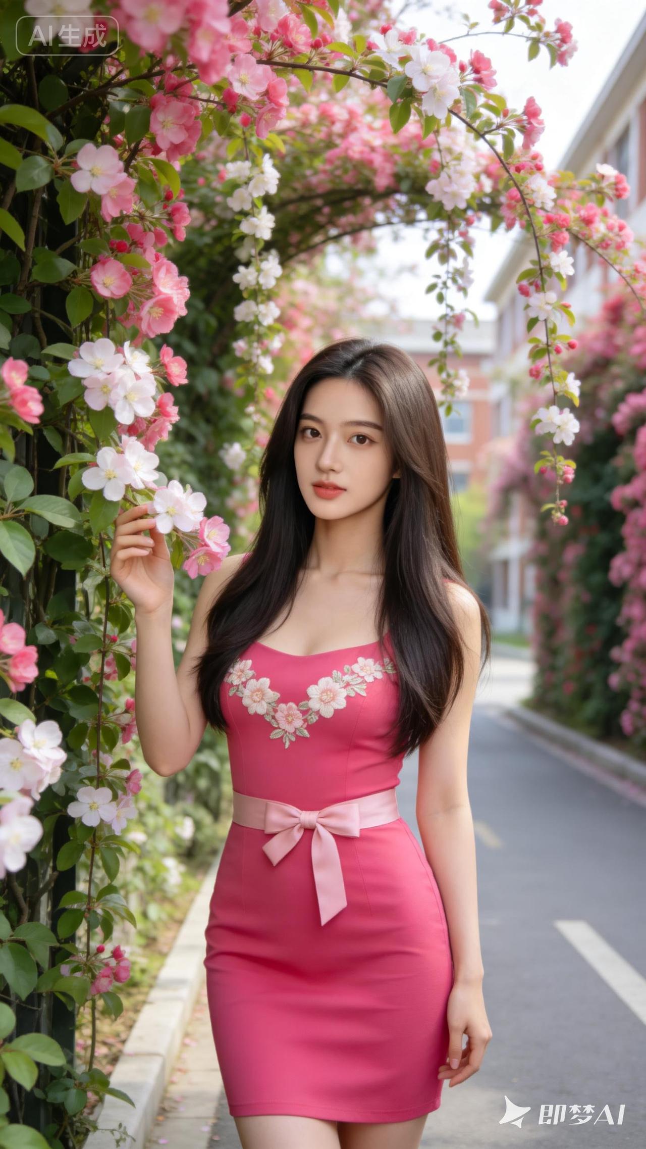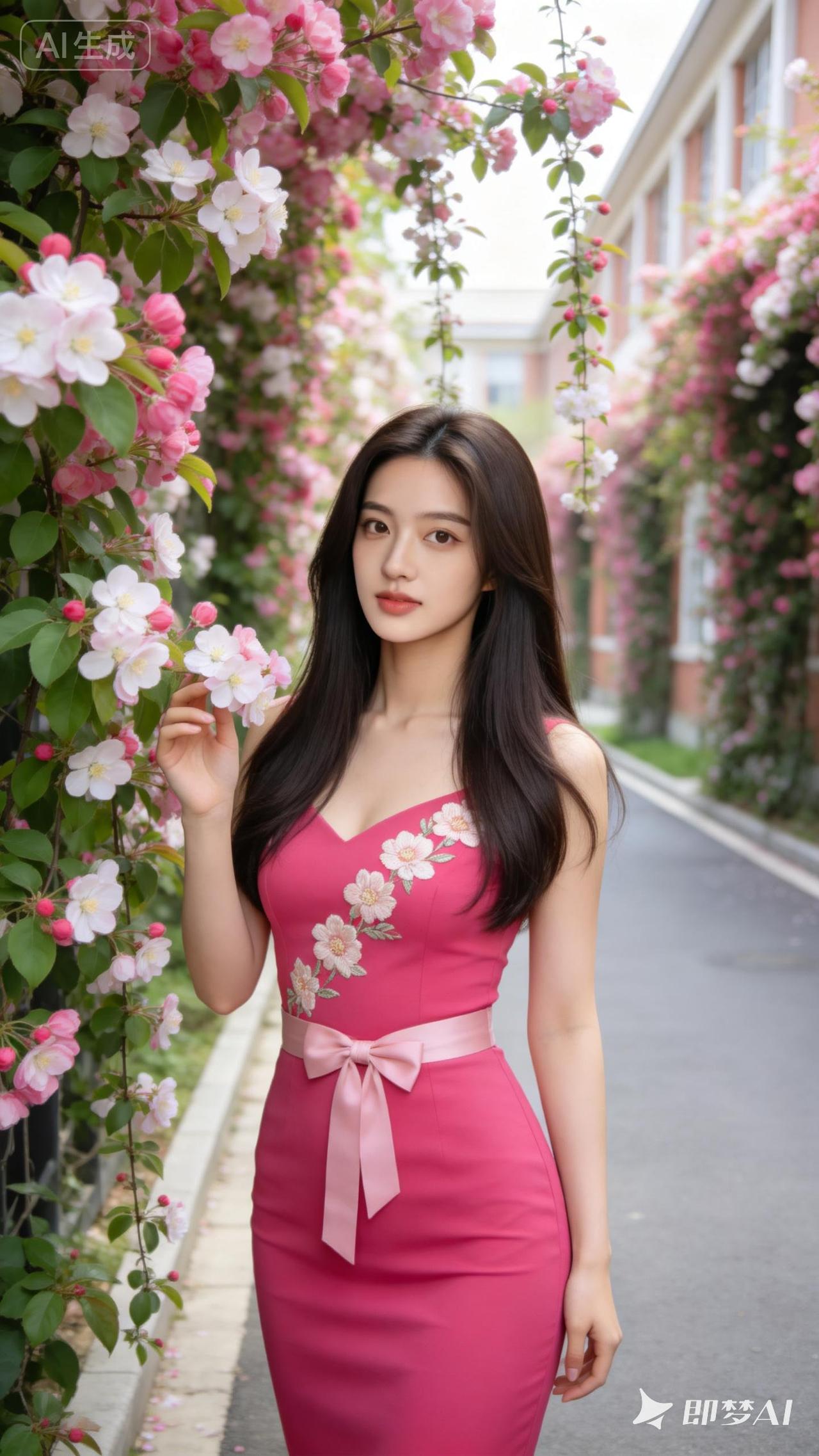 粉色连衣裙下的少女梦,花海中的浪漫时光