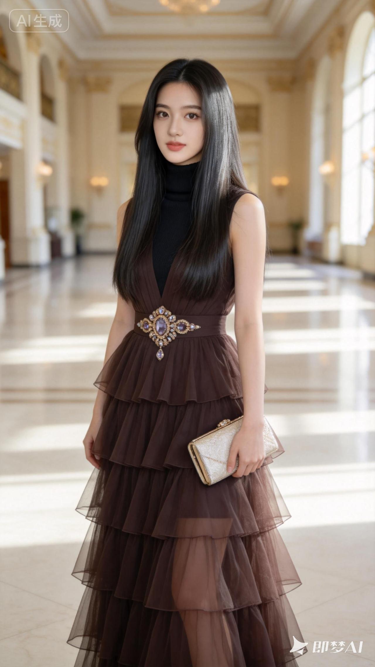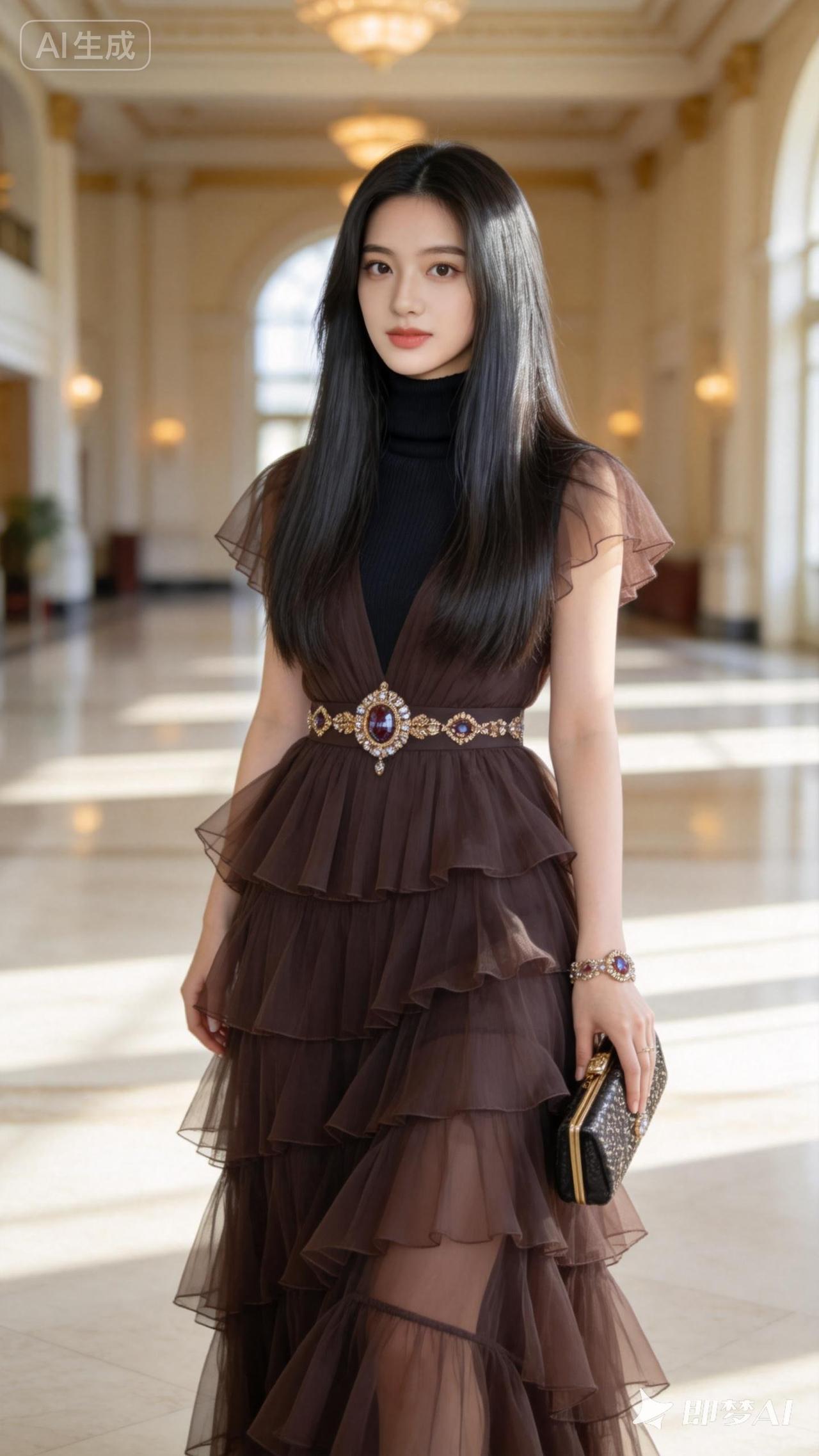 优雅气质,层层叠叠的棕色礼服,尽显时尚魅力!