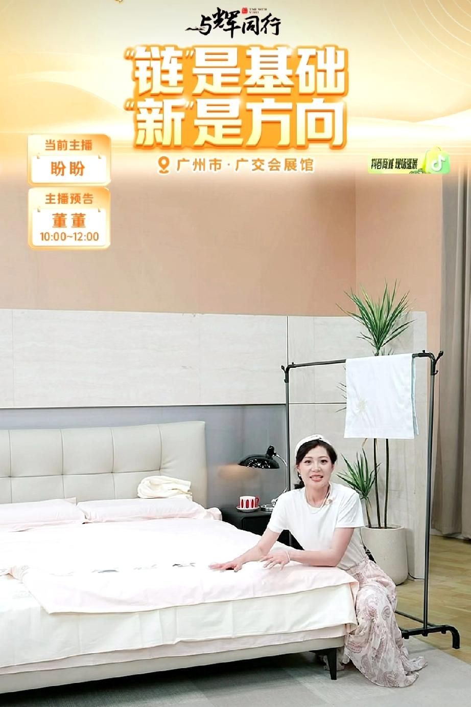 难怪董宇辉会派盼盼带队去广交会。早晨一开播,直播间9万加,仅仅讲了10分钟,销售额300多万,要知道盼盼才刚刚讲了一款全棉刺绣四件套而已。 盼盼今天的衣着、发型和配饰都与平时有所不同,看起来更加的青春靓丽,更加的温柔,给人耳目一新的感觉。 很多朋友都说盼盼就是个宝藏女孩,你不知道什么时候她就会给你带来意想不到的惊喜。 今天,估计销售额也得是一亿往上跑。也难怪董宇辉现在可以放心的把这些重要的活动直接交给他们几个了。 董宇辉 与辉同行