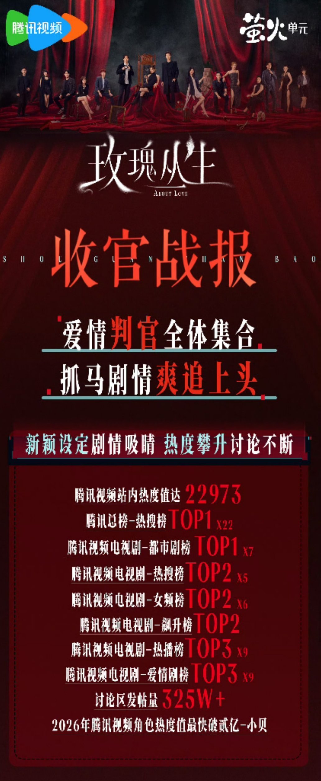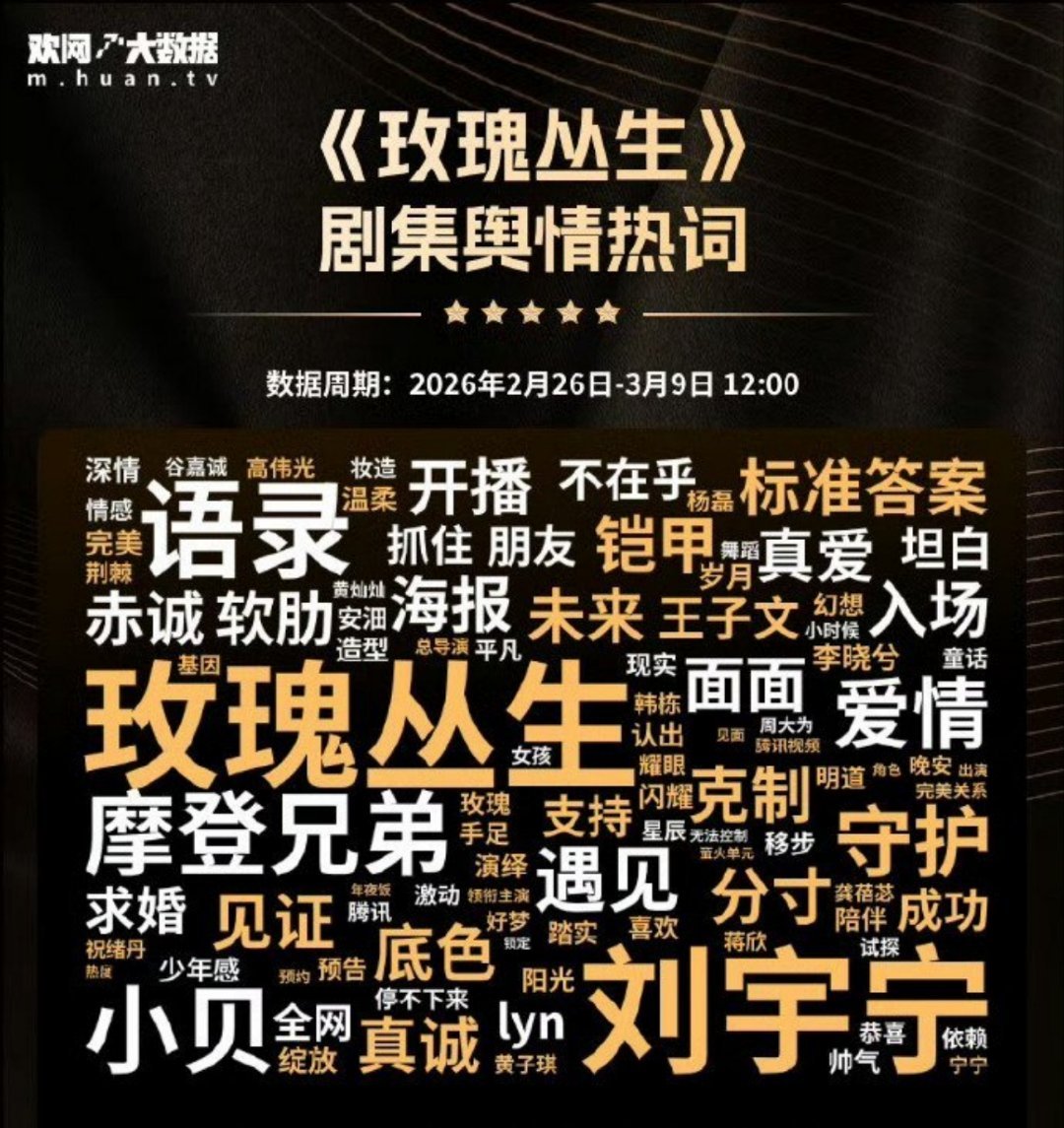 刘宇宁主演的《玫瑰丛生》收官了,我来谈谈体感!🐚🐚🐚🐚❶此部剧是平台积压多年的A级剧,一定档直接就把刘宇宁提到了男主的位置,其实他的戏份并不多,但刘宇宁粉丝完全没有轻视它,直接打出口号,这是宁哥男主剧必须托举,然后就大手笔10万➕☁️包场开局,他们不仅出钱还出力,全平台扛起了宣传大旗,以至于刘宇宁饰演角色小贝站内热度值直接3分钟破亿、4.5小时破2亿,刷新腾讯视频历史最快纪录。