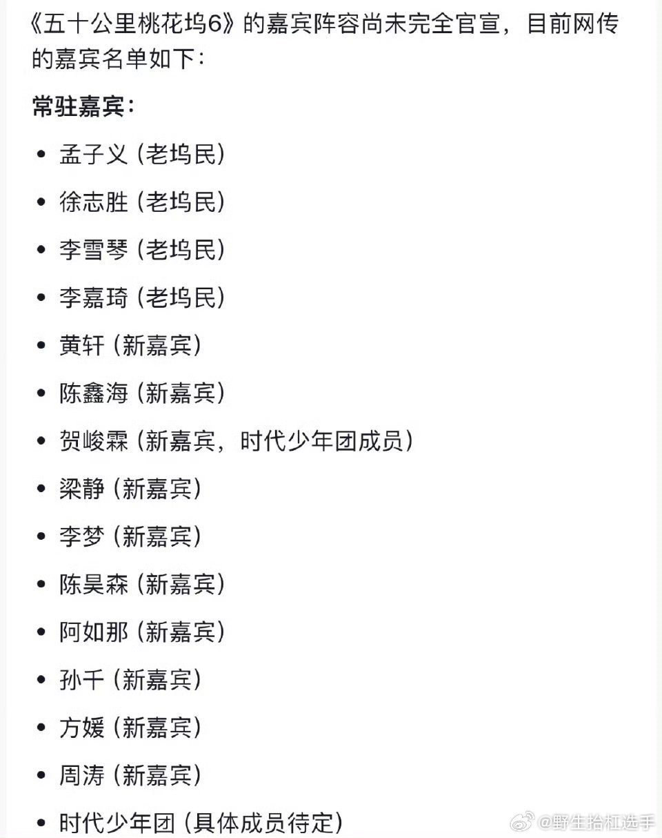 桃花坞6阵容桃花坞新一季开录,除了李嘉琦、李雪琴这些老坞民外还看到了很多新鲜面孔,让人眼前一亮又一亮,看路透已经十分期待了!五十公里桃花坞
