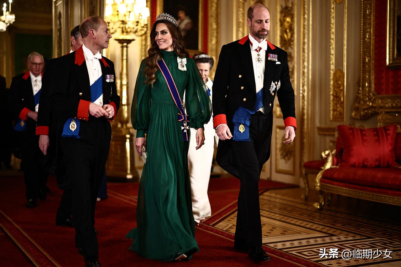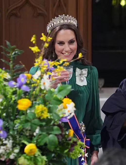 凯特这次穿的很漂亮啊!情人结王冠再次出现! 昨天,有一场正式的国宴接待活动,凯特先是穿了一套灰白色修身连衣裙,搭配同款帽子,看起来非常内敛安静。 晚上凯特穿了一件绿色长裙,佩戴情人结王冠,还有查尔斯的像章 梅根在家里玩插花,凯特出席国宴忙,亲兄弟两妯娌,不同选择差别还真是大[捂脸]