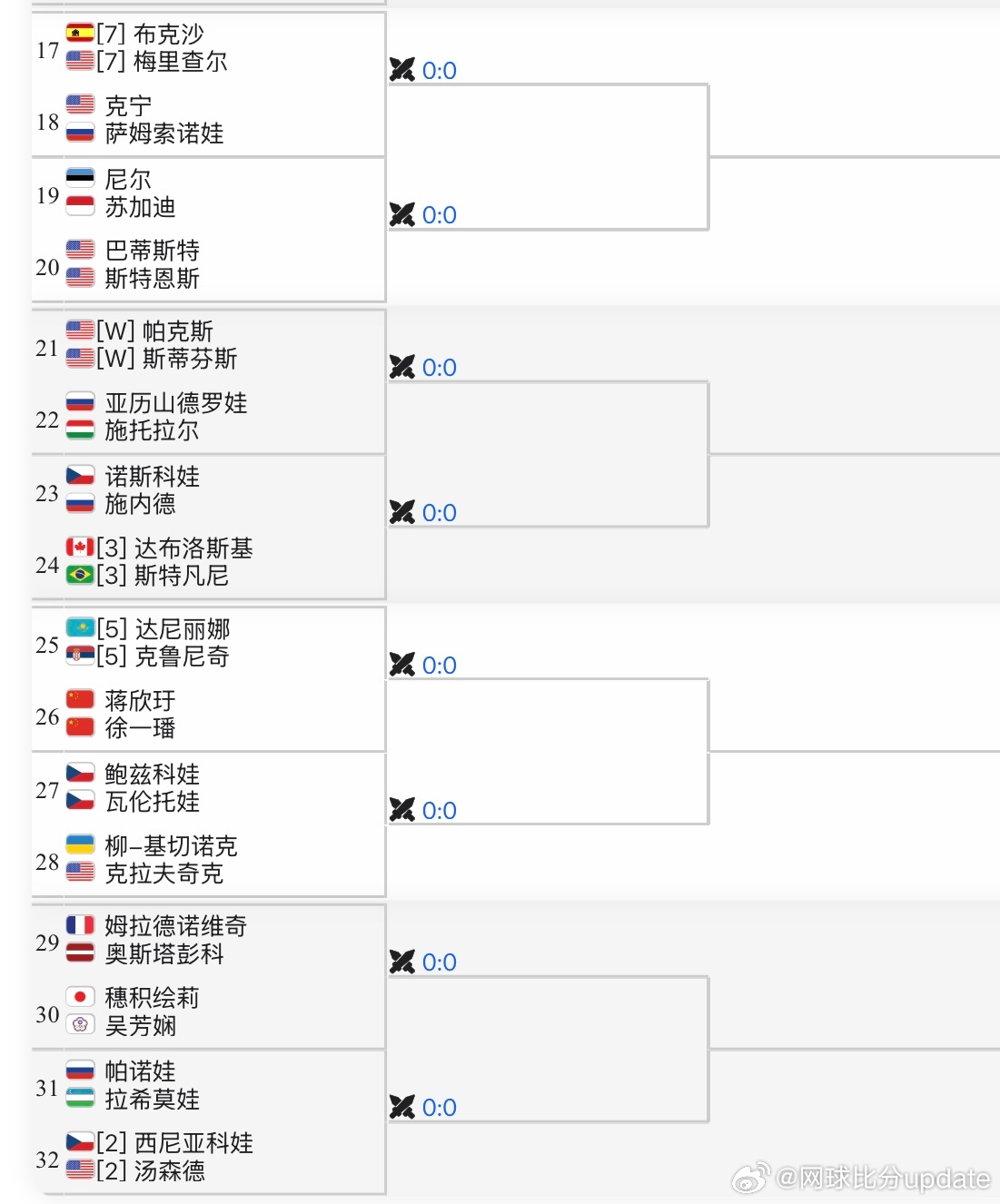 🇺🇸迈阿密WTA1000女双签表🇨🇳张帅/🇧🇪梅尔滕斯 vs 詹皓晴/🇮🇩曾丽美🇨🇳蒋欣玗/🇨🇳徐一璠 vs 🇰🇿达尼丽娜/🇷🇸克鲁尼奇🇨🇳杨钊煊/🇯🇵加藤未唯vs🇩🇪西格蒙德/🇷🇺兹沃娜列娃