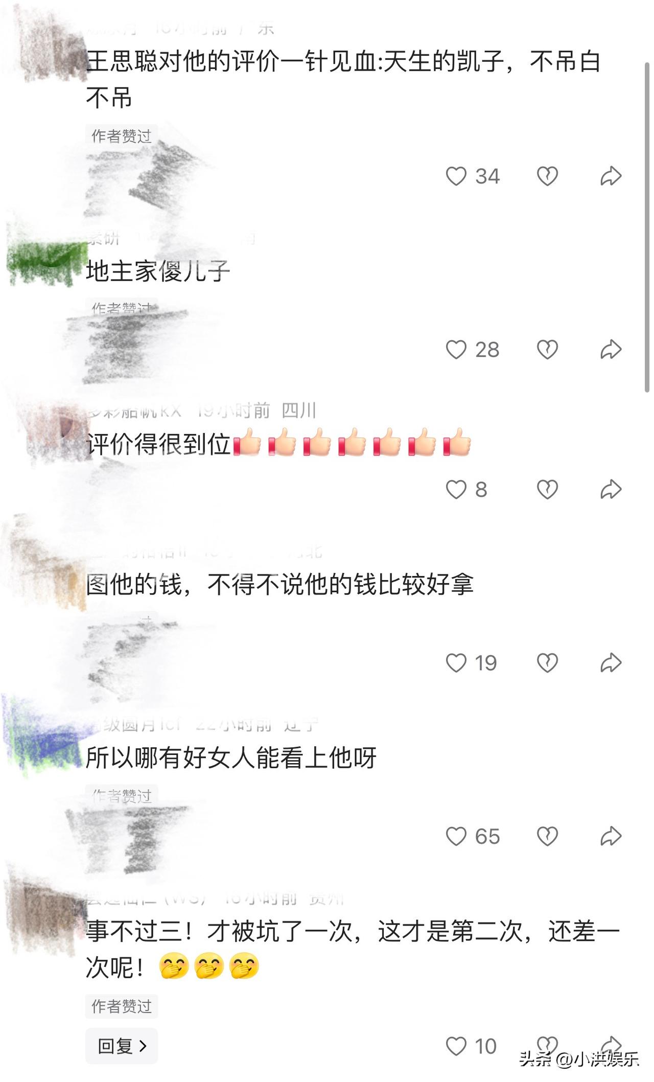 汪小菲这是印证了王思聪的评价, 汪小菲目前的处境真如王思聪当初对他的评价,现在被无情的印证了,还真是网友们说的, 现在汪小菲经常飞来飞去,对自己的母亲也是没有想象的那么心疼,张兰这么大岁数了,现在还拼搏在第一线,而汪小菲基本上都是陪在自己的妻子旁边。 当初王思聪评价汪小菲是天生的凯子,不吊白不吊,网友们也表示现在的这个最终也可能会像第一个一样分资产。 不过还是希望不要出现这样的情况,张兰拼搏如此也确实不容易,大家觉得呢?