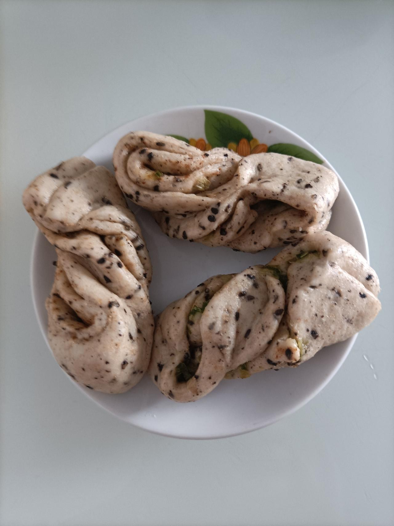 (1)昨天晚上儿媳妇又拿了一包食品回来,叫什么“麦吉家”,是全麦黑芝麻葱油卷,是济南麦吉食品有限公司生产的! 儿媳妇说,老年人多吃点粗粮,有助于肠道消化,防止便秘。今天中午蒸了几个,味道还不错,再煮了点小米粥! 可是我家那个傻老头他就吃不惯,说这个不好吃,又贵,他就喜欢吃白馒头和稀饭,就又绐他另外蒸了个白馒头,又煮了稀饭。二个老人二个吃法,也没办法,因为一个老人的口味是很难迎合大家的,麻烦一点也要绐他另外做!