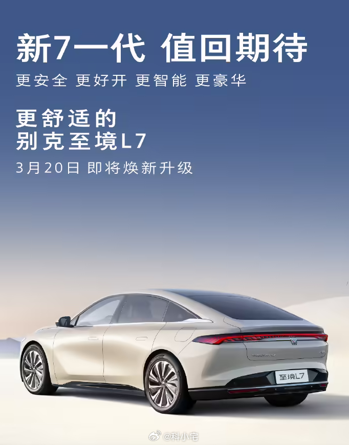 别克至境 L7 车型 3 月 20 日焕新升级,会比之前更加舒适