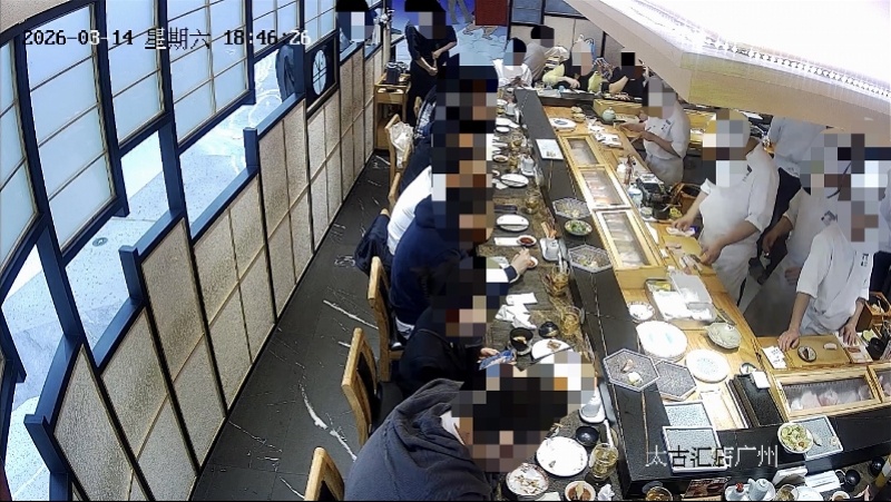 3月19日,南都记者再度走访事发门店,半藏寿司创始人向南都记者提供了现场监控画面。监控视频显示,3月14日18时30分,该名女顾客入座;18时46分,涉事男顾客入座,期间双方有对话;19时39分左右,双方产生争执,后该名女顾客在服务员陪同下离店。