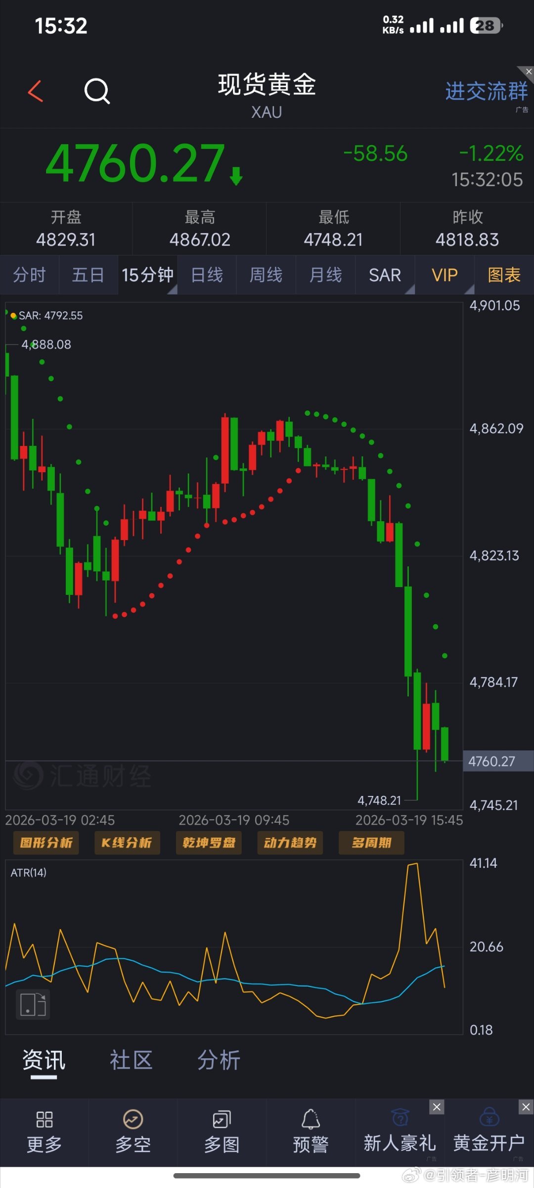 再赚33美刀!我说什么空!空!空!往4730看!黄金金价