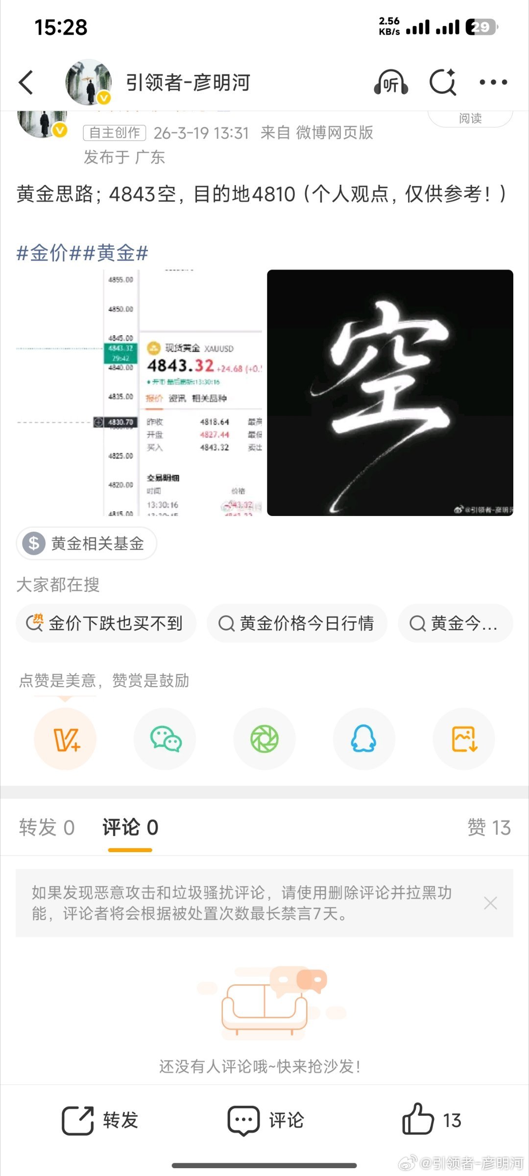 黄金思路;4843空,目的地4810(个人观点,仅供参考!)金价黄金
