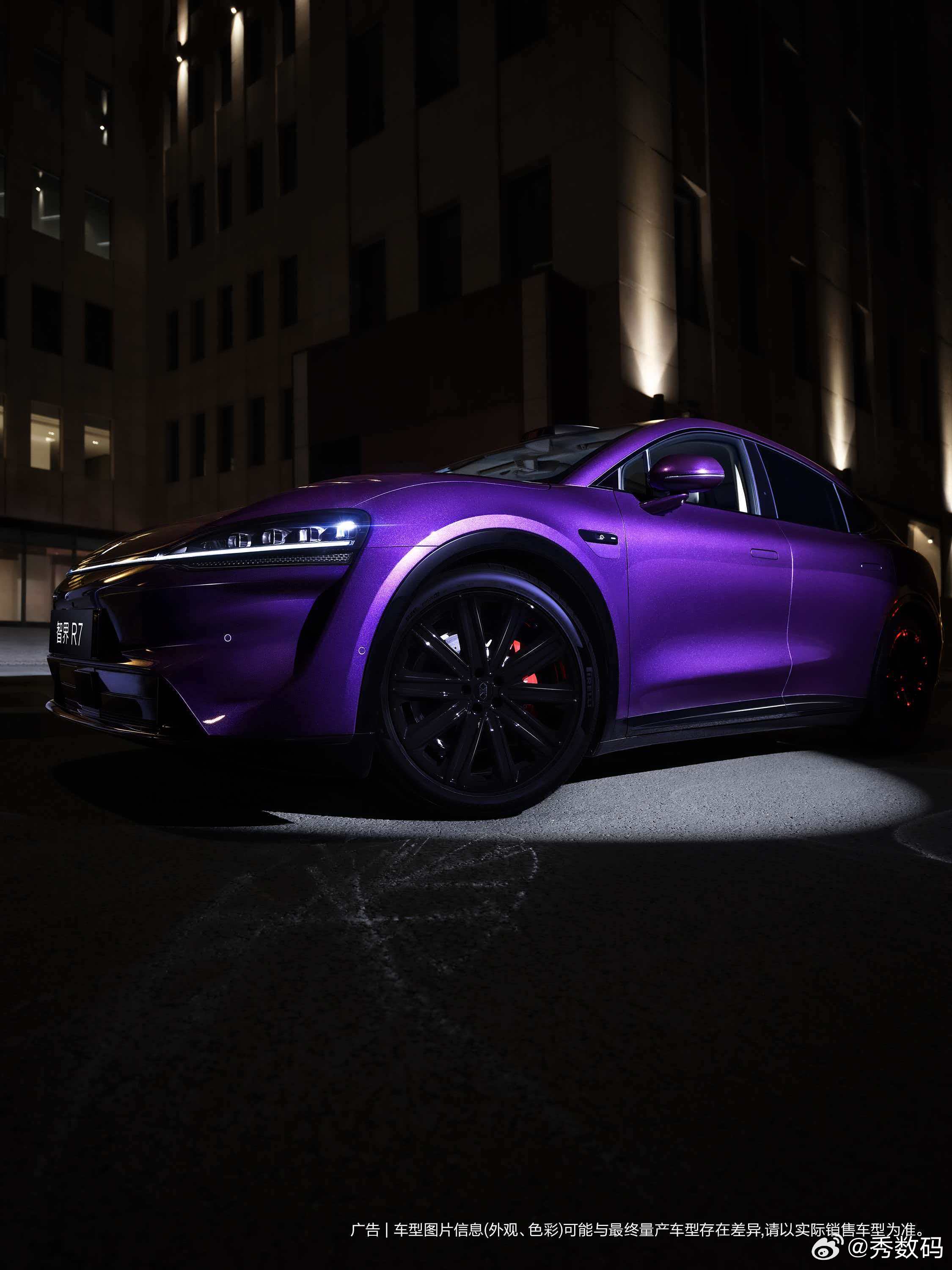 智界R7暗夜紫实车 智界R7、S7除了活力橙以后,王玉雯在视频中又展示了全新车色“暗夜紫”,这个暗紫色颜值很高,光影下呈现的随角异色效果,太漂亮了。王玉雯好紫