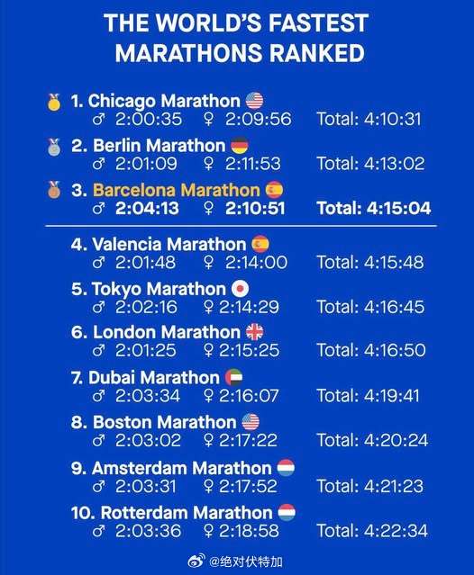 巴塞罗那马拉松 芝加哥马拉松 柏林马拉松