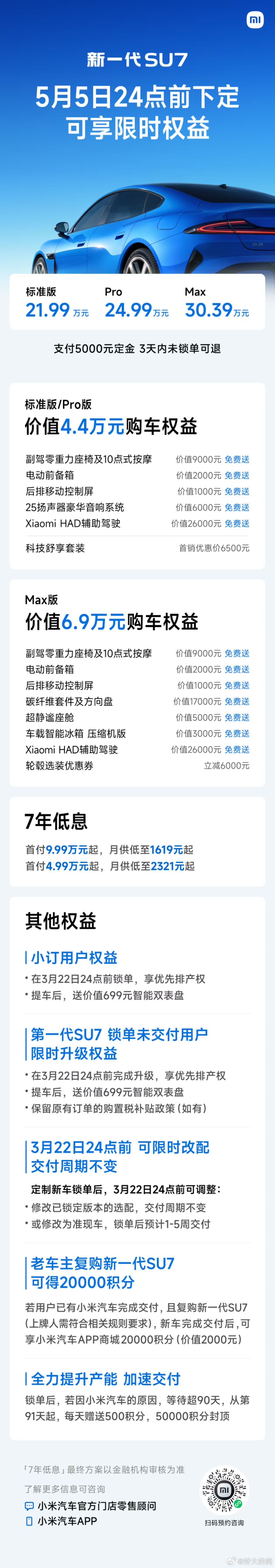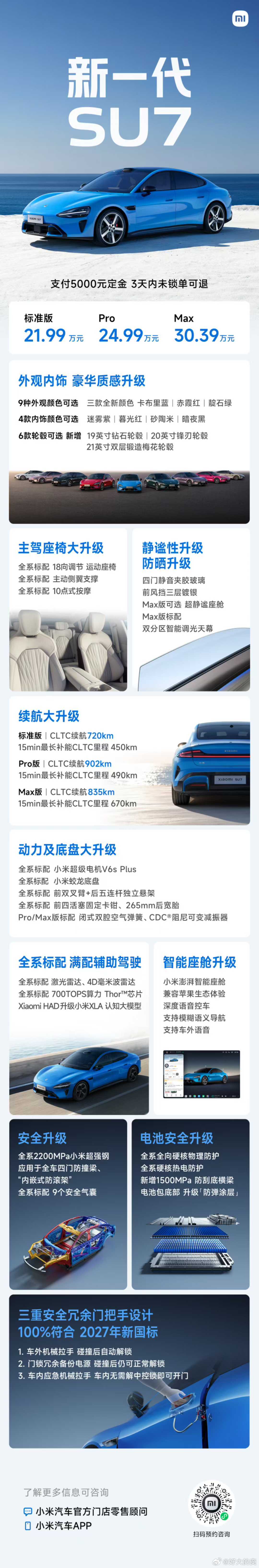 新一代SU7售价21.99万起