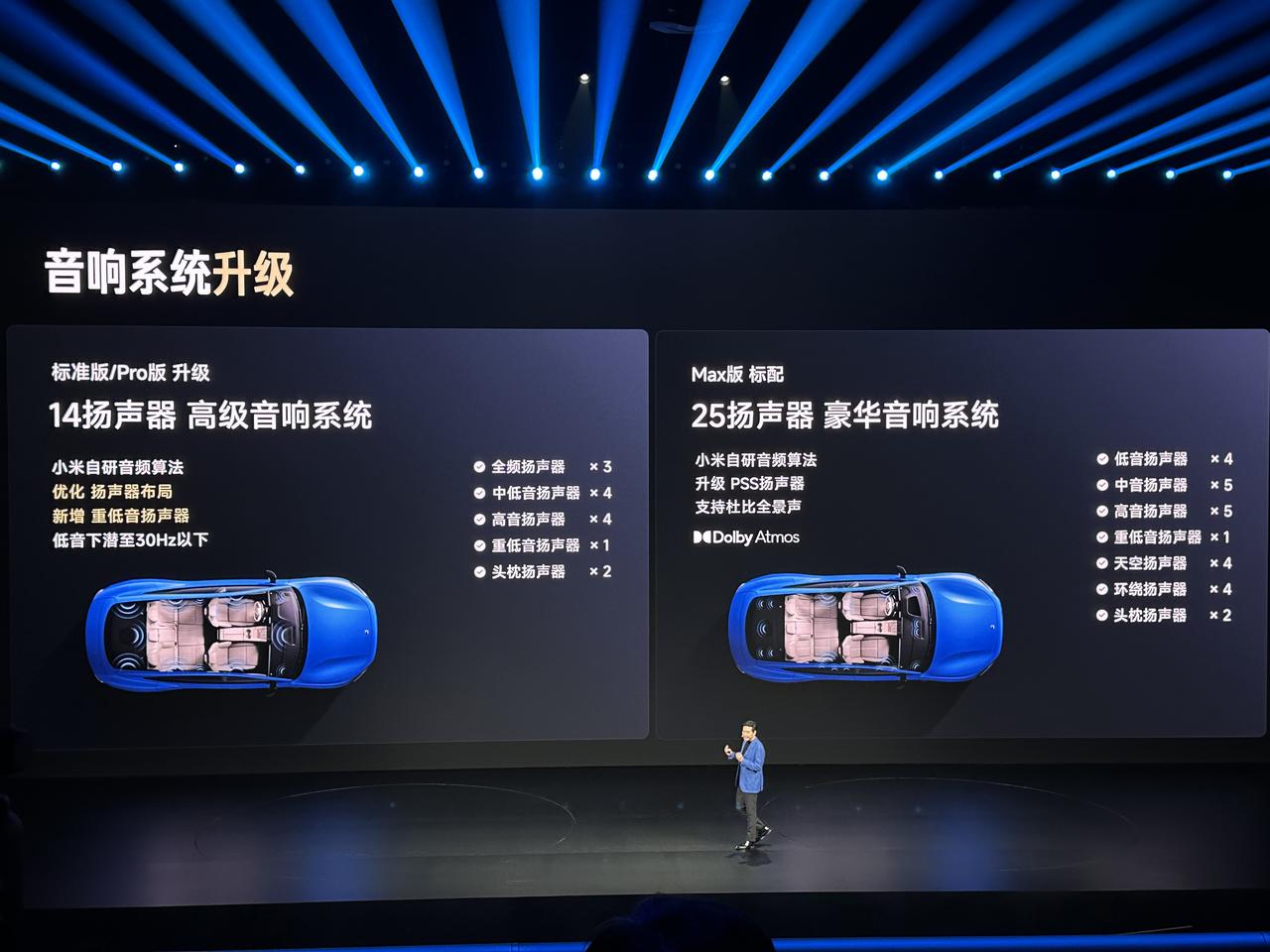 新一代SU7内饰重新设计,这配置单看得我直呼内行😱 先说最实用的:车载冰箱升级独立压缩机!-6~15℃制冷,35~50℃制热,4.4L容量能塞6罐可乐。 以后夏天跑长途,冰可乐管够;冬天带娃出门,热奶随时有[狗头] 另外,座椅升级也太狠了: 主驾全系标配18向可调运动座椅,带按摩+主动侧翼支撑——激烈驾驶时两侧会自动夹紧,过弯稳如老狗 副驾配零重力座椅,通风加热按摩全安排 后排躺倒角度提升到121°,配舒适睡眠头枕,午休神器 音响也有大动作:标准/Pro版升级14扬声器,重低音可下潜至30Hz以下;Max版直接上25扬声器豪华音响,支持杜比全景声。 这内饰配置,你觉得能打几分?