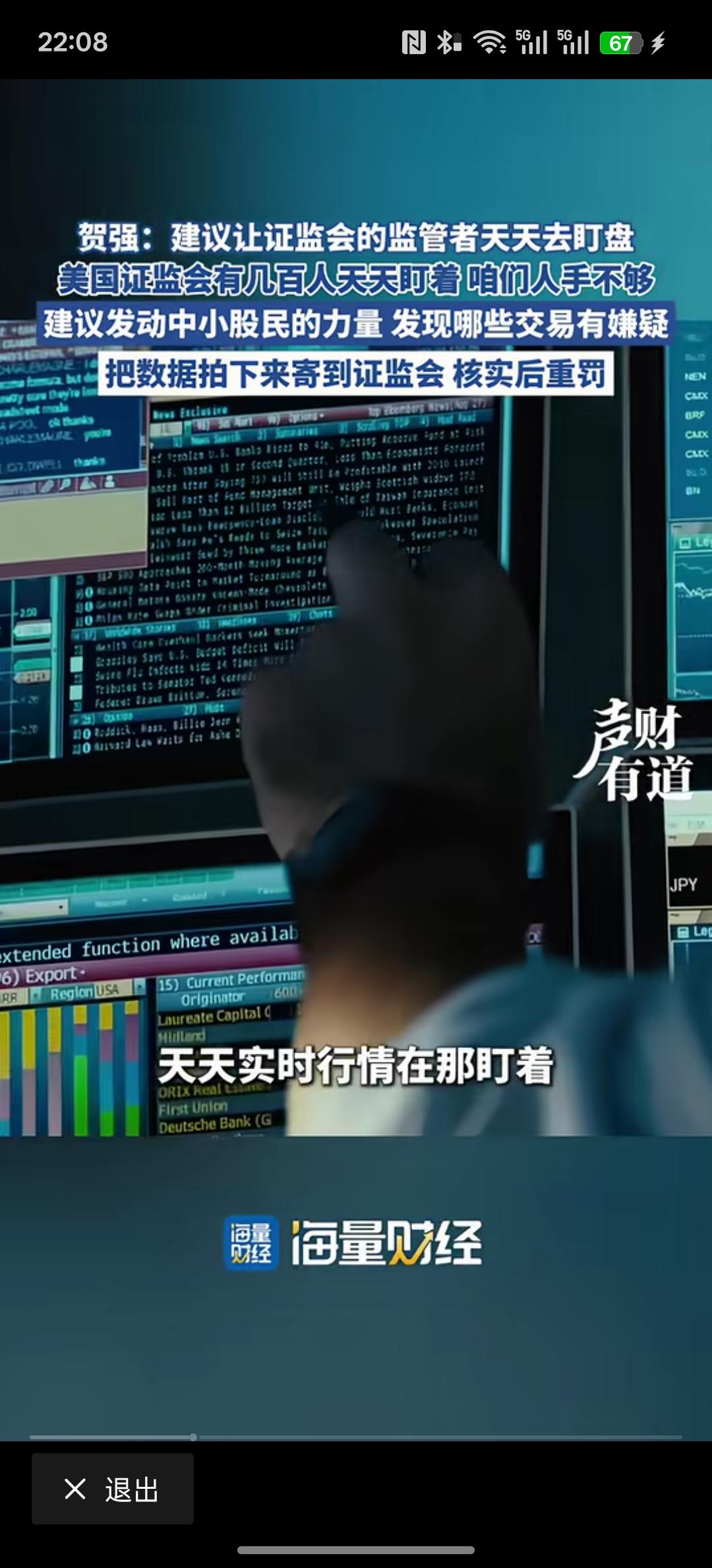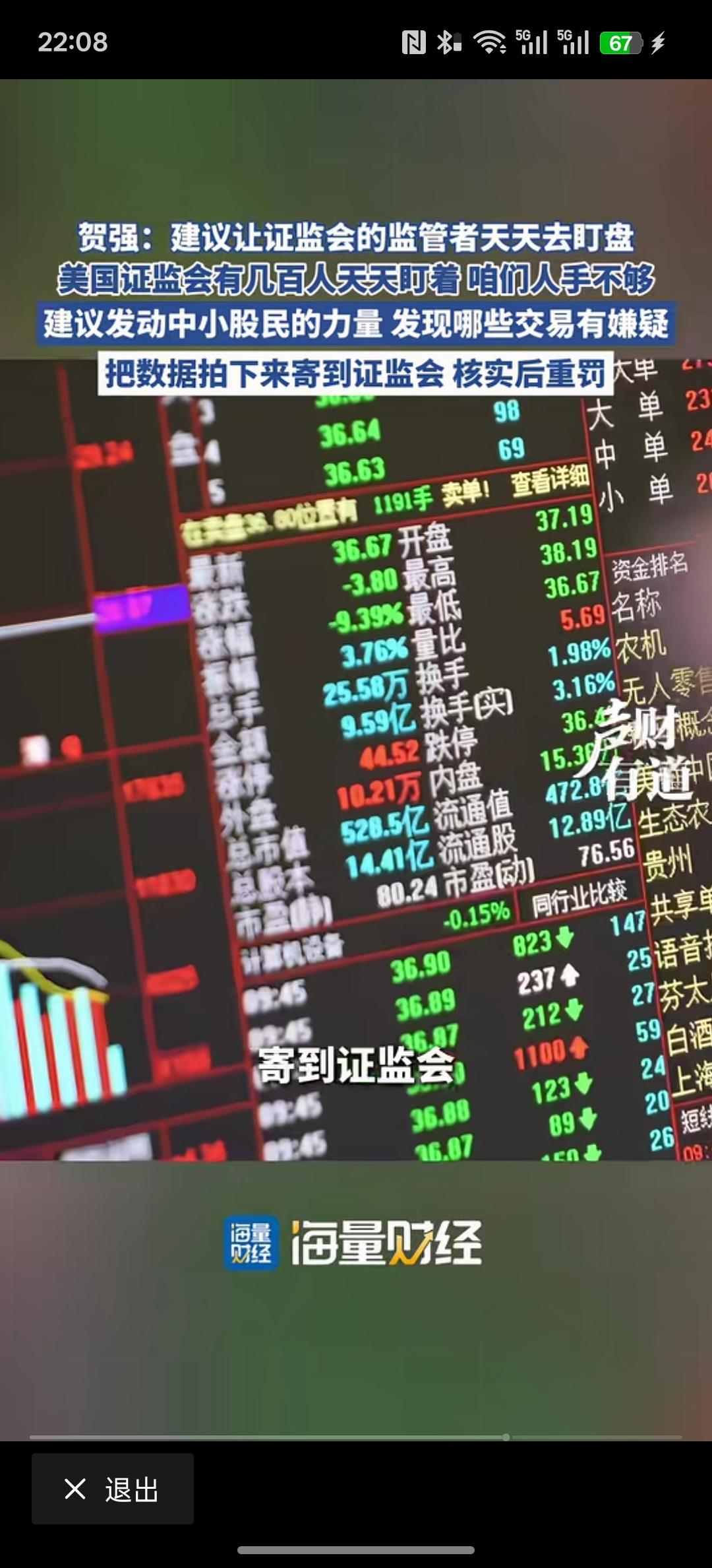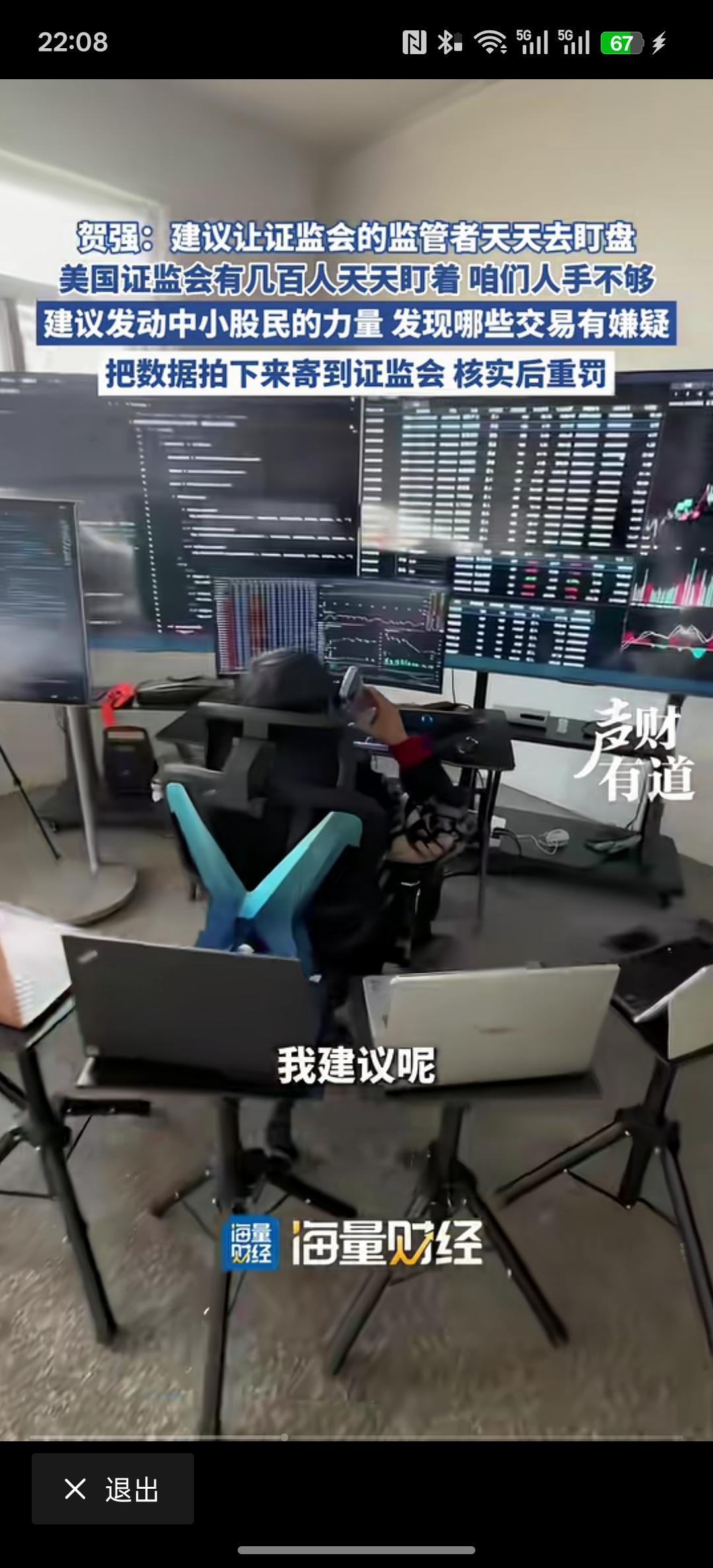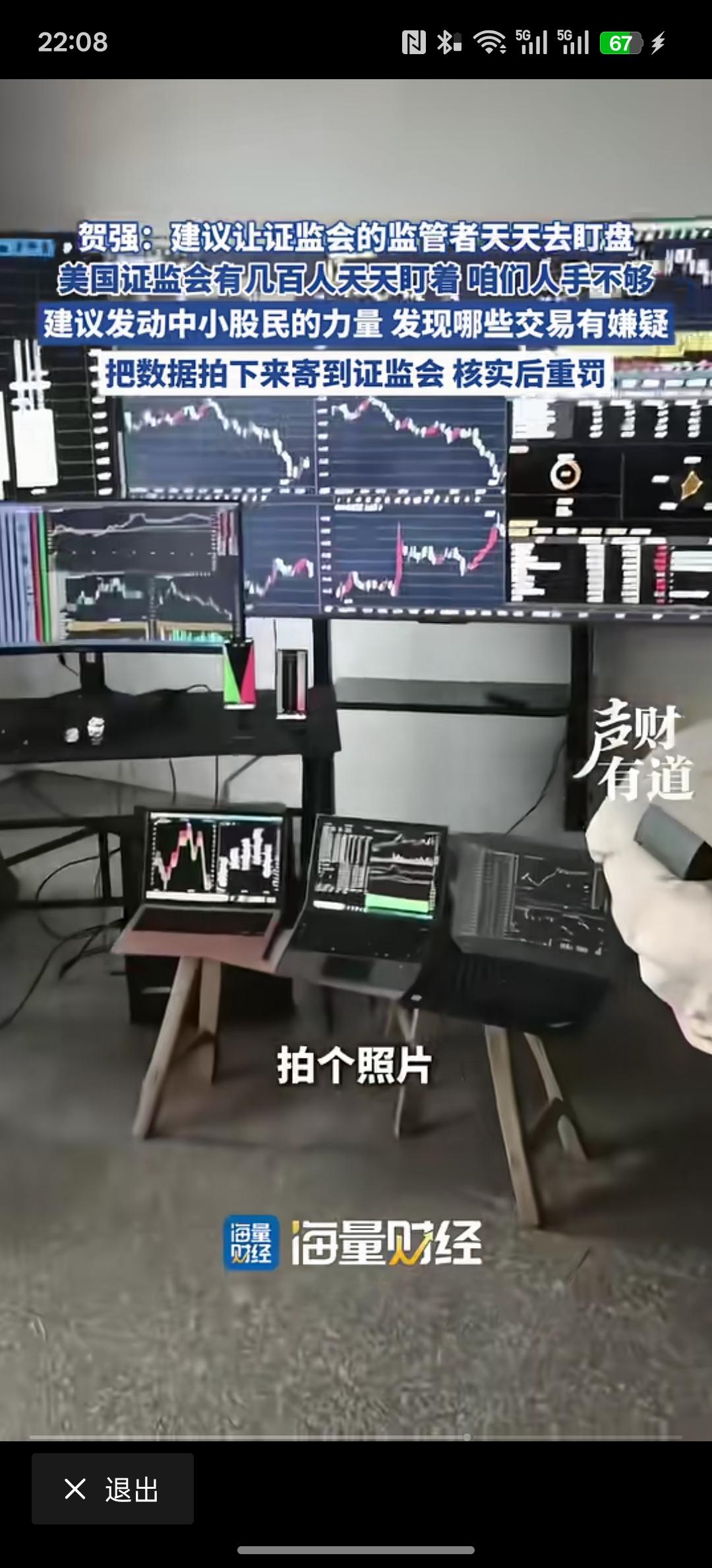 我觉得这个办法好,把证监会的人叫去天天盯盘,如果编制不够发动这些中小股民,发现可疑股票的数据拍照直接利用证监会的专用通道给他把数据发过去举报!人人都可以盯着这些人,我们的市场很多的,不会更加规范那些想割韭菜的,自然就不敢随意乱来! 一但发现这些违规现象,就必须重罚,一会跌停一会涨停的就是有问题!尤其是那些业绩又差,年年亏损的上市公司,股价却涨上天,这种就是有问题!