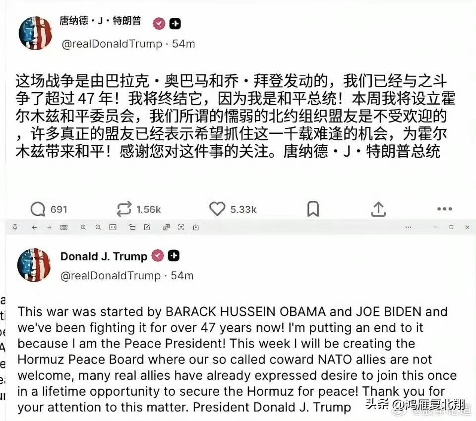 特朗普表示打伊朗的战争是拜登发动的 这波拜登真是人在病床躺,锅从天上来,正在对抗癌症呢,拜登应该也没有想到都这样了,居然特朗普还能给他甩锅。 另外特朗普顺便骂了北约,他非常不满意北约没有一起出兵攻打伊朗,甚至法国、德国都有单独和伊朗谈判的想法,让特朗普感觉到了背刺
