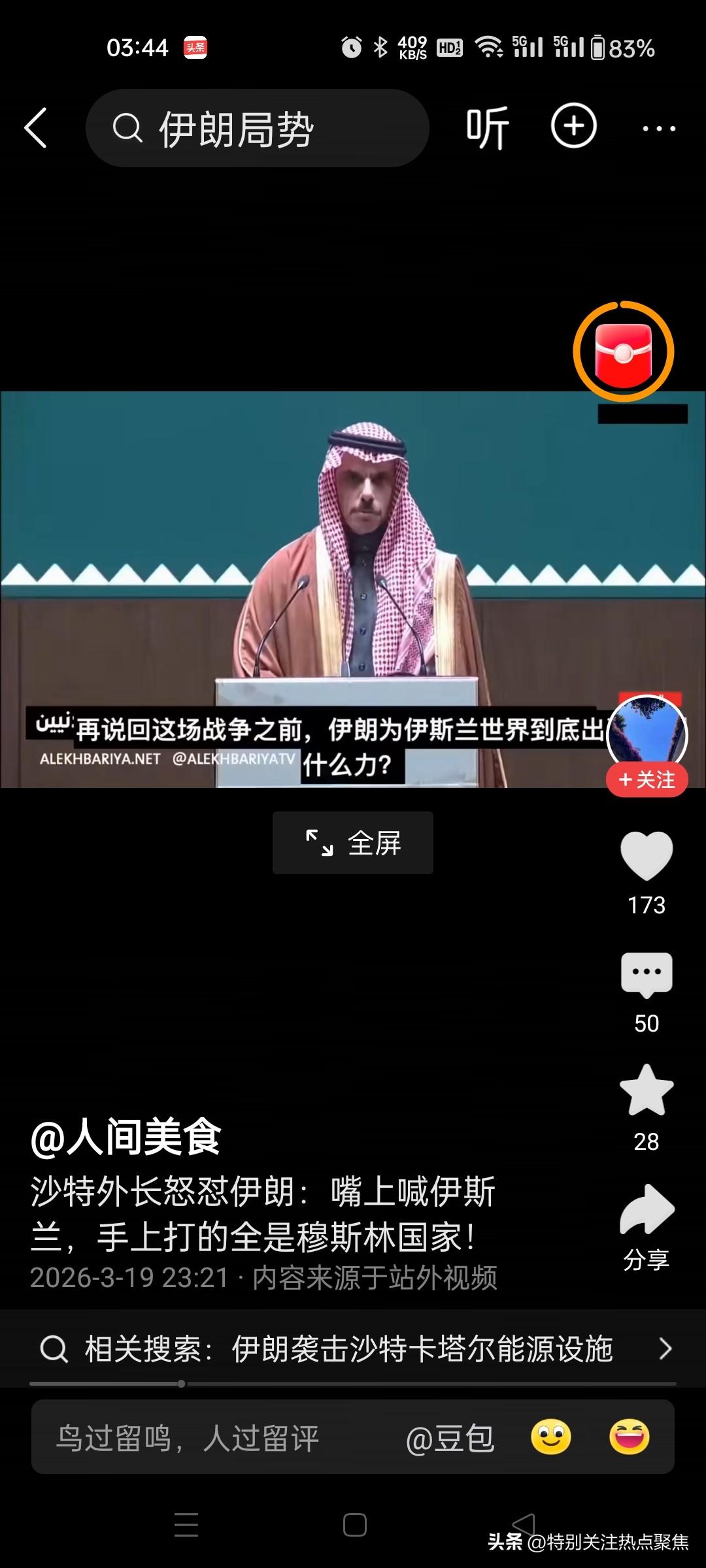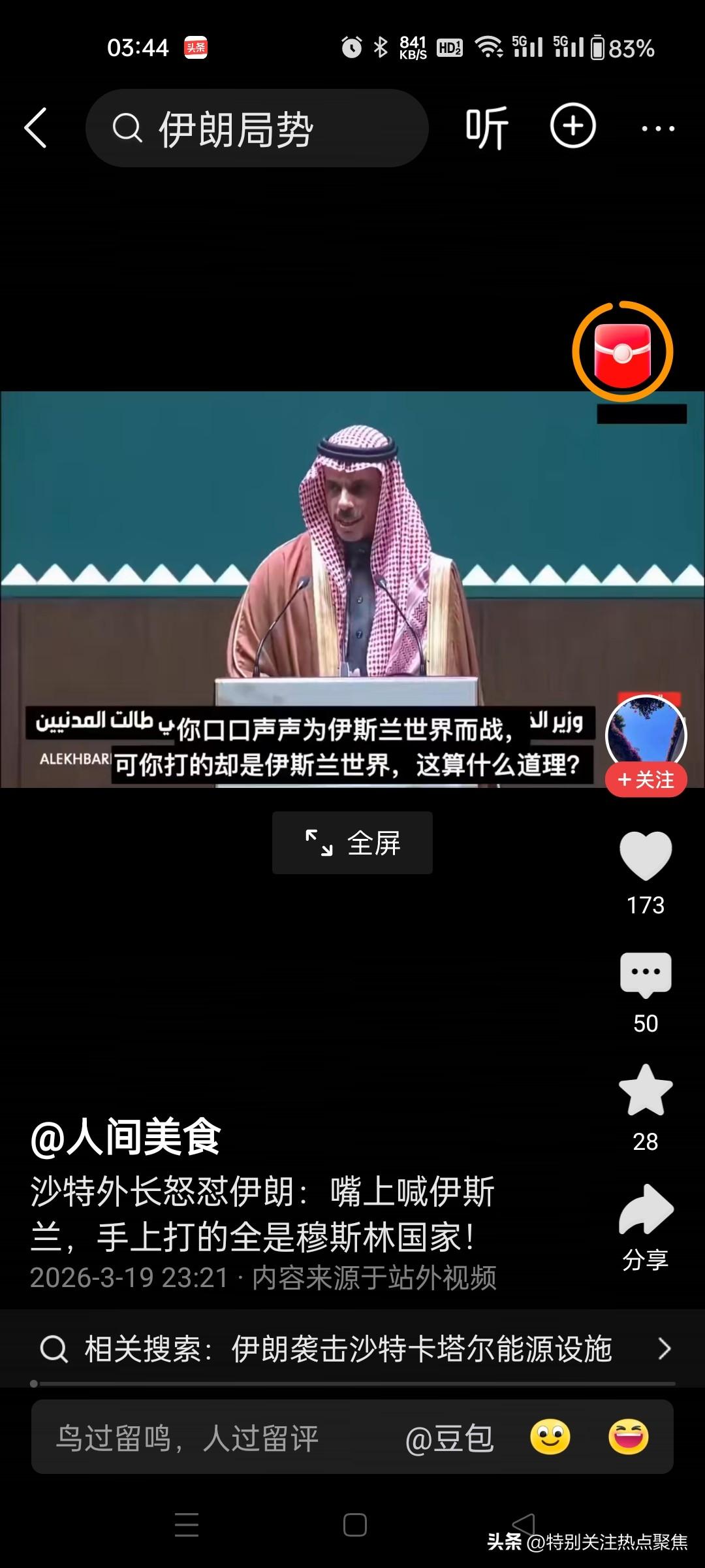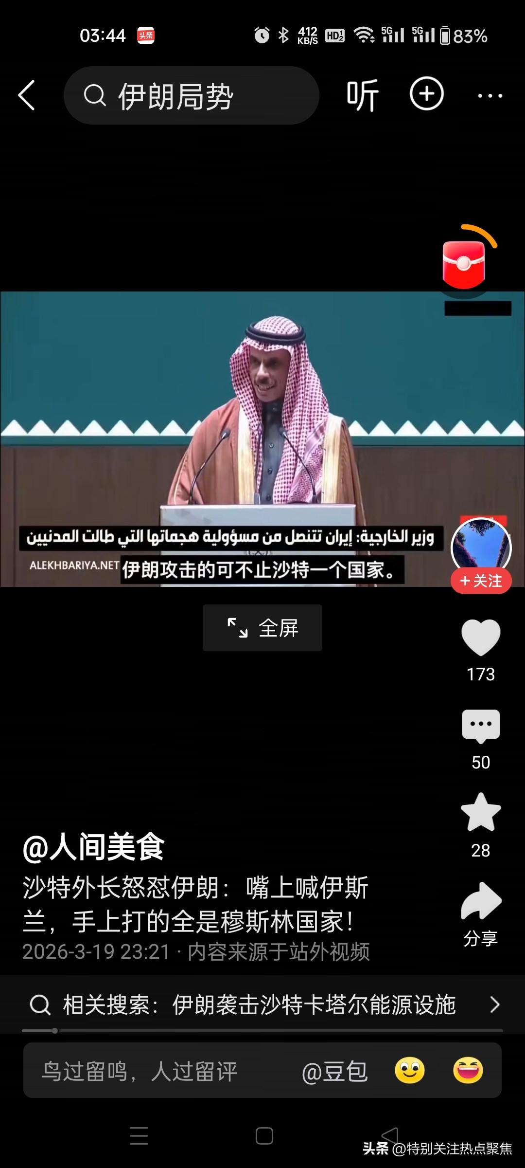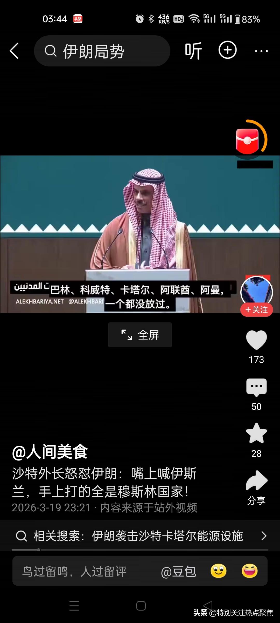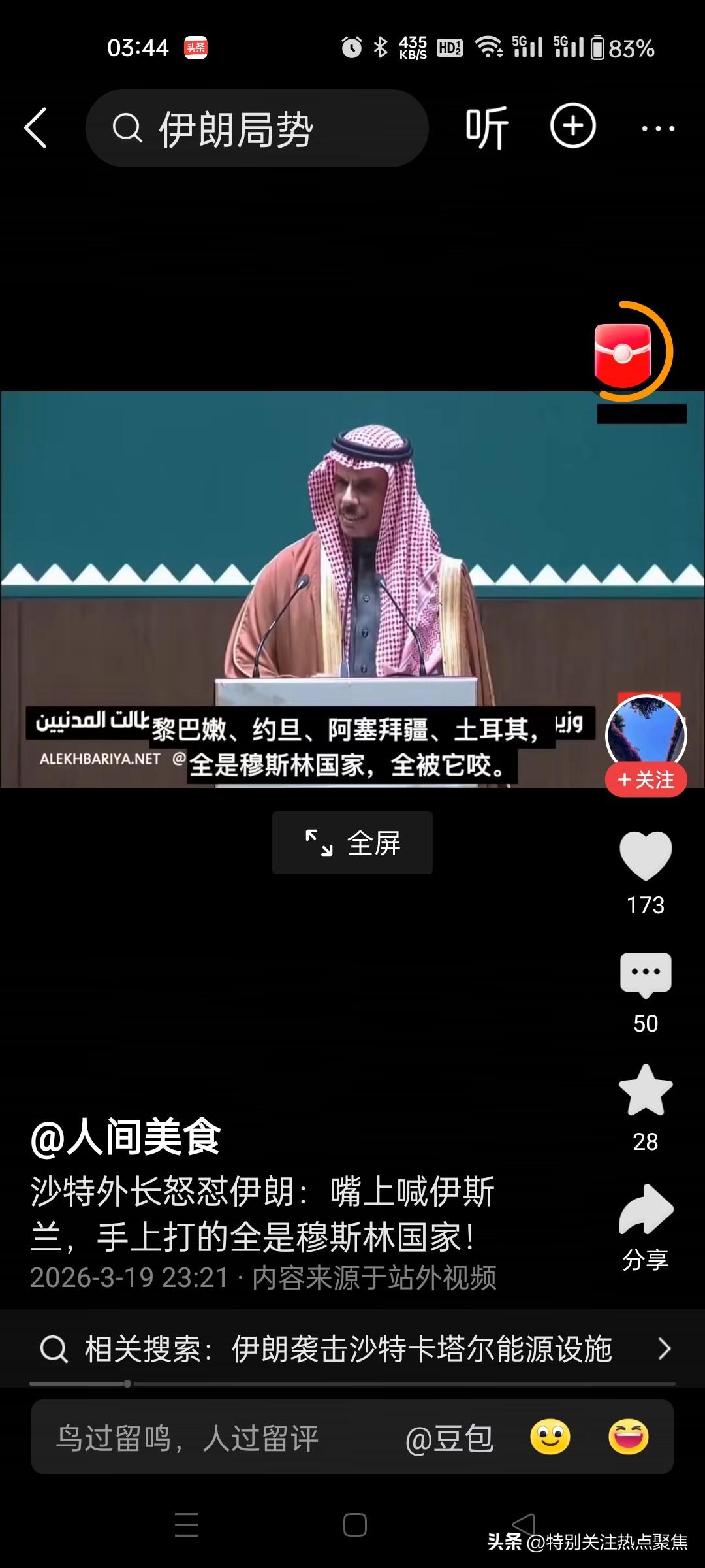 沙特强烈谴责伊朗袭击穆斯林国家 沙特与伊朗近期关系因军事冲突急剧恶化,双方互相指责对方破坏地区安全及伊斯兰国家间的团结。 沙特强烈谴责伊朗袭击穆斯林国家:2026 年 3 月 19 日,沙特外交大臣费萨尔在新闻发布会上指出,伊朗在海湾国家和伊斯兰国家外交官齐聚利雅得开会期间袭击沙特首都,绝非偶然,并明确表示沙特保留采取军事行动回应的权利。此前,沙特外交部已多次以最强烈的措辞谴责伊朗对沙特、阿联酋、巴林、科威特等“兄弟国家”的公然侵略,称其行为违反国际法且无法辩解,并召见伊朗大使表达不满。 伊朗指控沙特勾结外部势力并警告打击:伊朗方面认为局势升级的责任在于美国和以色列,并警告地区国家不得协助侵略。伊朗外长曾紧急致电沙特等六国外长,强调若任何国家允许美以利用其领土或领空攻击伊朗,将被视为“合法打击目标”。尽管伊朗外长阿拉格齐在 3 月初曾表示沙特承诺不让其领土被用于攻击伊朗,但随后伊朗对包括沙特在内的多国发动了导弹和无人机袭击,导致双方外交努力破裂。 关于“拱火”与立场的争议:有媒体报道称沙特王储私下游说美国对伊朗动武,但沙特官方对此予以否认,重申支持通过外交途径解决争端。然而,沙特也警告伊朗,若对其能源设施或领土的攻击持续,沙特可能被迫允许美军使用其基地进行反击。
