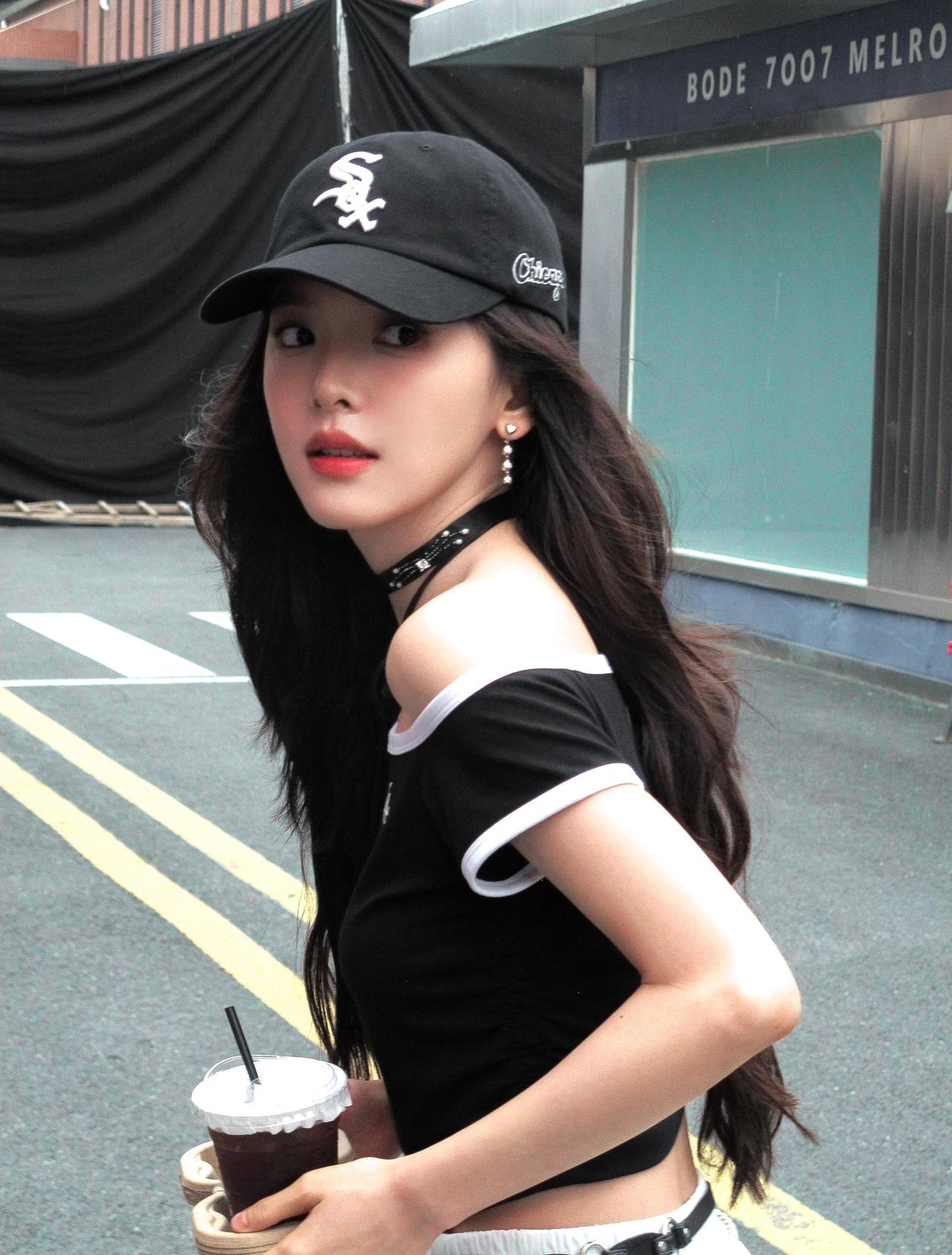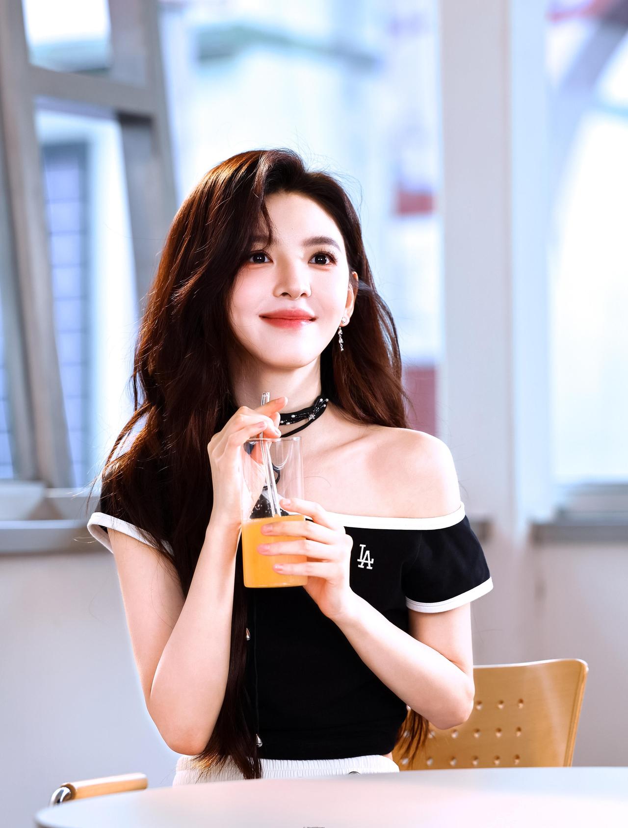 刘亦菲这条裤子挺养生,毕竟降温了肚脐眼必须护住啊