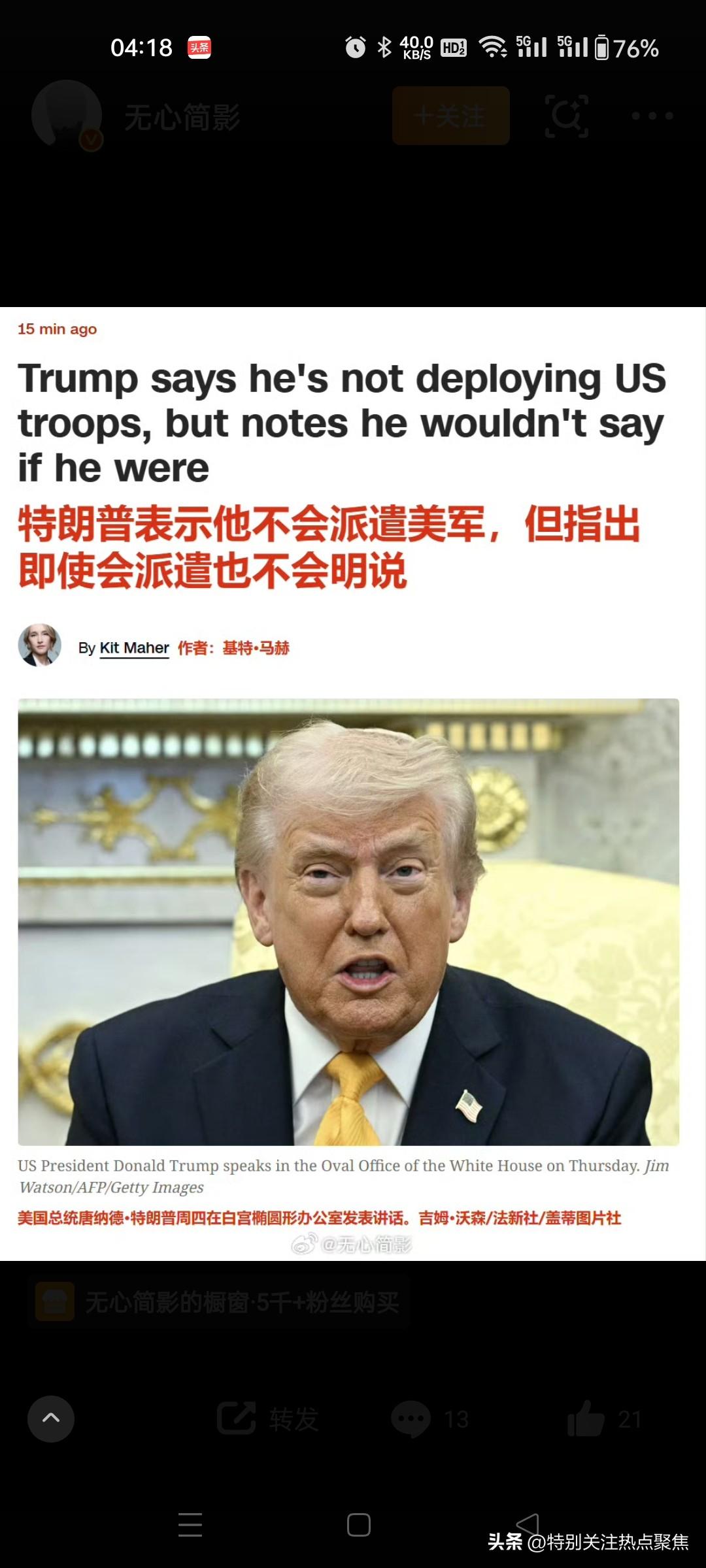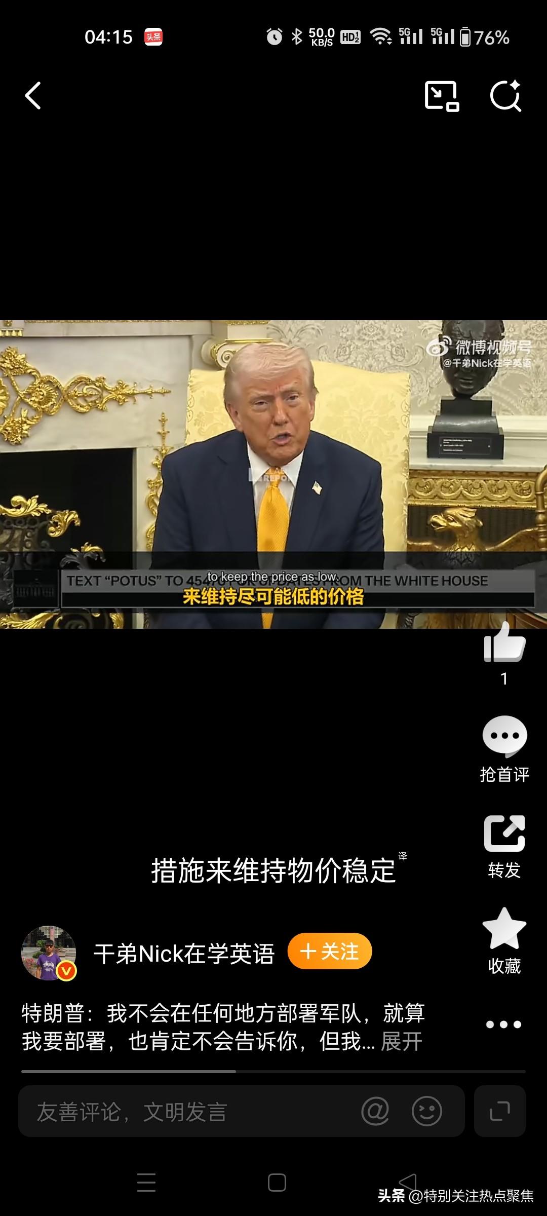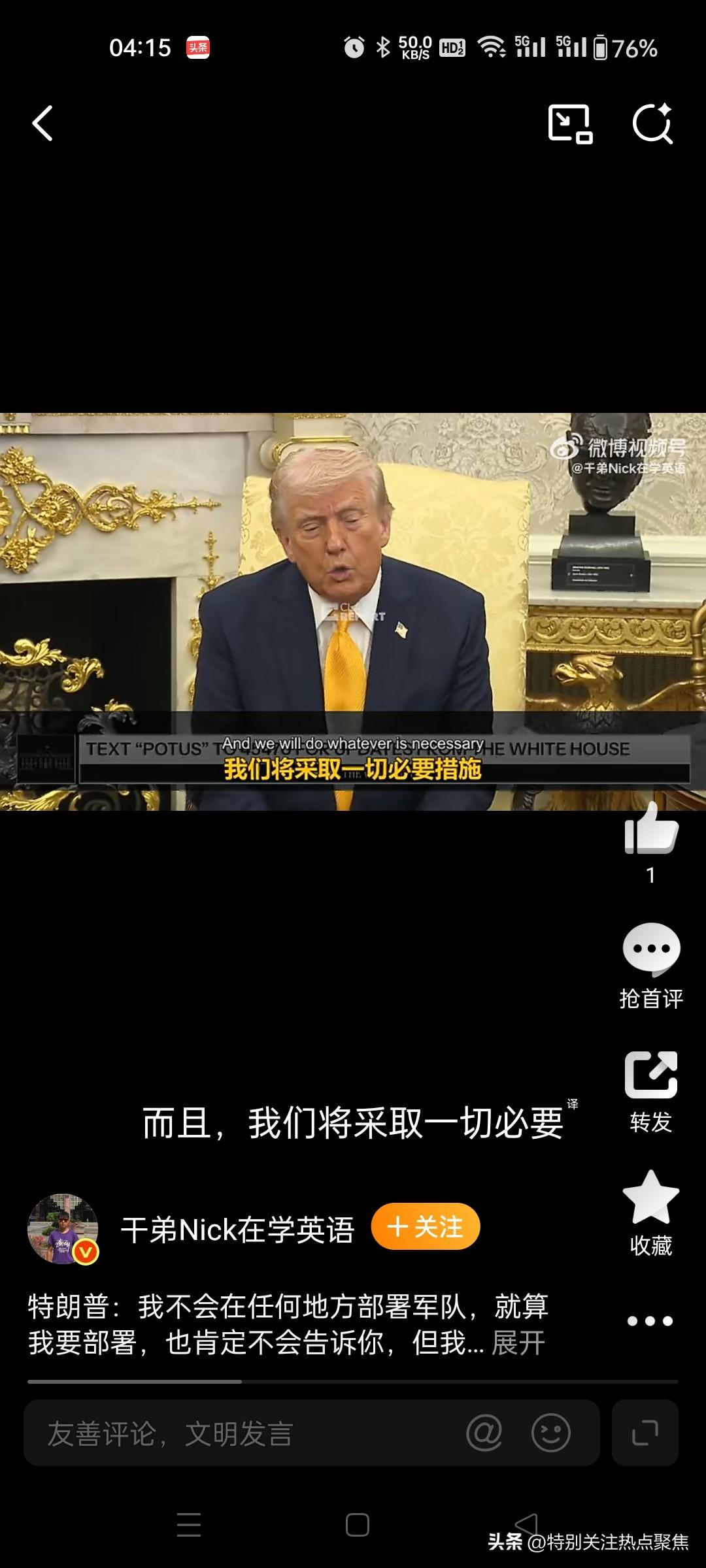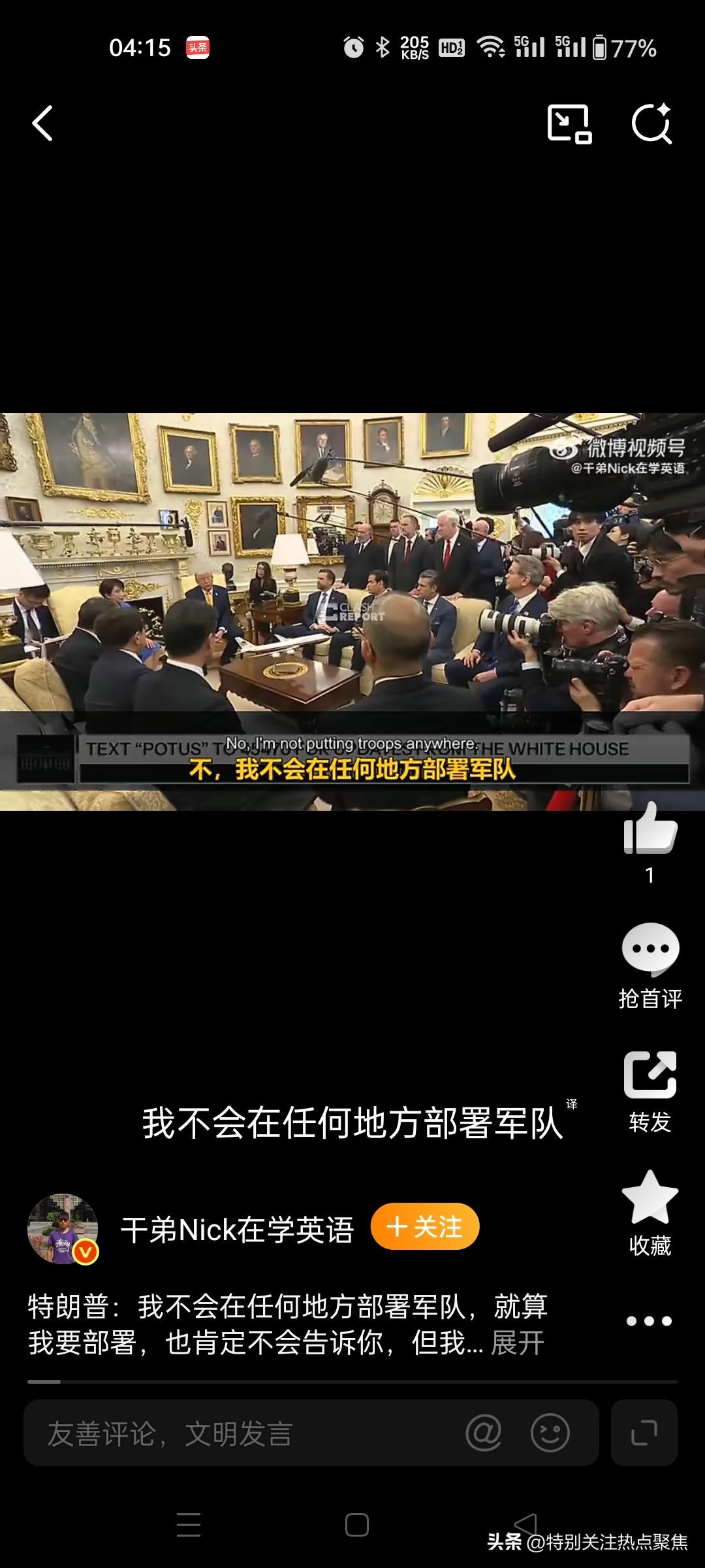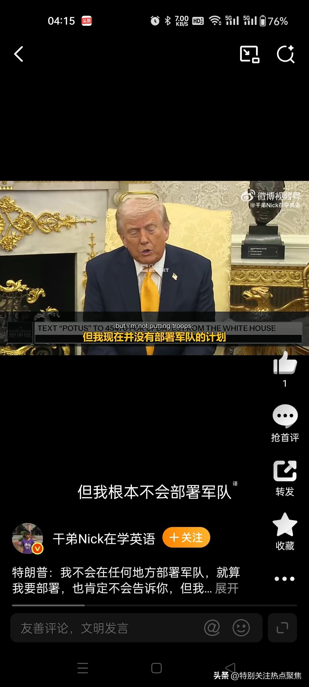 特朗普关于向中东派兵的表态核心是“战略模糊”:特朗普表示他不会派遣美军,但指出即使会派遣也不会告诉你们。 他公开否认当前有部署计划,但强调若真行动绝不会提前透露。 直接回应与逻辑:面对记者关于是否向中东派遣地面部队的追问,特朗普明确表示:“我不会向任何地方部署军队。如果我真要这么做,我肯定不会告诉你们。但我没有在部署军队。”他拒绝回答此类假设性问题,认为公开讨论军事部署不符合战略利益 。5616 态度转变与背景:相较于早些时候(3 月中旬)记者提及他曾称“远未到派遣地面部队地步”时,特朗普当时采取回避态度,反问“我为什么要告诉你?”并拒绝与记者谈论此事 ;到了 3 月 20 日,他给出了更直接的否定回答,但仍保留了“若行动必保密”的逻辑闭环。1910 实际军事动态:尽管总统口头否认大规模地面部队部署,但多方报道显示美军正在加强中东存在。五角大楼已决定向中东派遣第 31 海军陆战队远征部队(约 2200 人),预计需两周时间抵达,主要用于海上枢纽运作或沿海突袭,而非全面地面入侵 。此外,至少 5 架 E-2D 预警机已抵达中转站,且政府正考虑部署数千名士兵以加强行动,包括保护霍尔木兹海峡航道 。2311 官方立场差异:白宫官员对此表述较为谨慎,称“目前尚未决定派遣地面部队”,但重申总统保留所有选项;而有媒体援引消息人士称,特朗普私下对派遣小规模特遣队执行特定战略目标表现出“浓厚兴趣”,不过白宫新闻秘书驳斥了相关大规模地面作战的传闻 。5819