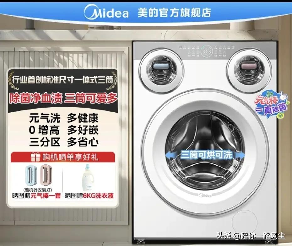 听我一句劝,洗衣机六买六不买: 1. 买大容量,不买小容量。 2. 买变频电机,不买定频。 3. 买除菌除螨,不买基础款。 4. 买一级能效,不买低能效。 5. 买筒自洁抗菌,不买无清洁功能。 6. 买美的品牌售后无忧,不买杂牌机! 美的可爱多洗衣机,简直是我的“家务超人”,它干起活来特别有意思,像个有强迫症的智能管家。 我是一名土生土长的四川人,每到三四月份的回南天,简直就是大型“翻车现场”,阳台上永远挂满了3个宝宝的“万国旗”。 不仅墙壁在“流汗”,踩在地板上还像在“溜冰”,最绝望的还是,衣服晾十来天还是潮乎乎的,孩子们一穿上就痒得起红疹。 直到我找来了“大救星”——美的可爱多洗衣机,如同我的“三头六臂”,完全没有想到,会把鸡飞狗跳的日子,过成了一首诗。 最令人开心的是,连向来挑三拣四的老公,都忍不住夸我会过日子。 以前我最头疼洗衣服,大人的、孩子的、内衣和袜子,至少要分成三批洗,常常把我累得腰酸背痛、腿抽筋。 现在省事了,美的可爱多自带三大功能,帮我解决了这一大难题。 第一大功能: 三个筒各洗各的 美的可爱多的肚子里,居然藏着三个独立的洗衣筒! 大衣服扔大筒,内衣和袜子各有专属的“单间”,水路完全分开,再也不用担心老公袜子上的味道,跑到我的睡衣上。 以前要分三次洗的衣服,现在一次全搞定,省水省电还省心,治愈好了我的“小洁癖”。 第二大功能:烘得又快又软 最怕遇上回南天,阳台上的衣服晒上一星期,都还潮乎乎的,可爱多的42℃低温慢慢烘,像给衣服做了一层“日光浴”。 拿出来的时候暖暖的、松松软软的,还有阳光晒过的味道,婆婆说比自然晾的还舒服。 第三大功能:除菌是认真的 可爱多自带的除菌功能,像什么紫外线、银离子、专用洗涤棒一起上阵,专门对付那些看不见的细菌。 家有多胎孩子的,每天衣服都换得勤,有了它,再也不担心交叉感染,或者莫名其妙起红疹了。 自从有了美的可爱多,现在洗衣服变成了一件快乐的事,脏衣服扔进去后,拿出来就能直接穿,真的省心又省力! 这个任劳任怨的“田螺姑娘”,默默把全家人照顾得明明白白的,让宝妈们终于可以放心大胆,去追“肥皂剧”啦!