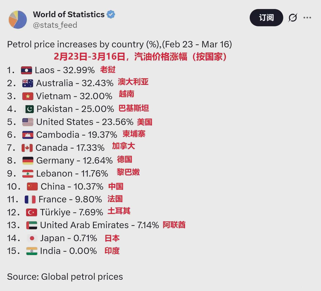精日分子又拿日本说事儿,在新一轮油价急速上涨之后,有人发帖,为什么日本的油价仅仅微涨了0.71%,而中国却大涨了10.37%? 关于油气涨价的原因,我们就不必多说了,假如美以联军不停止侵略伊朗的军事行动,油气价格势必还会跳涨,日本释放原油储备,是执政的自民党政府赌中东局势会如特朗普所说,持续时间不超过6周,而现在已经3周过去了。 同样是油气进口国,中国市场上的油气价格涨幅远远落后于国际油气价格,我们的石油来源多元化,些许涨幅还在居民可承受范围之内,我们没有释放大量的石油储备以平抑物价,更彰显大国的从容和自信。而日本这么做,不过是单纯的买好。 国内精日分子,要我们反思,无非就是带节奏,无非想说日本政府为老百姓着想,但若真是这样,自民党政府怎么没有把米价做下来?毕竟,大米价格与每个日本人息息相关,公共交通发达的日本,油气价格还不足以让日本恐慌。 至于说,日本有200天的石油应急储备,足以应对石油危机,我也是笑了,日本石油来源单一,如果不提高石油储备量,怕是总有一天会面对“存亡危机”。