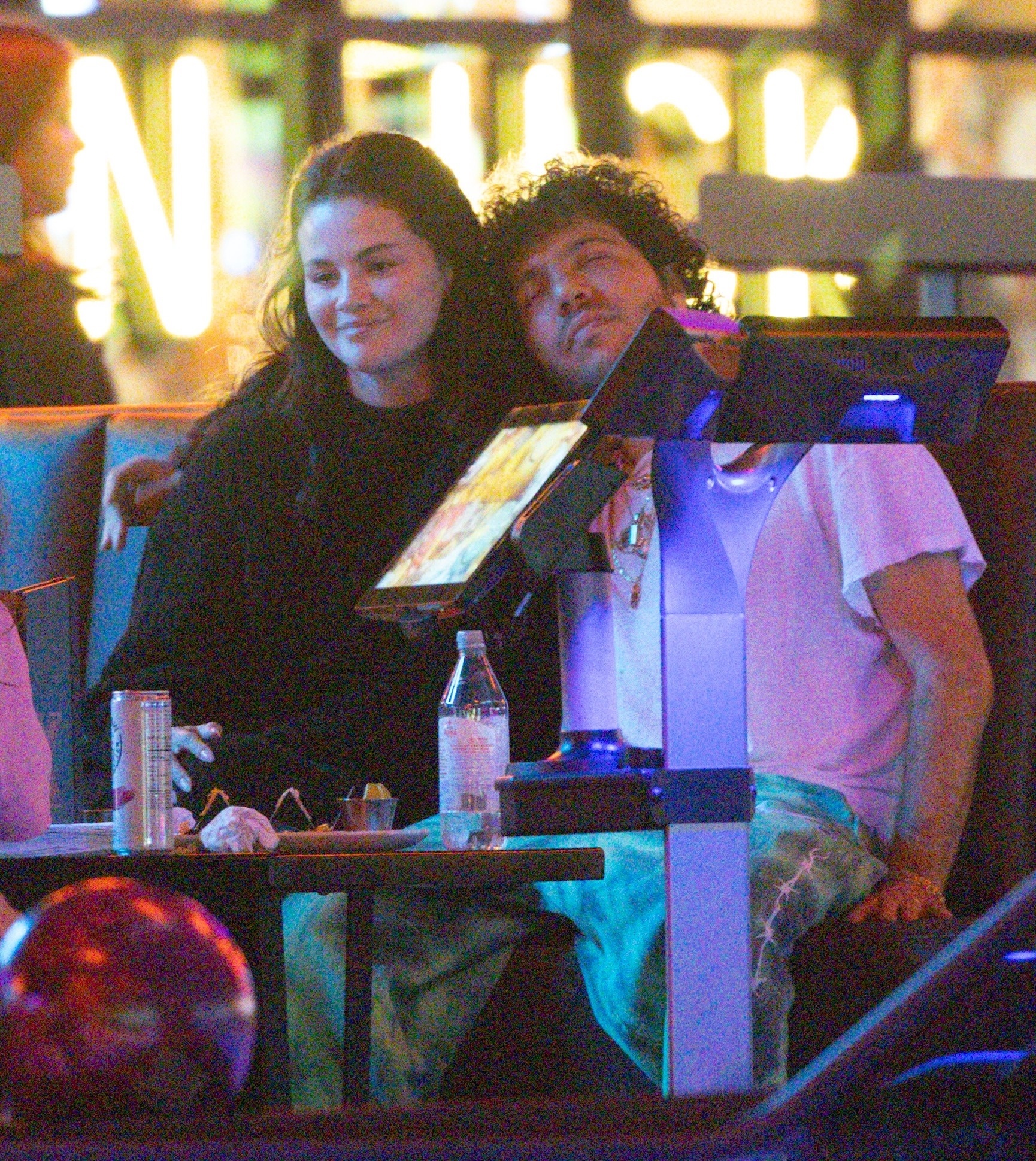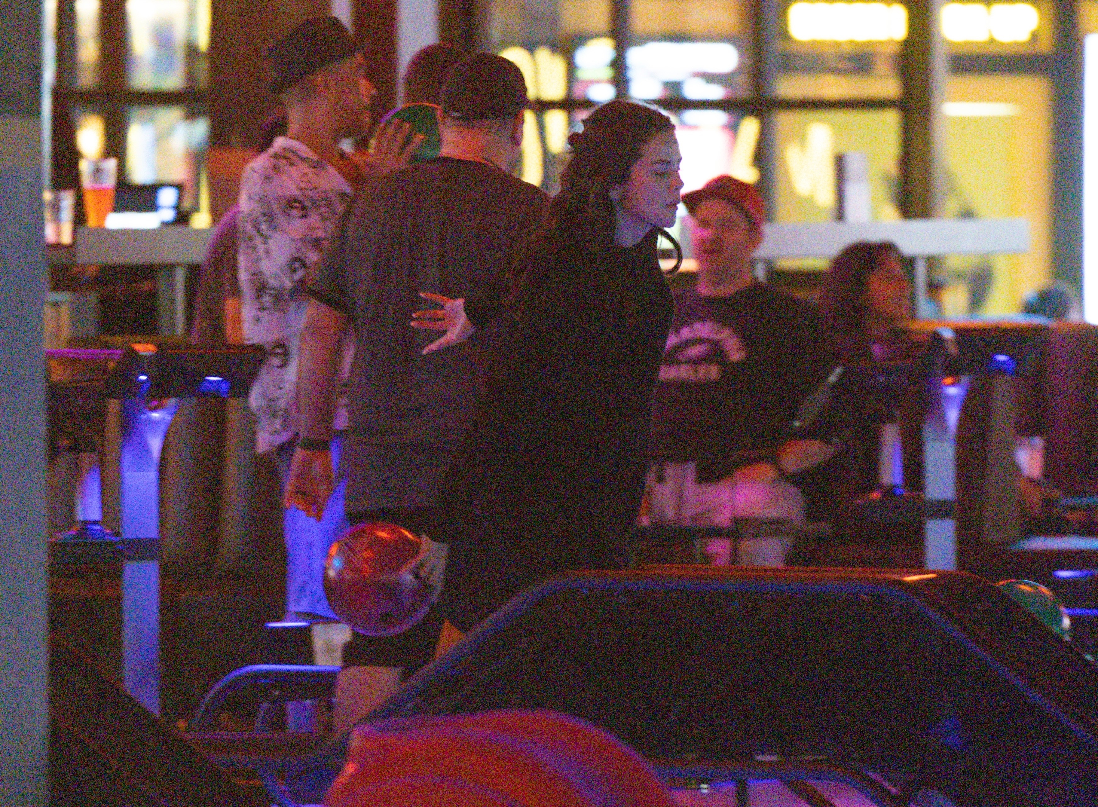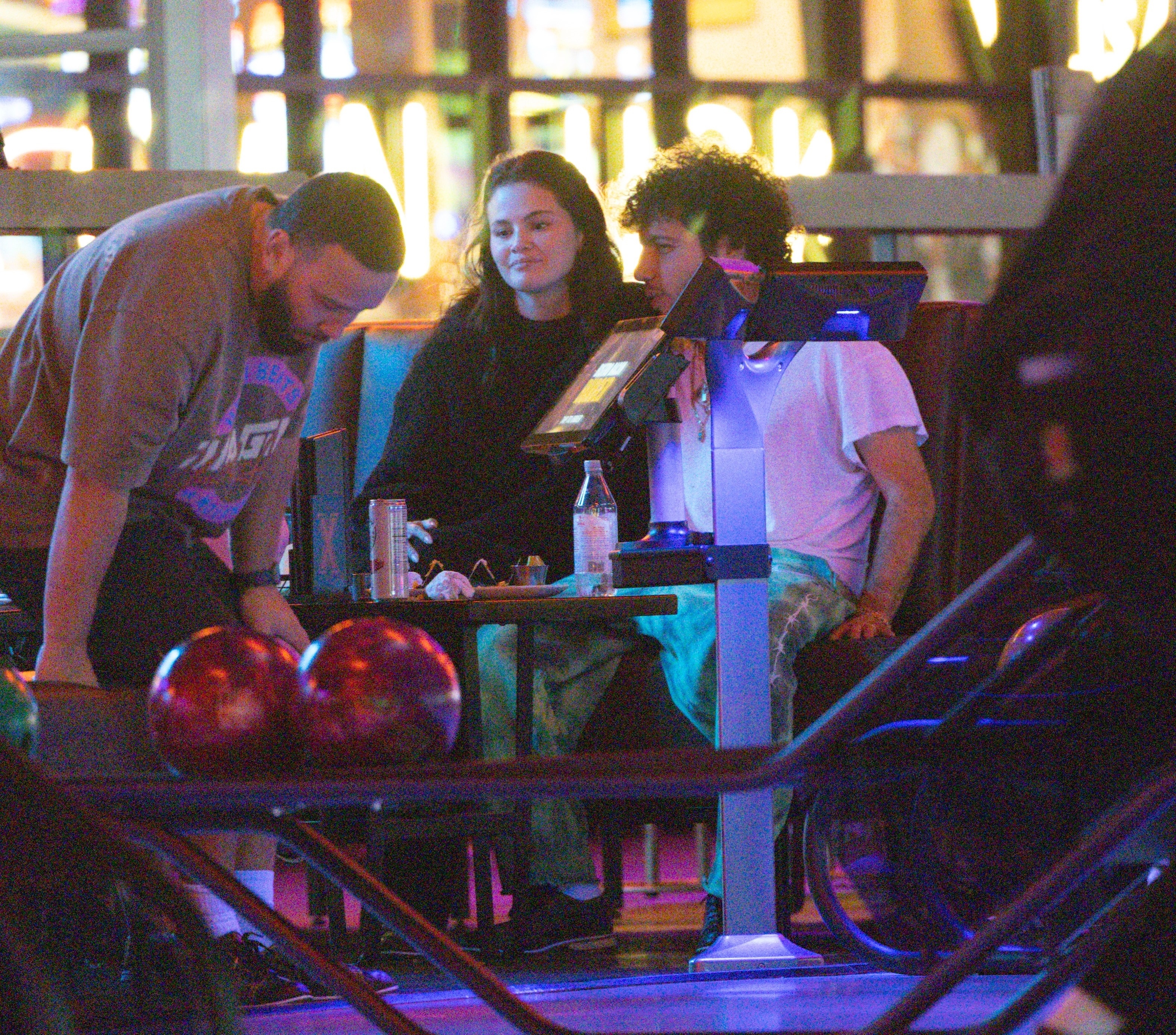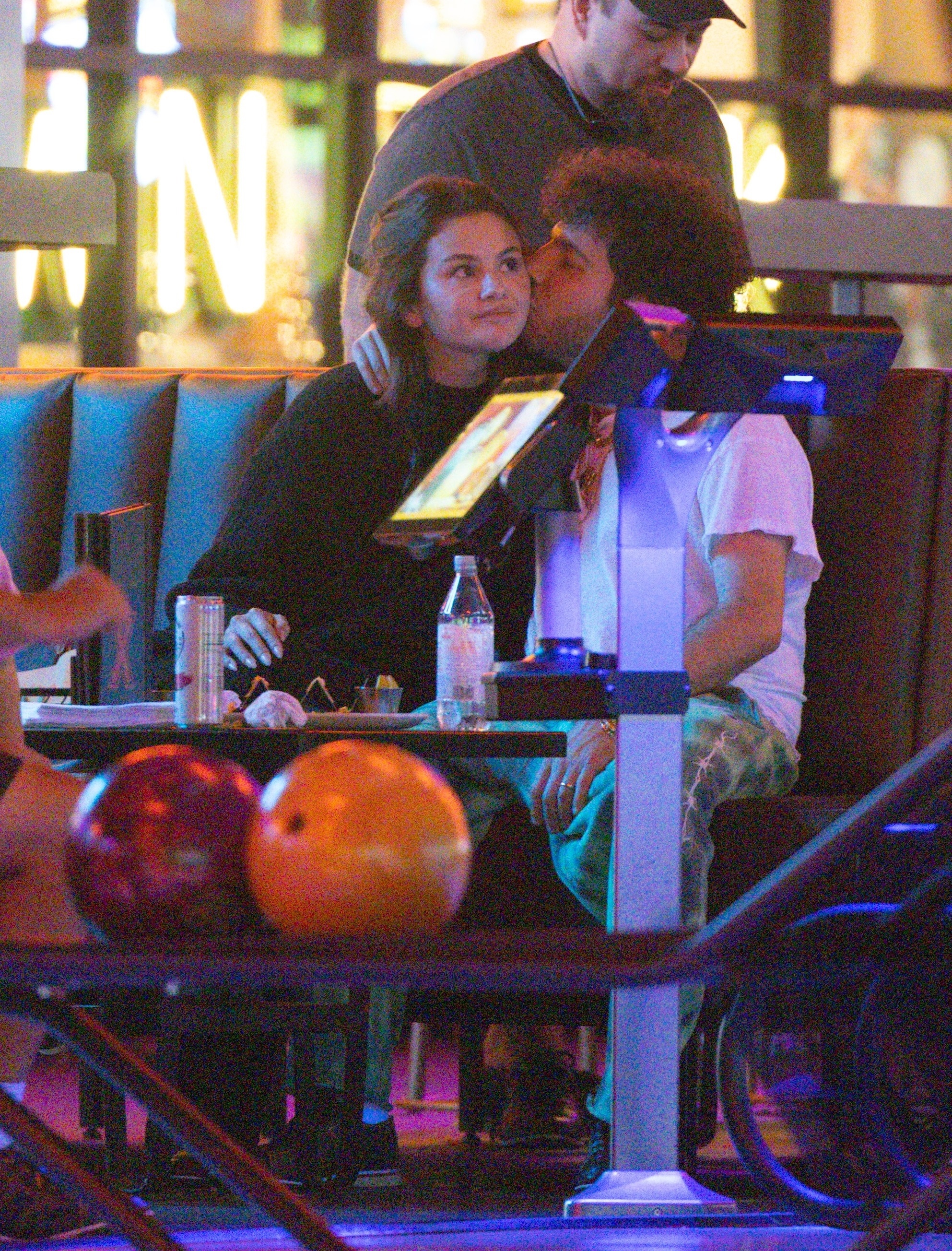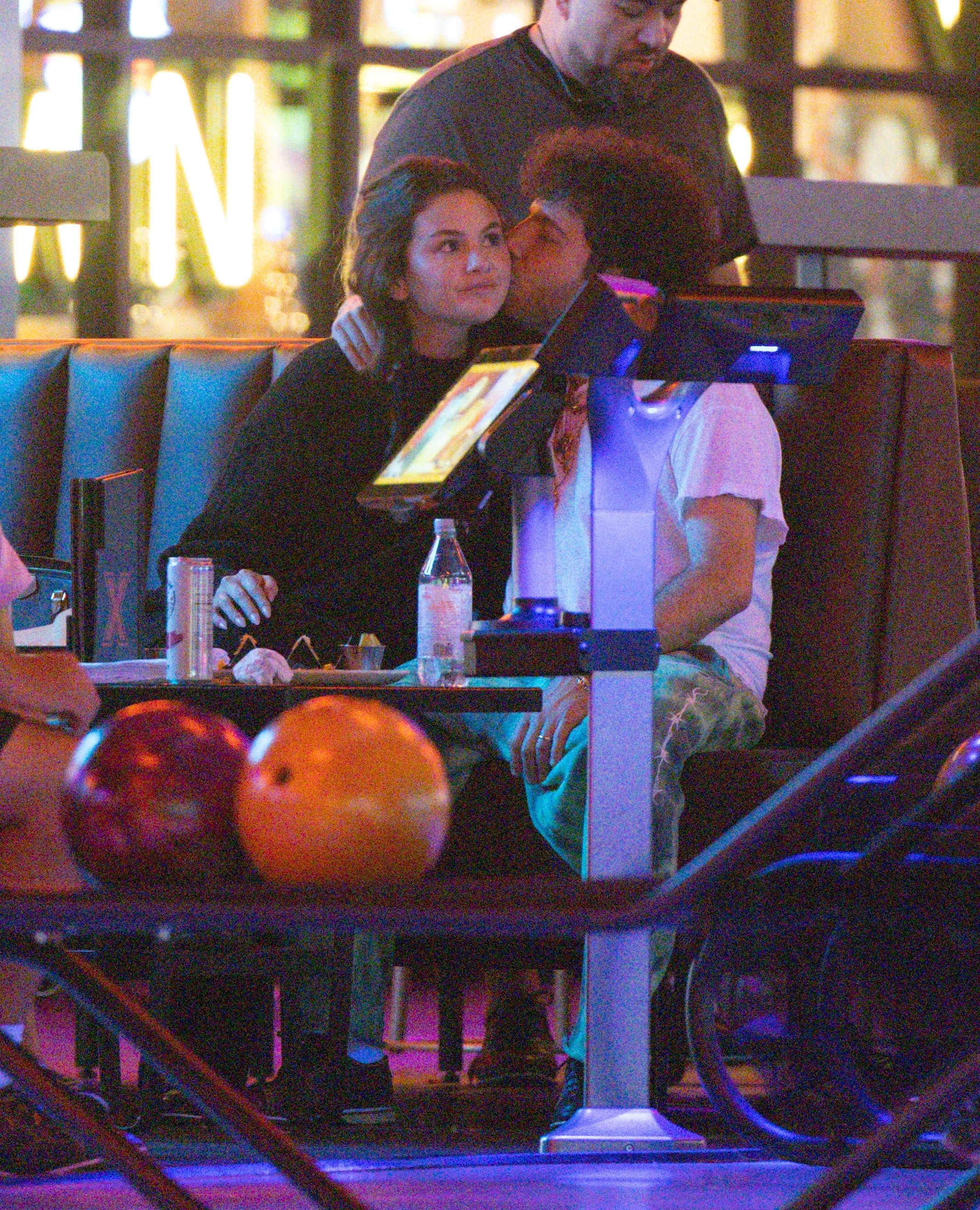 赛琳娜 Selena Gomez 和她的脏脚老公Benny Blanco在洛杉矶的保龄球馆和游戏厅约会,当众亲吻大秀恩爱。