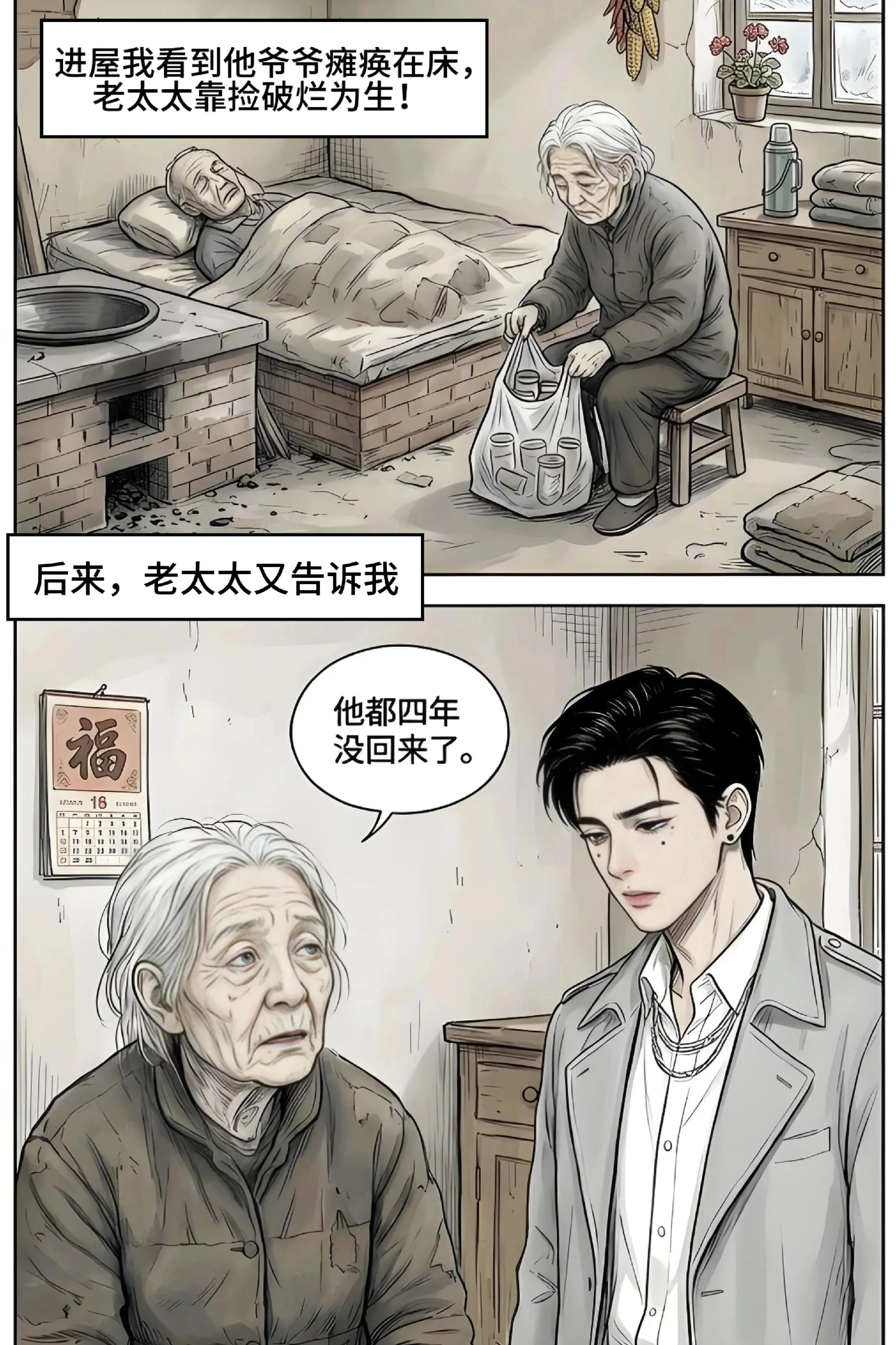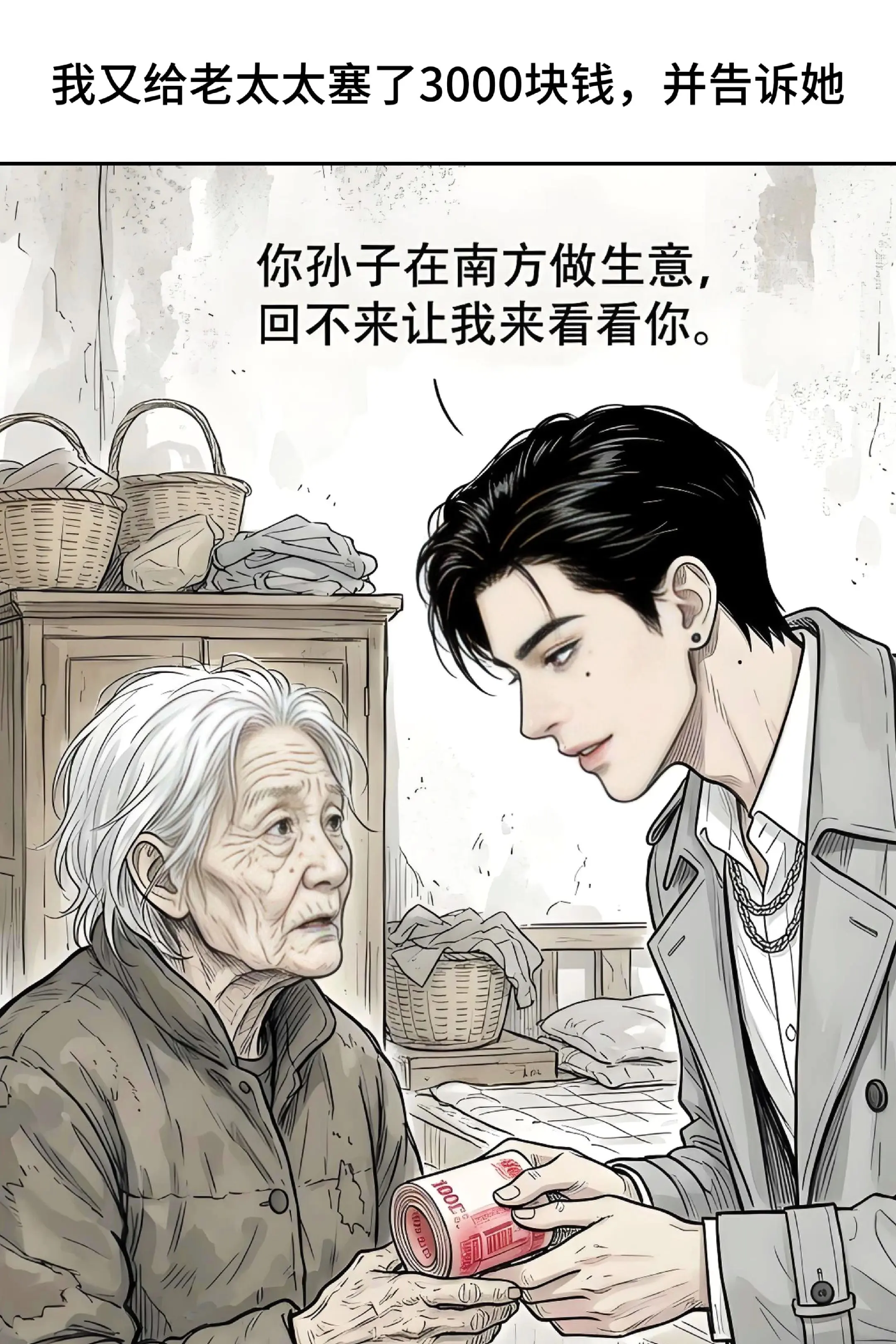 "妈妈再给你盖一次被子,像刚出生时一样."