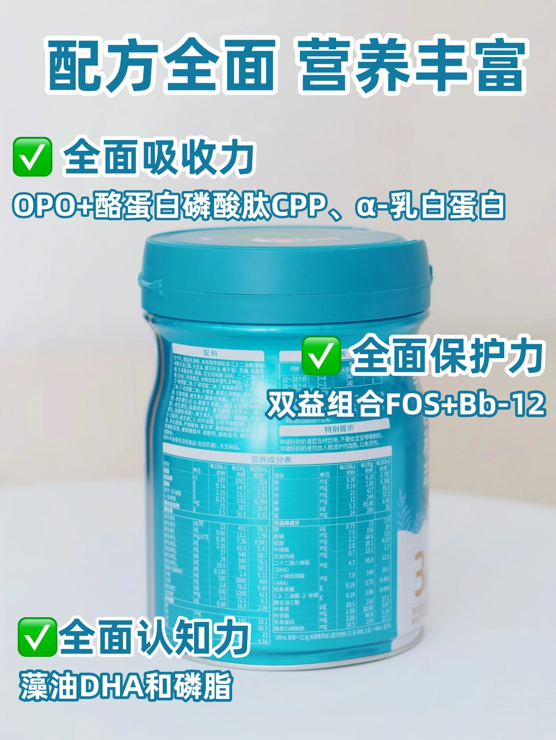 认知力方面亲蓓稚萃也一点不掉链子,里面添加了藻油DHA和磷脂,根本不用操心这方面~