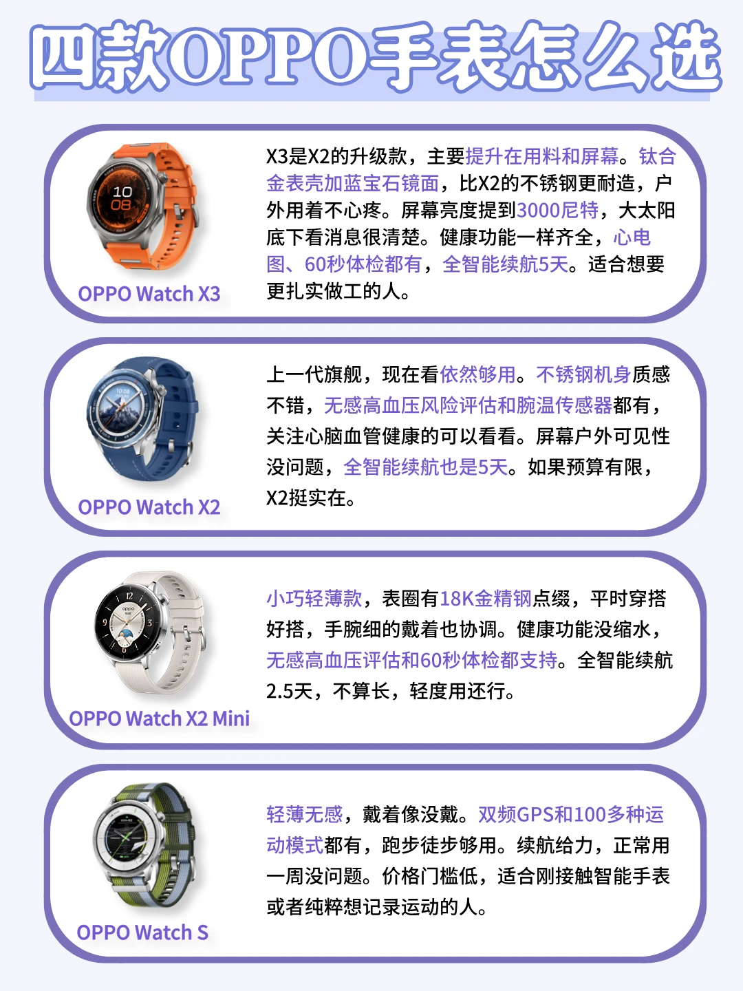 [派对R]今天来聊聊OPPO四款智能手表怎么选,今天整理了一下,大家可以参考看看~