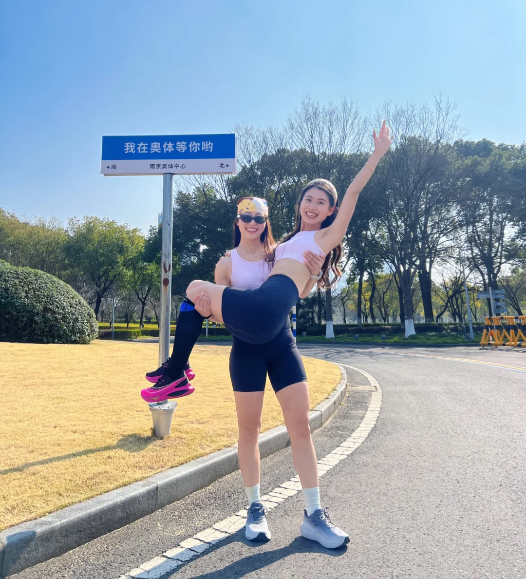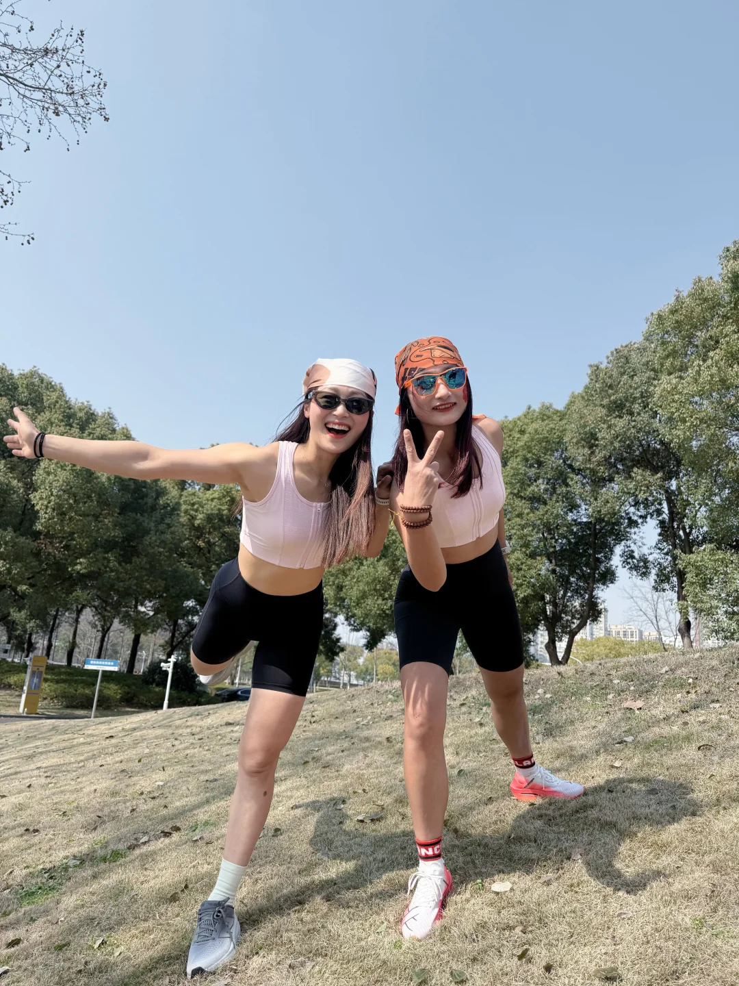 阳光☀️正好奥体开跑🏃♀️ 路牌下的公主抱,是女生之间最酷的托举💪🌟 粉色战衣➕蓝天绿树🌳,是属于我们的运动浪漫认识了好多漂亮姐妹,长得好看就算了[害羞R]跑的还快[赞R][赞R]
