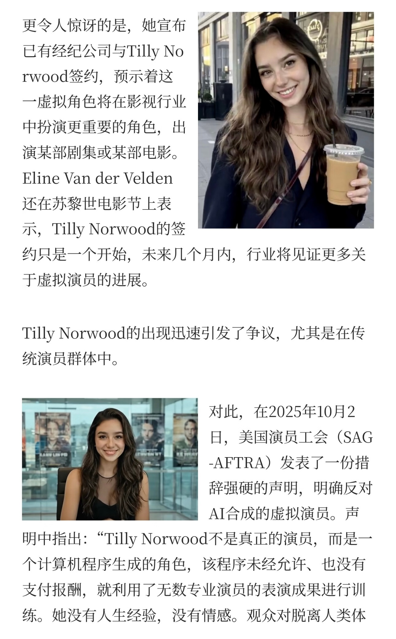 不仅国内,国外也开始ai演员了目前拥有4万多粉丝了,甚至要开始演剧了,但被好莱坞