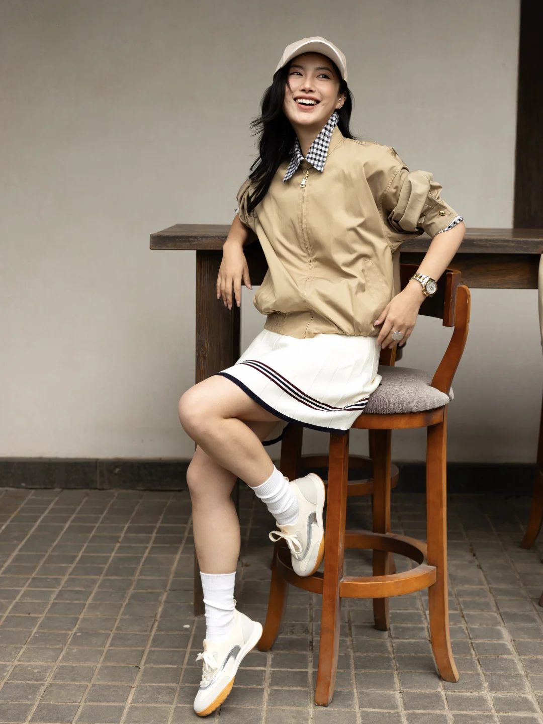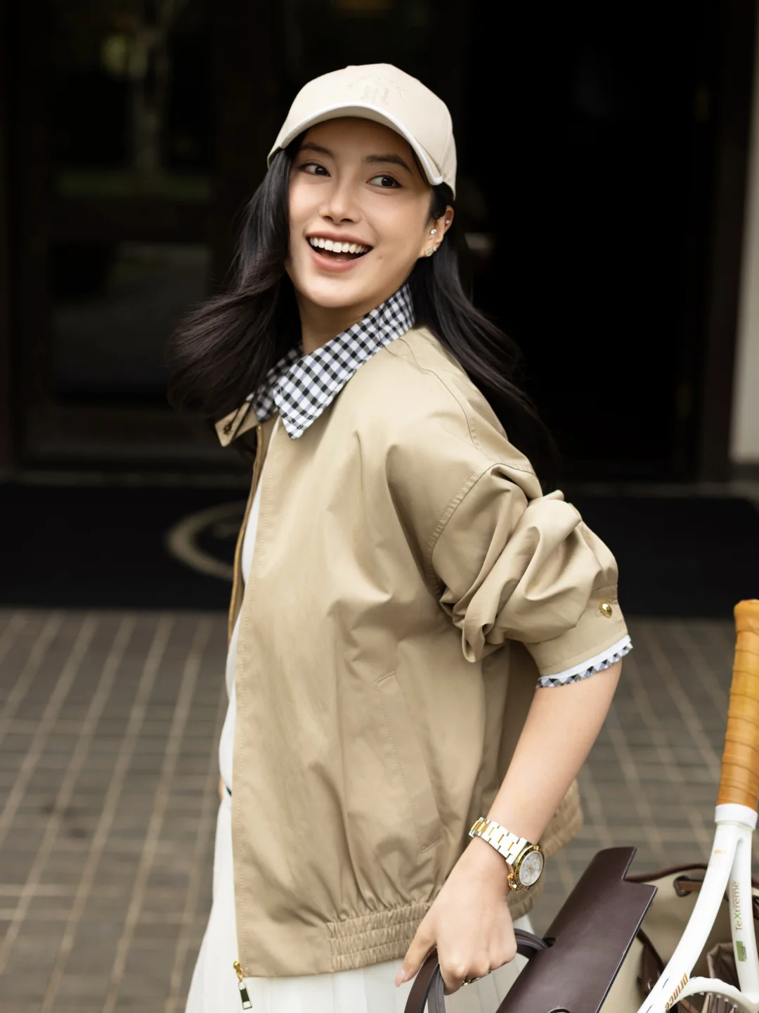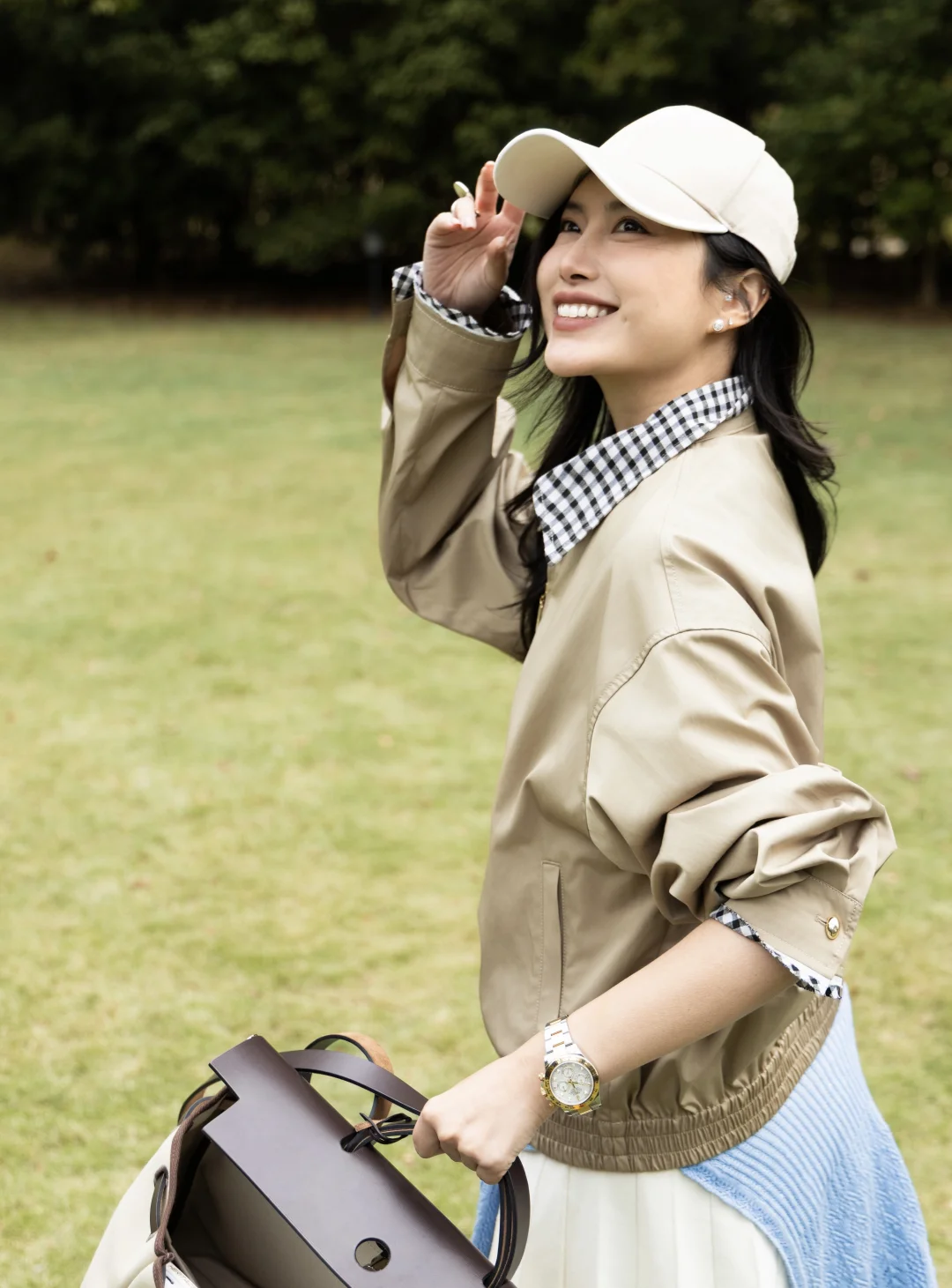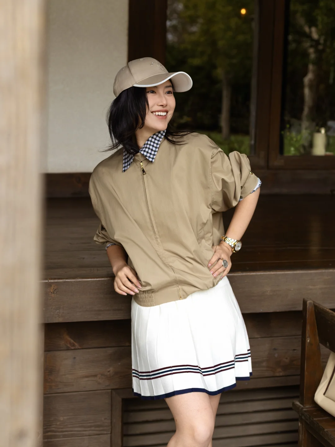 时髦又低调领口的棋盘格设计透着一丝俏皮,