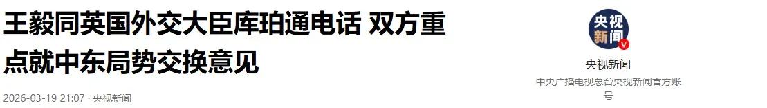 等不急了,英国主动找中国! 特朗普刚宣布推迟访华,英国人就坐不住了。这不,当地时间3月19日,一通越洋电话直接打到了北京。英国外交大臣库珀主动找上门来。英国这么急不可耐,到底在盘算什么大棋? 这通电话来得太巧,特朗普17日刚官宣访华推迟五到六周,英国19日就立刻接棒,动作快得不像老牌帝国的作风,倒像生怕被中美对话落下的小跟班 。外交圈都在议论,库珀这通电话哪是"应约",分明是英国政府连夜催促下的紧急行动,他们怕的是中美一旦达成新共识,英国在全球格局里的位置会更尴尬。 中东局势是英国最焦心的导火索。美以空袭伊朗本土后,霍尔木兹海峡航运大乱,英国商船接连遇袭,伦敦保险商协会已把波斯湾划为"高风险区域",保费飙涨十倍还保不到全额 。英国石油公司在伊拉克的油田遭无人机袭击,北海炼油厂因原油供应不足被迫减产,国内加油站排队的车队又排回了2022年能源危机时的景象。库珀找中国谈中东,表面是劝和促谈,实则想让中国在航运安全上多承担责任,帮英国商船打通生命线,这种既想避险又不想得罪美国的心态,藏都藏不住 。 经济账更是算得门儿清。英国通胀率刚降到3.4%,中东战火又把油价推过120美元/桶,汽油价格一周涨了17便士,超市货架上的食品价格跟着上扬,首相斯塔默的支持率跌到28%,比前任特拉斯还低 。英国汽车制造业本就艰难,捷豹路虎、阿斯顿·马丁的出口订单因航运成本上涨被客户取消,伯明翰的零部件工厂已经开始裁员。库珀心里清楚,只有中国能在稳定能源市场、畅通航运通道上发挥作用,这通电话里的每句客套,都藏着"求中国帮衬"的潜台词。 更让英国焦虑的是中美关系的不确定性。特朗普推迟访华,却没说清具体原因,是真为中东战事,还是想在经贸谈判上再加码?英国根本摸不透 。他们怕中美一旦在巴黎经贸磋商基础上达成新协议,英国在金融、科技领域的优势会被进一步挤压 。伦敦金融城的银行家们最近频繁拜访唐宁街,他们最担心的是人民币国际化加速,伦敦作为美元欧元之外第三极的地位会被动摇,毕竟中国已经是英国第二大贸易伙伴,去年双边贸易额突破1000亿英镑,这个市场丢不起。 英国还打着"平衡者"的小算盘。他们既想维持美英特殊关系,又怕被美国的单边主义拖下水。美国在中东越陷越深,却没给英国任何实质性支持,反而在贸易上对英国钢铁、汽车加征关税。库珀推动与中国沟通,是想悄悄拓展外交空间,避免在中美之间选边站,这种"脚踩两条船"的操作,在英国外交史上不是第一次,效果却一次比一次差。 能源安全的恐慌也在蔓延。英国北海油田产量逐年下滑,2025年进口原油占比达72%,其中30%来自中东 。战略石油储备只够撑90天,比国际能源署建议的120天还短。库珀在电话里提"能源多元化合作",是想让中国帮助英国对接中亚、俄罗斯的油气资源,又不敢明说,只能绕着圈子谈"清洁能源合作",这种既想占便宜又怕被骂"亲俄"的纠结,把英国的外交困境暴露得一览无余。 科技领域的焦虑更现实。英国芯片设计公司ARM被软银收购后,一直想拓展中国市场,却被美国的出口管制捆住手脚。剑桥大学的半导体实验室刚研发出2纳米制程技术,找不到足够的资金量产,只能眼睁睁看着台积电、三星抢占先机。库珀希望通过对话,让中国放宽市场准入,同时又不想违背美国主导的"芯片四方联盟"规则,这种左右为难的处境,让英国的科技雄心成了笑话。 英国的紧迫感里,还藏着对自身国际地位下滑的恐惧。曾经的"日不落帝国",如今连安理会决议都要跟着美国投赞成票,在气候变化、人工智能等全球议题上的话语权越来越弱。他们看到中国在中东劝和促谈、在非洲建自贸区、在拉美推进基础设施合作,心里不是滋味。库珀主动致电,也是想提醒国际社会,英国还是那个能在大国间周旋的重要玩家,可惜这种自我定位,早已跟不上世界格局的变化。 中国的态度很明确,在电话里重申了劝和促谈立场,也指出英国要想解决问题,得先停止向中东派遣军舰、停止对以色列的武器供应,不能一边拱火一边喊停火 。这种不卑不亢的回应,让英国意识到,想让中国当"救火队员"又不给相应回报,根本行不通。 国际政治就是这么现实,没有永远的朋友,只有永远的利益。英国急着找中国,不是突然重视中英关系,而是自身困境逼出来的无奈选择。他们想在中美之间找平衡,想在中东乱局中保利益,想在经济困境中寻出路,这些诉求都能理解,但想靠一通电话就达到目的,未免太天真。 世界需要的是真诚合作,不是功利算计;需要的是平等对话,不是单方面索取。英国若真想在全球舞台上找回存在感,与其急着找中国"抱大腿",不如先理清自己的战略定位,停止追随美国的单边主义,用实际行动赢得国际社会的尊重。 各位读者你们怎么看?欢迎在评论区讨论。