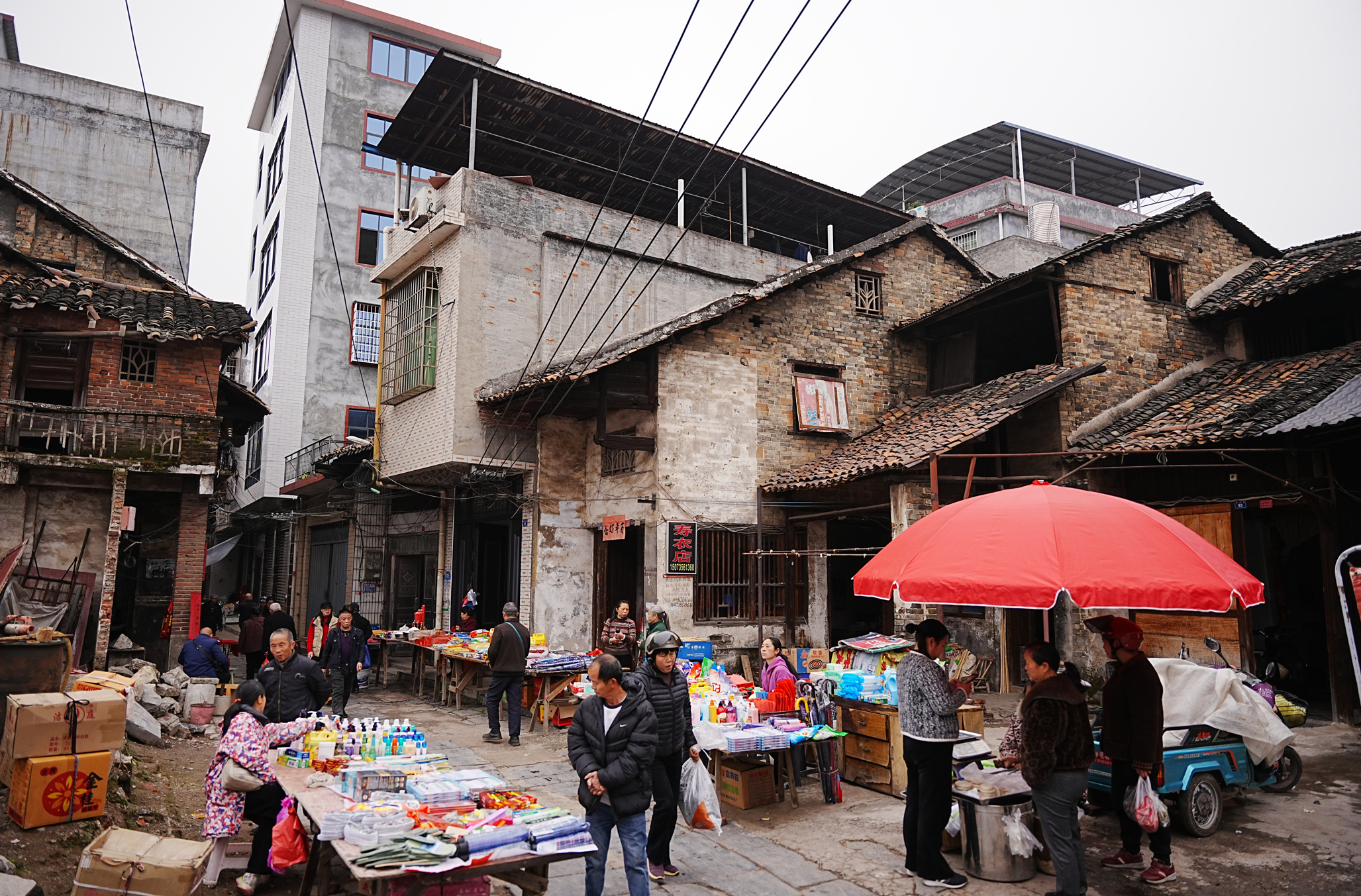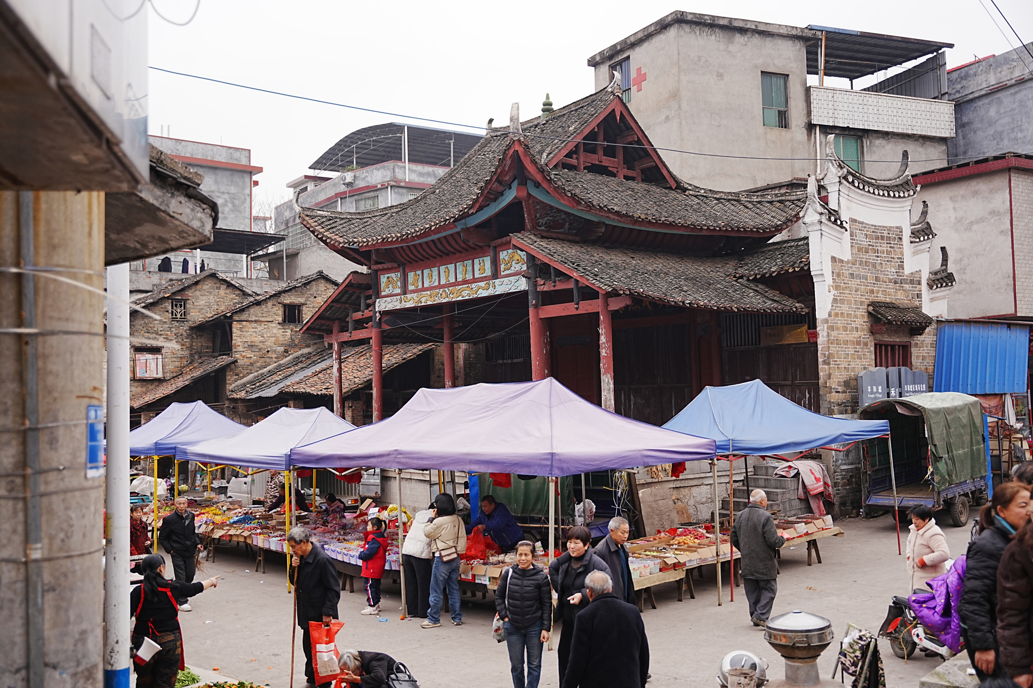 嘉禾县最热闹的古代市场--丰和墟,就在县城内,虽然墟亭已经改建,但市场热闹不减,且市场的其他建筑-戏台-周围商铺也保留了下来,嘉禾墟场多有戏台,这里的戏台不是用来酬神的,而是专门给市民阶层看戏服务的,嘉禾墟场建筑多用石柱,石柱多有题记,而题记显示出墟场捐资人多为周围村庄村民,超大型的墟场则由官宦到村民各阶层共同捐资建成,墟场建筑营造活跃,捐资人阶层、来源众多,显示出清代嘉禾县贸易的活跃以及小商人群体在当地具有一定地位,以及通过贸易生出余财,才能够支撑接连不断的墟场建筑营建。嘉禾墟场建筑,放在历史背景中,非常适合做建筑和人类学研究,作为活态的遗产,也适合做考现学研究。