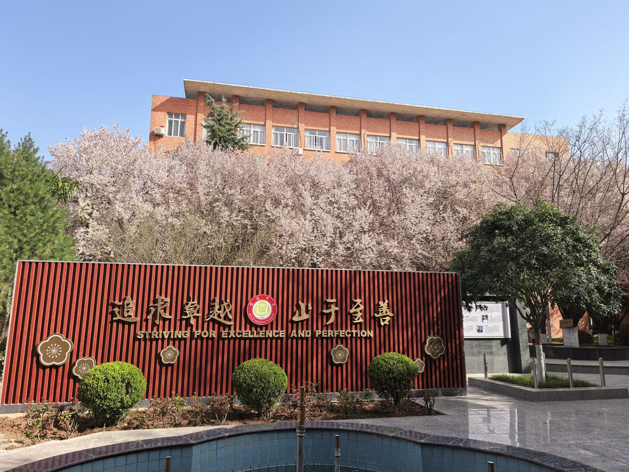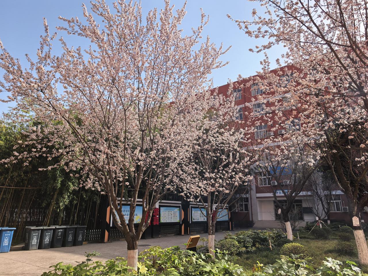 今天是3月20日,农历二月初二,龙抬头,恰逢春分。春日正当时,也是宝鸡中学校园赏梅的最佳时节。 宝鸡中学是陕西高中教育中的一颗明珠,虽然与西工大附中、陕师大附中等学校有一定的差距,但除陕西省会西安市以外,在陕西名气也是响当当的。 风和日丽。走进宝鸡中学,一派生机盎然的景象,校园美化绿化非常有学校特色,不管是人行道还是游园小径都非常干净,宫粉梅、朱砂梅、绿萼梅、玉蝶梅等竞相肆意开放。 漫步在宝鸡中学,赏花当然是一个最好的由头,但更深刻的还是感受到这里静谧的学习氛围。不管是走到学校哪个角落,都弥漫着浓浓的知识气息。中外著名科学家和历史名人警语的雕塑,鼓励学子成为国家栋梁、民族脊梁的大幅名牌随处都映入眼帘,既是学生出校大门,都能看到郭沫若题写的“宝鸡中学”石碑后面的几个字:为中华民族崛起而读书。似乎踏进这块土地,不想读书都不由得自己。 距宝鸡中学离得很近,似乎天天都能看到校门校园,但好像离得又很远,从来没有像今天这样悠闲而安静的细品过宝鸡这个名校的气息。前几年虽然进过学校一两次,都是因工作关系在学生放假期间,匆匆进去完成工作任务后又匆匆而出,根本不知道学校“长”什么样子,更别说细品学校的“味道”。 春风,标志着春天正当时,正处于“壮年”时期。宝鸡中学何尝不是,她正迈着坚实的步伐,一年一年培养着渴望知识的莘莘学子,将最优秀的“宝鸡娃”输送到中国最好的高等学府,正如宝鸡中学最响亮的一句口号:培育走向世界的现代中国人。 宝鸡身边事 宝鸡春天打卡地